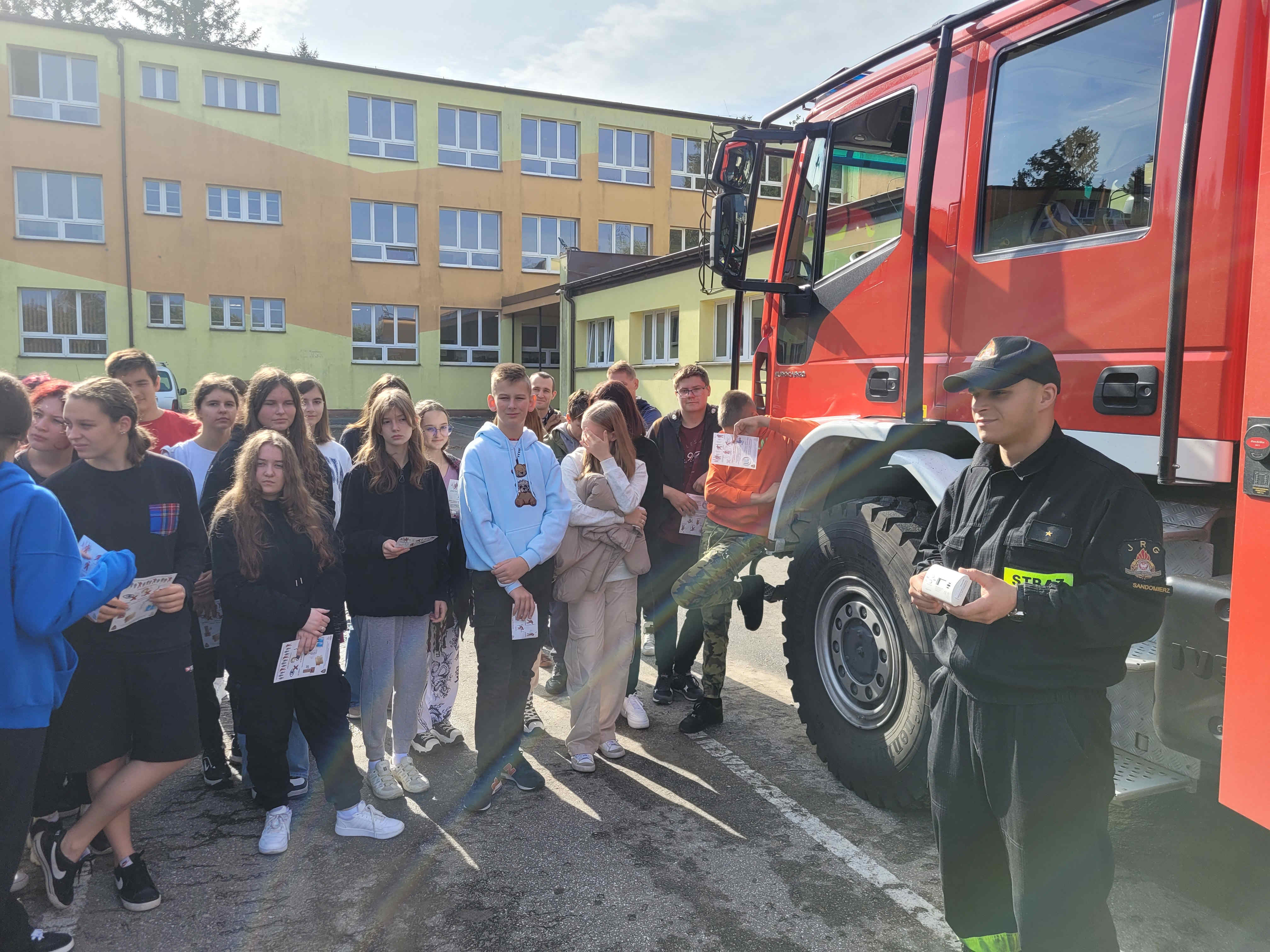 11 października 2023 roku w Zespole Szkół Centrum Kształcenia Rolniczego w Sandomierzu, strażacy z Jednostki Ratowniczo – Gaśniczej Państwowej Straży Pożarnej w Sandomierzu, wspólnie z personelem i pracownikami szkoły przeprowadzili próbną ewakuacje uczniów i kadry nauczycielskiej.