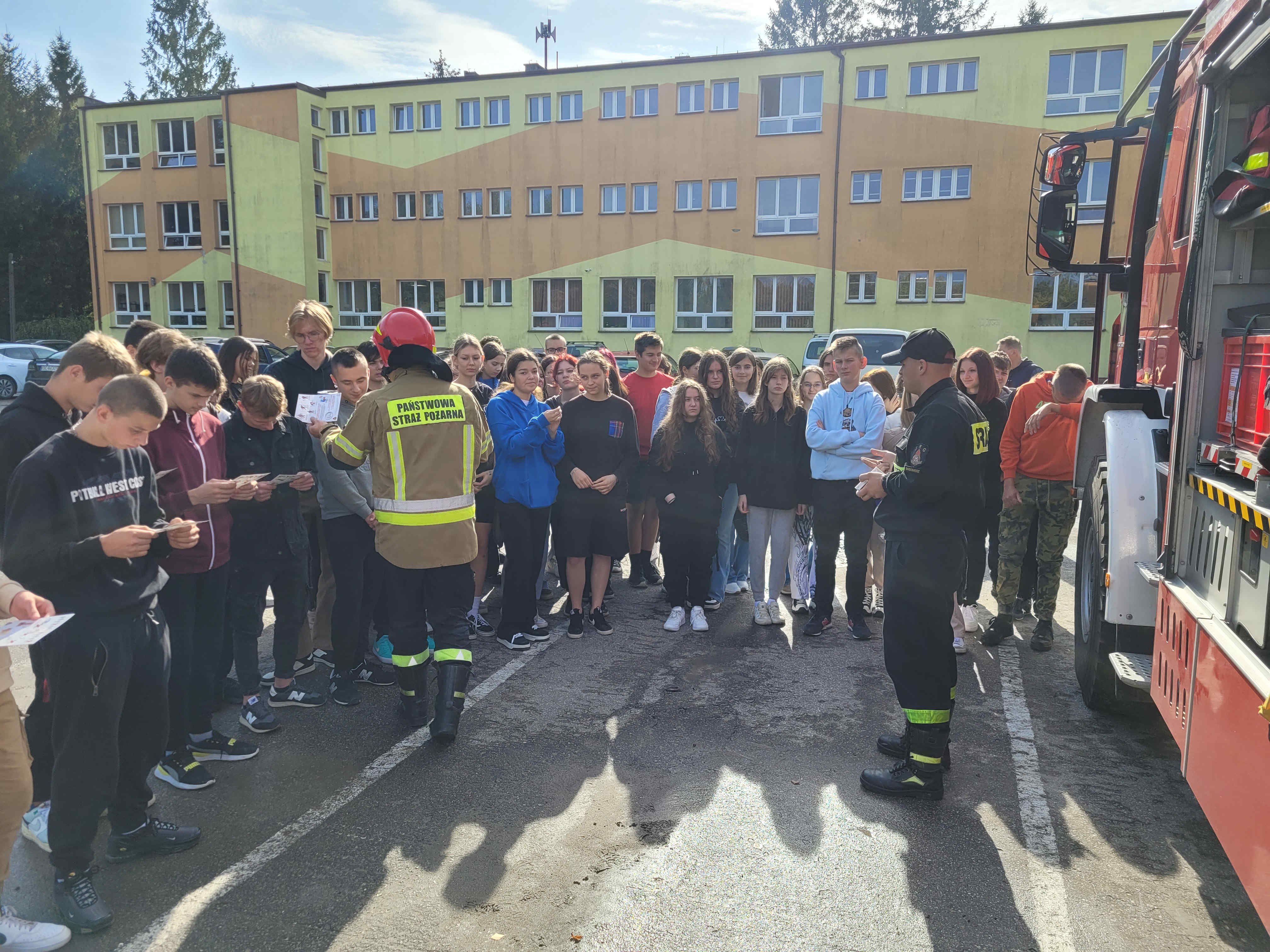 Próbna ewakuacja była doskonałą okazją do przekazania uczniom i pracownikom niezbędnych informacji na temat Ogólnopolskiej Kampanii „CZUJKA NA STRAŻY TWOJEGO BEZPIECZEŃSTWA”. Kampania ta jest skierowana do społeczeństwa, m.in. do dzieci, młodzieży, osób dorosłych, seniorów. Składa się z kilku obszarów edukacji a mianowicie informacji i promocji podczas, której strażacy rozdali ulotki informacyjne. Zostały omówione zagrożenia powodowane przez tlenek węgla zwany potoczne „czadem” w mieszkaniach, domach jednorodzinnych oraz przedstawili informację na temat zapewnienia właściwej ewakuacji oraz sposobów powiadamiania służb ratowniczych. Kolejnym punktem spotkania był pokaz sprzętu ratowniczo - gaśniczego, którym dysponują strażacy.