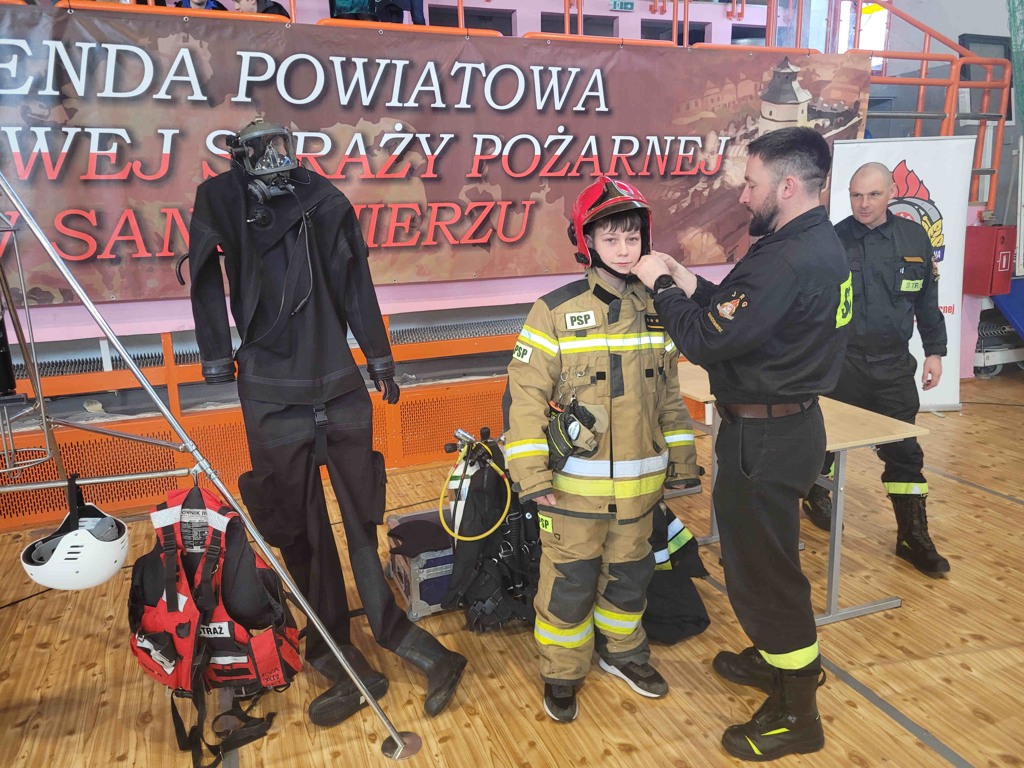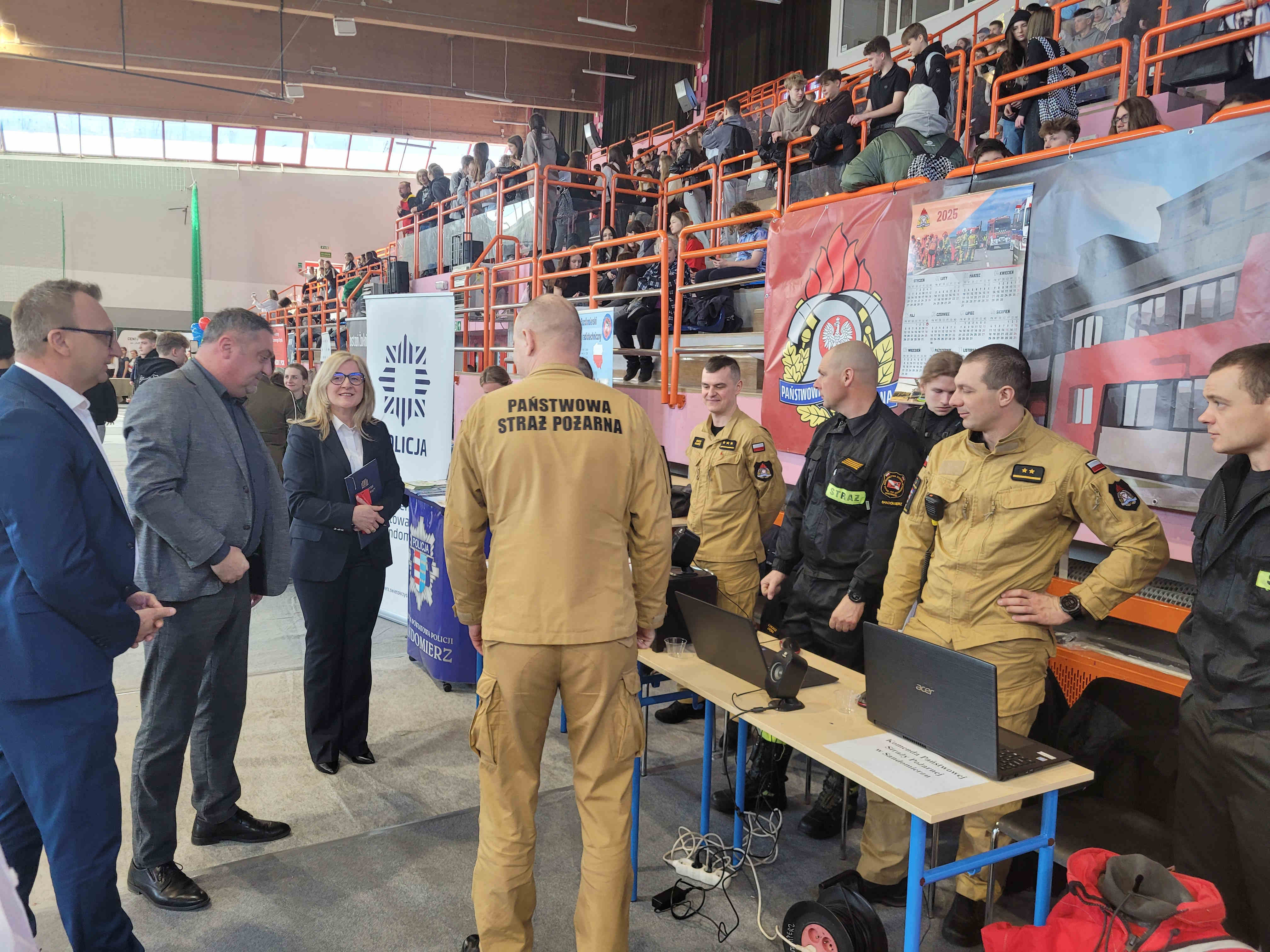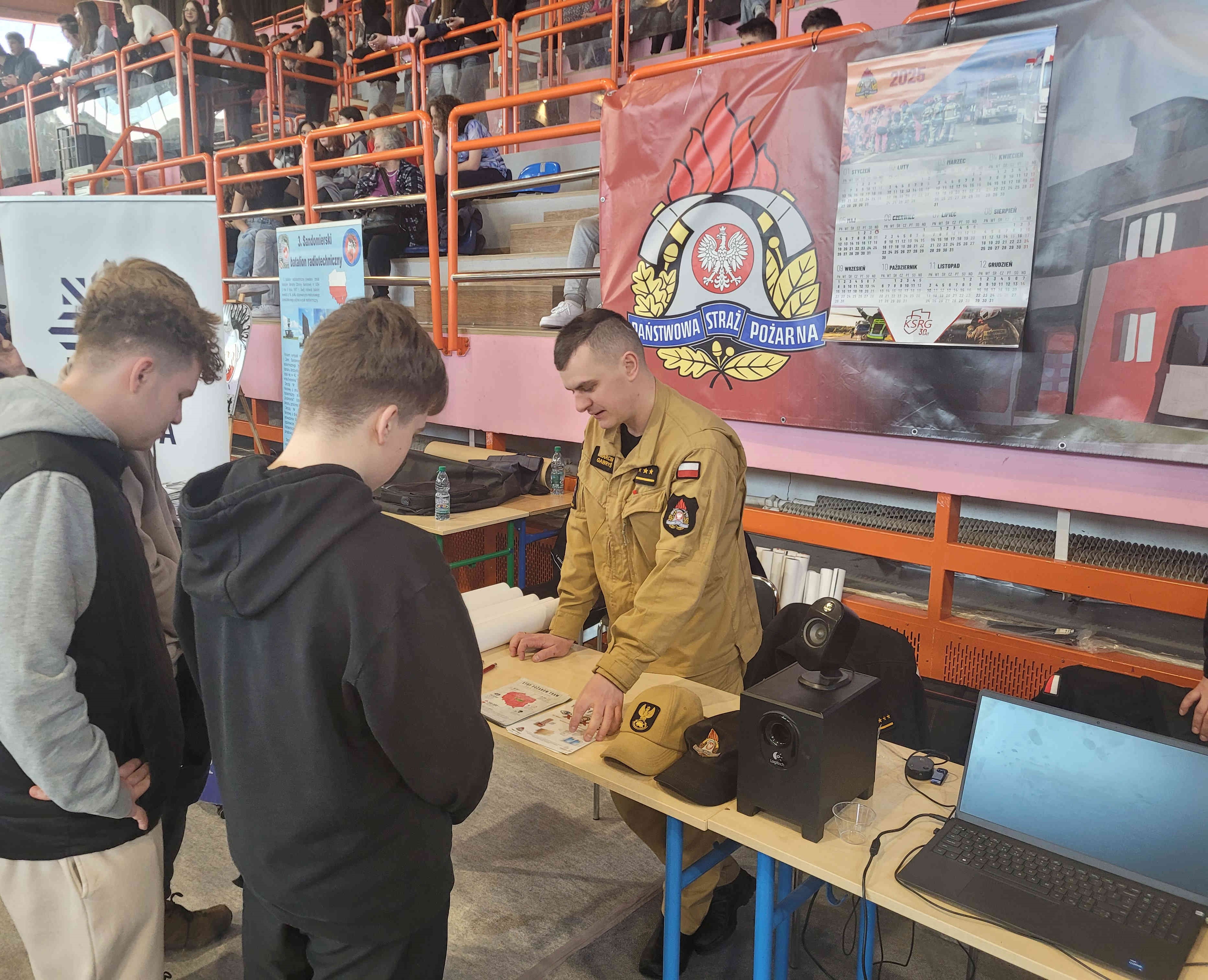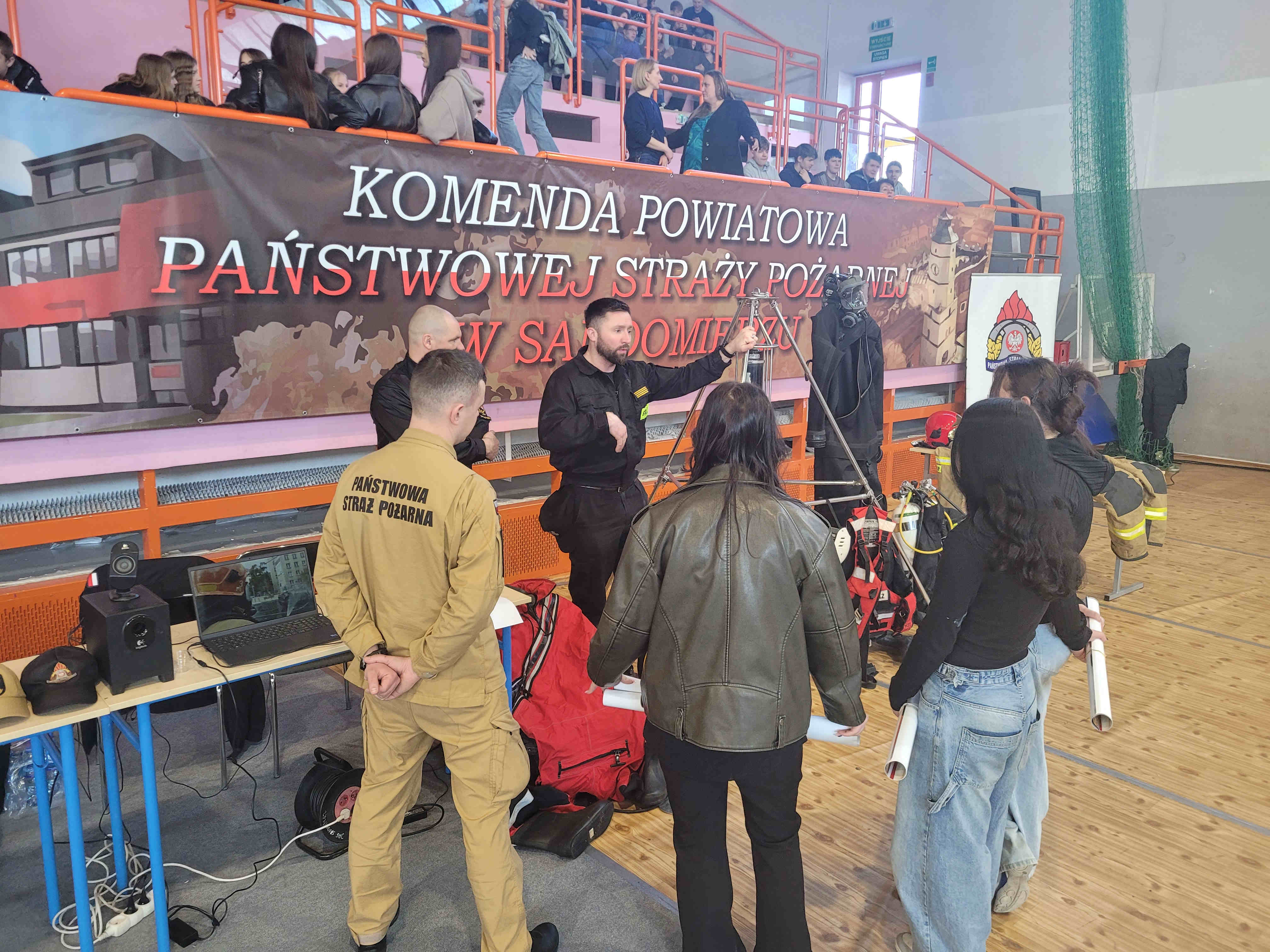 21 marca 2025 roku na Hali Widowiskowo – Sportowej MOSiR Sandomierz odbyła się Giełda Szkół Ponadpodstawowych promująca szkoły średnie działające na terenie powiatu sandomierskiego, której organizatorem był Świętokrzyski Kurator Oświaty. Strażacy z Komendy Powiatowej PSP w Sandomierzu wystawili swoje stoisko, które promowało zawód strażaka. Na stoisku promocyjnym młodzież mogła dowiedzieć się o zawodzie i pracy strażaka w Jednostce Ratowniczo – Gaśnicze oraz jakie wymagania trzeba spełnić przy naborze do służby. Zaprezentowany został sprzęt i wyposażenie, którym dysponują strażacy podczas działań ratowniczo – gaśniczych. Omówiono sprzęt wchodzący w skład Specjalistycznych Grup Ratowniczych działających przy sandomierskiej komendzie tj. sonar do poszukiwań obiektów pod wodą oraz ubranie i wyposażenie strażaka – nurka. Jak zawsze największe zainteresowanie wzbudził samochód strażacki, który można było zobaczyć z bliska. Osoby odwiedzające stoisko Państwowej Straży Pożarnej mogli dowiedzieć się w jakich okolicznościach można wzywać straż pożarną, wysłuchali prelekcji na temat niebezpieczeństw i zagrożeń pożarowych oraz kampanii społecznych Stop Pożarom Traw, Czujka na Straży Twojego Bezpieczeństwa.