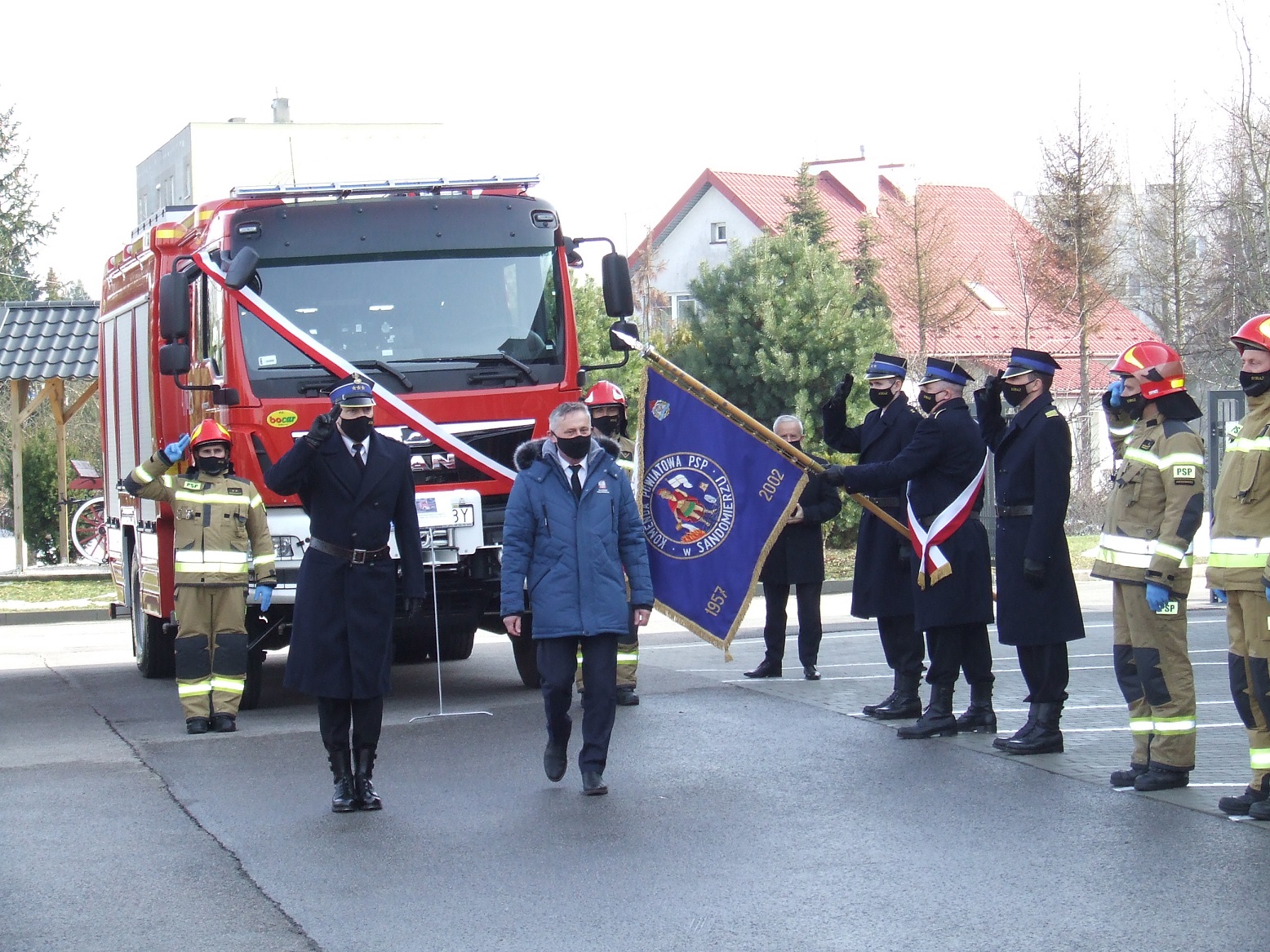 26 lutego 2021 roku w Komendzie Powiatowej Państwowej Straży Pożarnej w Sandomierzu miała miejsce uroczystość przekazania ciężkich samochodów ratowniczo-gaśniczych dla Jednostki Ratowniczo-Gaśniczej w Sandomierzu i Ochotniczej Straży Pożarnej Mściów Nowy Kamień oraz oddanie zmodernizowanych sal konferencyjno-szkoleniowych. Uroczystość uświetniło przybycie wojewody świętokrzyskiego Zbigniewa Koniusza, marszałka województwa świętokrzyskiego Andrzeja Bętkowskiego, członka Zarządu Województwa Świętokrzyskiego Marka Jońcy, posłów na Sejm RP Krzysztofa Lipca i Marka Kwitka, senatora RP Jarosława Rusieckiego, zastępcy świętokrzyskiego komendanta wojewódzkiego PSP bryg. Grzegorza Rajcy, starosty sandomierskiego Marcina Piwnika, wójta gminy Dwikozy Marka Łukaszka, prezesa powiatowego ZOSP RP Bolesława Gradzińskiego, kapelana diecezjalnego strażaków ks. prał. Lecha Siekierskiego, proboszcza parafii pw. Podwyższenia Krzyża w Sandomierzu ks. Kan. Stanisława Chmielewskiego oraz radnego Rady Miasta Sandomierza Krzysztofa Szatana, druha Waldemara Maruszczaka.