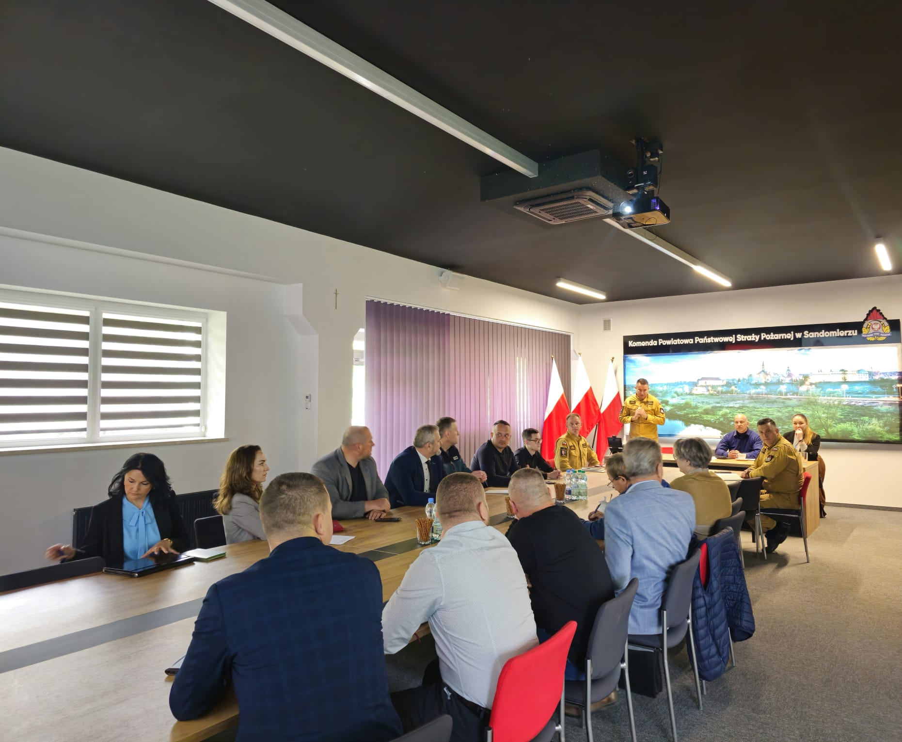 09 maja 2025 roku w Komendzie Powiatowej Państwowej Straży Pożarnej w Sandomierzu odbyło się spotkanie zorganizowane wspólnie z Powiatowym Inspektorem Nadzoru Budowlanego w Sandomierzu dotyczące sprawdzania obiektów zbiorowej ochrony na obszarze powiatu sandomierskiego, o których mowa w Ustawie z dnia 5 grudnia 2024 r. o Ochronie Ludności i Obronie Cywilnej (Dz.U. z 2024 r. poz. 1907).