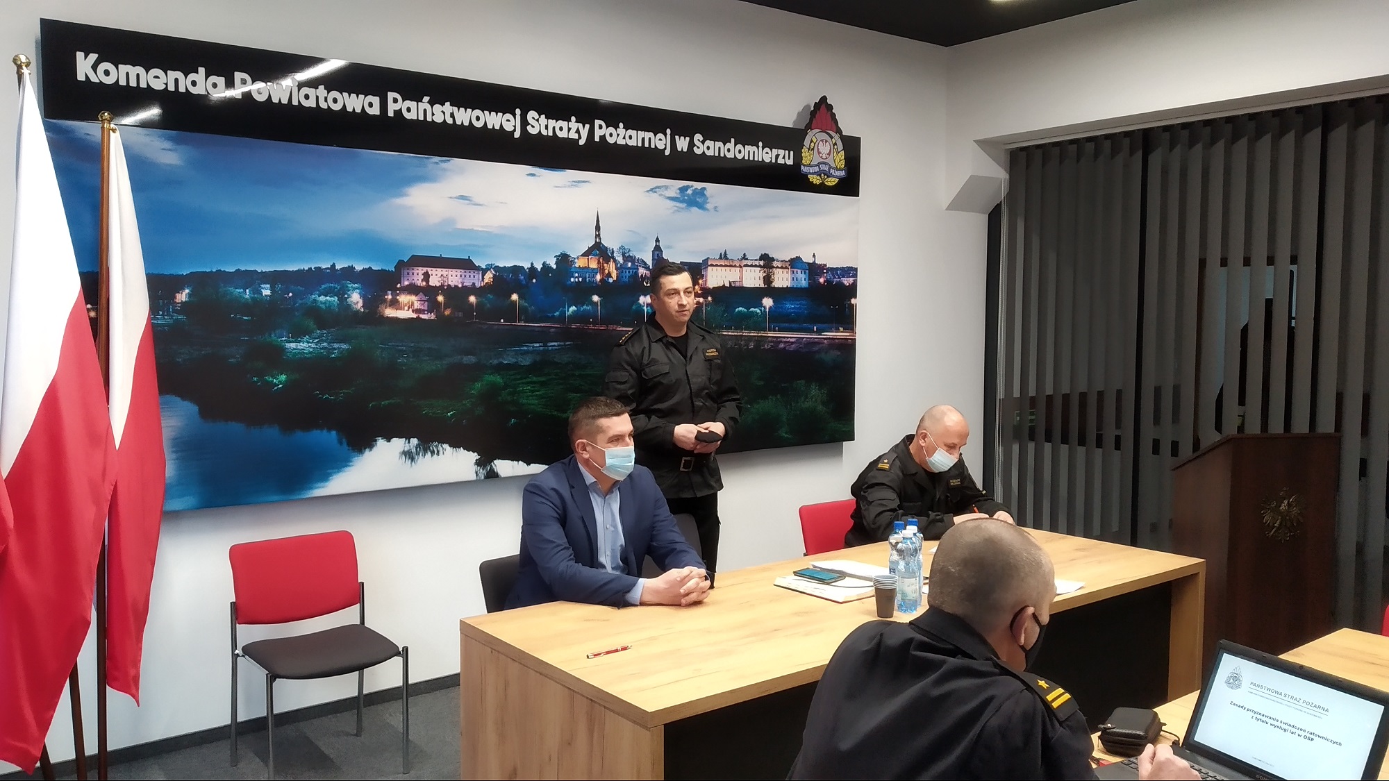 22 lutego 2022 roku w Komendzie Powiatowej Państwowej Straży Pożarnej w Sandomierzu odbyło się spotkanie, na którym omówiono sprawy związane z wdrażaniem ustawy o Ochotniczych Strażach Pożarnych a w szczególności w zakresie świadczenia ratowniczego dla ratowników OSP.