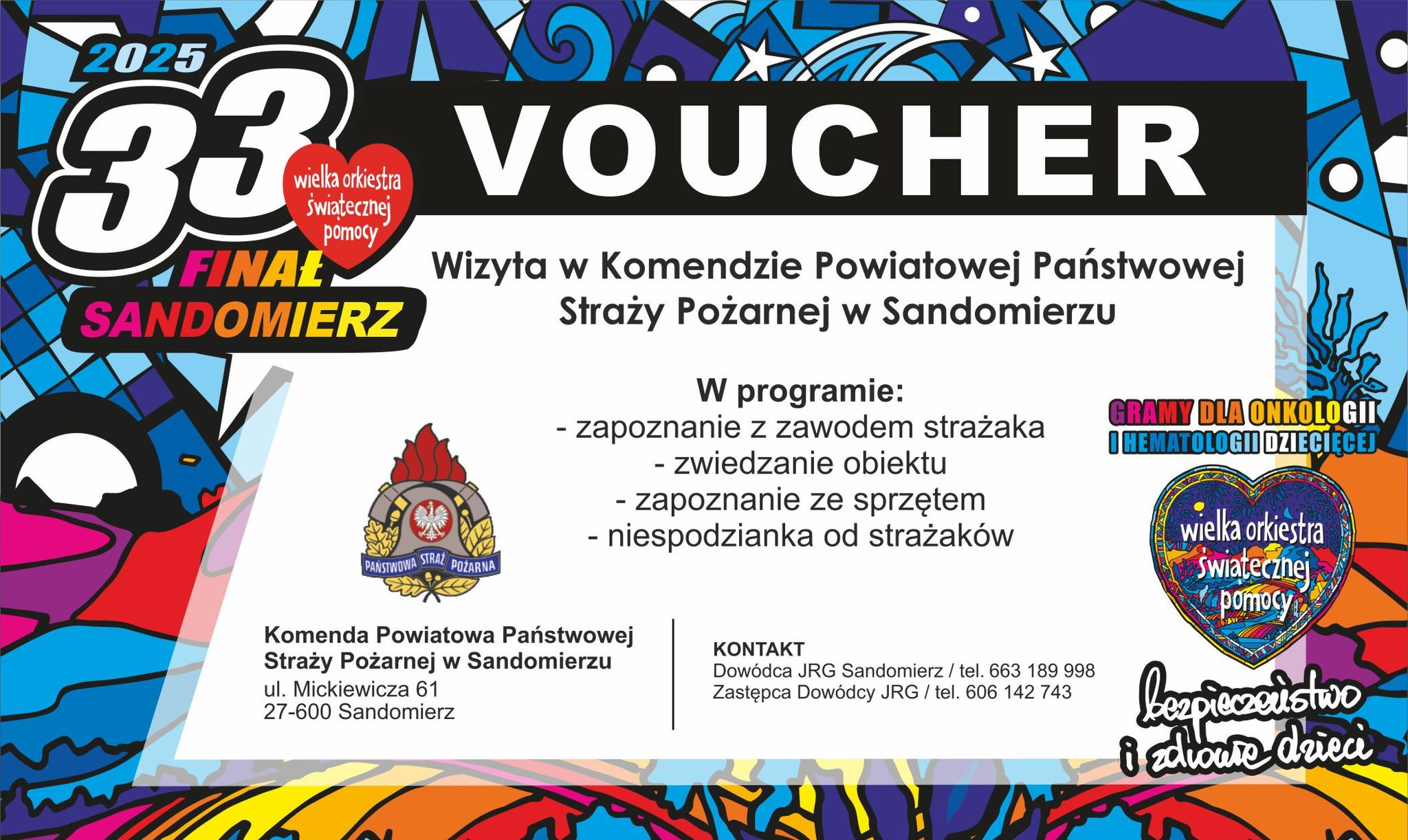 26 stycznia 2025 r. podczas 33 Finału Wielkiej Orkiestry Świątecznej Pomocy, który odbył się na Hali Widowiskowo – Sportowej przy ulicy Patkowskiego strażacy z KP PSP Sandomierz zaprezentowali sprzęt i drabinę mechaniczną SD31, z której na zakończenie finałowego grania było rozświetlone strażackie światełko do nieba. Jednocześnie strażacy wystawili na licytację voucher z zaproszeniem do odwiedzin i spędzenia czasu ze strażakami w Komendzie Powiatowej PSP w Sandomierzu.