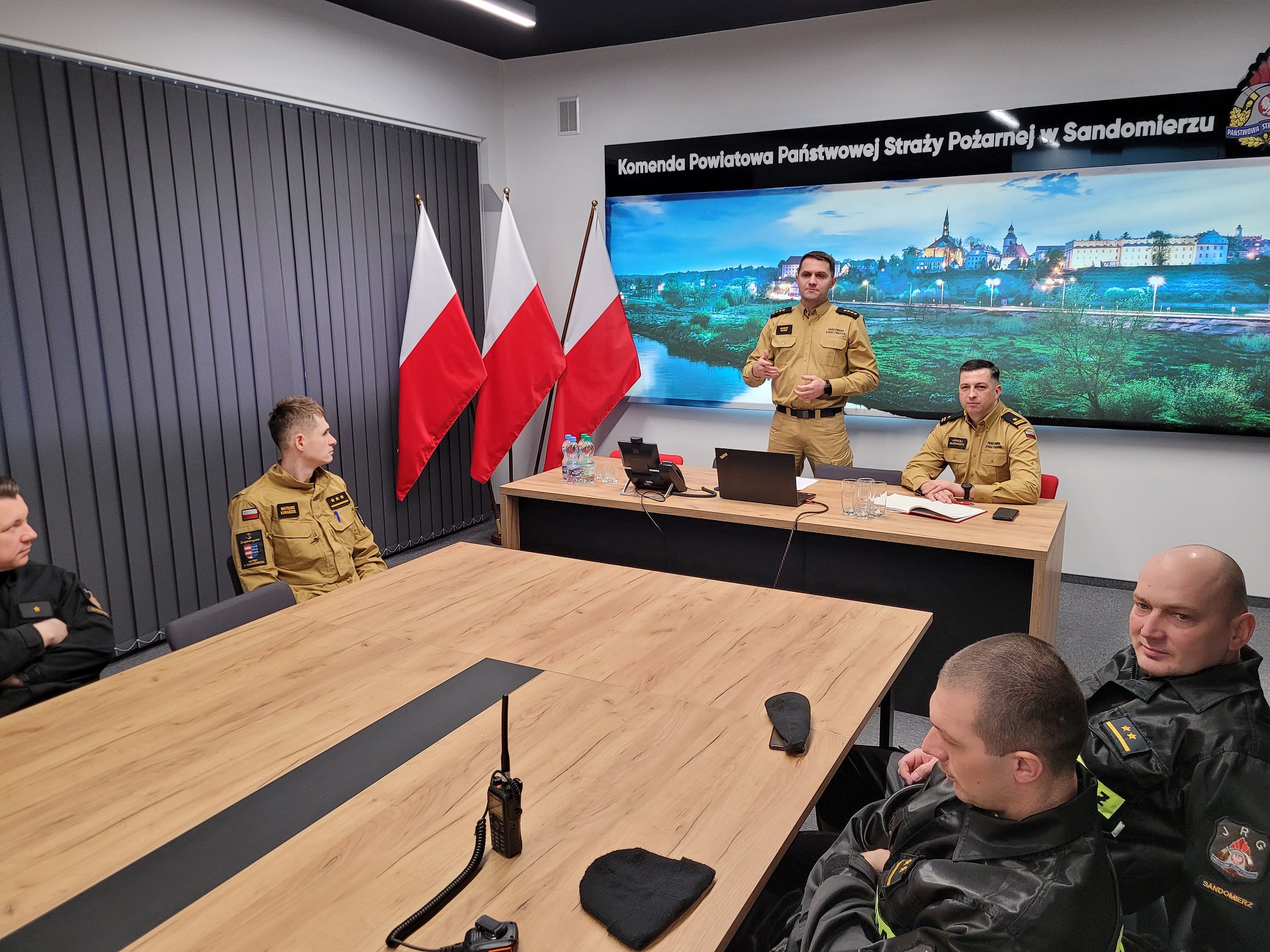 26 stycznia 2024 roku w Komendzie Powiatowej Państwowej Straży Pożarnej w Sandomierzu odbyło się szkolenie z zakresu współpracy z mediami kierujących działaniami ratowniczymi. Spotkanie otworzył zastępca komendanta powiatowego PSP w Sandomierzu mł. bryg Andrzej Włodarczyk.