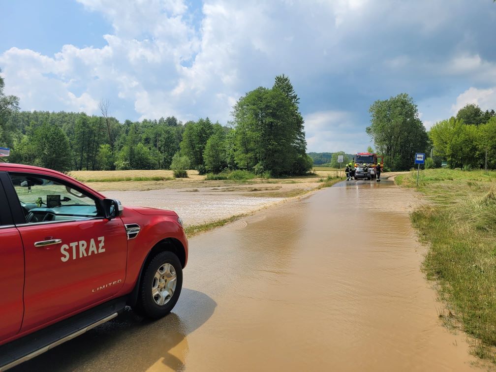 W dniu 22.06.2023 w związku z intensywnymi opadami deszczu i silnym wiatrem do Stanowiska Kierowania Komendanta Powiatowego Państwowej Straży Pożarnej w Sandomierzu wpłynęło cztery zgłoszenia. Działania ratowników polegały na zabezpieczaniu miejsc zdarzeń, udrożnieniu przepustów oraz wypompowaniu wody z zalanych obiektów. Strażacy usuwali również powalone konary i drzewa.
