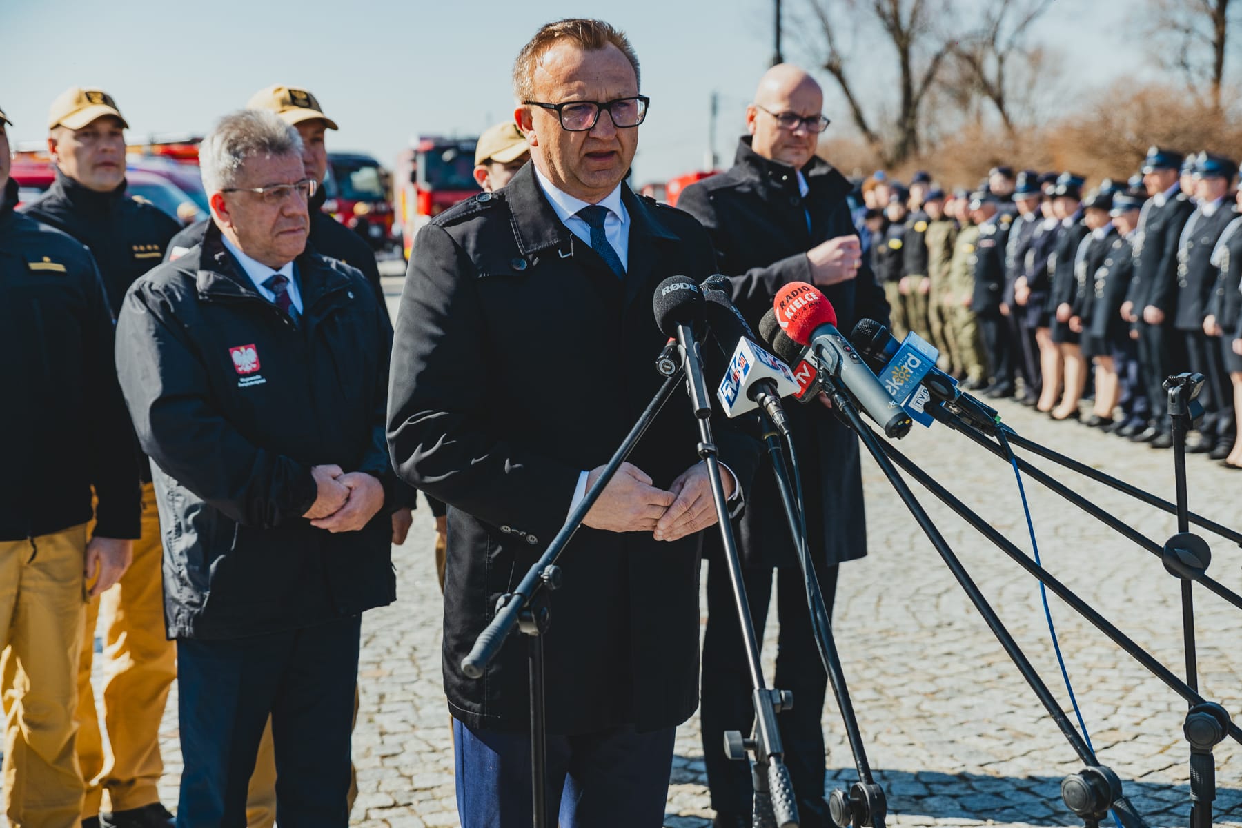 Podczas swojego przemówienia Wojewoda Świętokrzyski podkreślił, jak istotne jest nieustanne dbanie o bezpieczeństwo. Zaznaczył, że przekazane wyposażenie bezpośrednio wpłynie na efektywność działań służb i ochronę ludności. Zgadzając się z przedmówcą Komendant Wojewódzki PSP, st. bryg. Marcin Charuba, wskazał, że zakupiony sprzęt stanowi kluczowy krok w stronę wzmocnienia poziomu bezpieczeństwa mieszkańców całego województwa świętokrzyskiego.