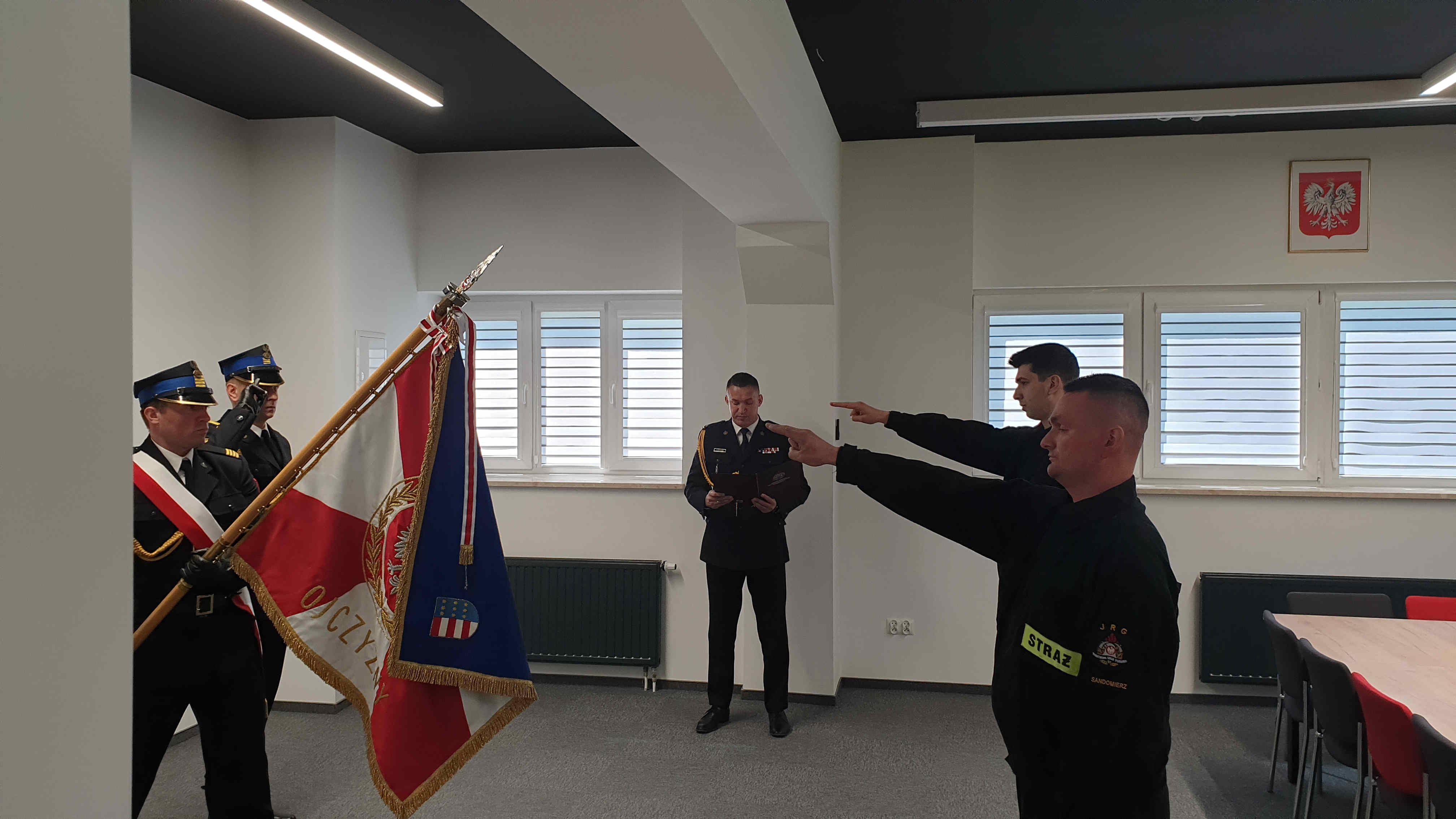 10 maja 2023 roku, w Komendzie Powiatowej Państwowej Straży Pożarnej w Sandomierzu, odbyło się uroczyste ślubowanie dwóch strażaków rozpoczynających służbę w Jednostce Ratowniczo-Gaśniczej PSP w Sandomierzu. Uroczystość rozpoczęła się od złożenia meldunku komendantowi powiatowemu mł. bryg. Piotrowi Krytusie przez dowódcę jednostki st. kpt. Łukasza Ziębę. Po okolicznościowym przemówieniu, strażacy Grzegorz Czuja i Patryk Trześniewski, złożyli ślubowanie w obecności sztandaru komendy wypowiadając słowa roty.