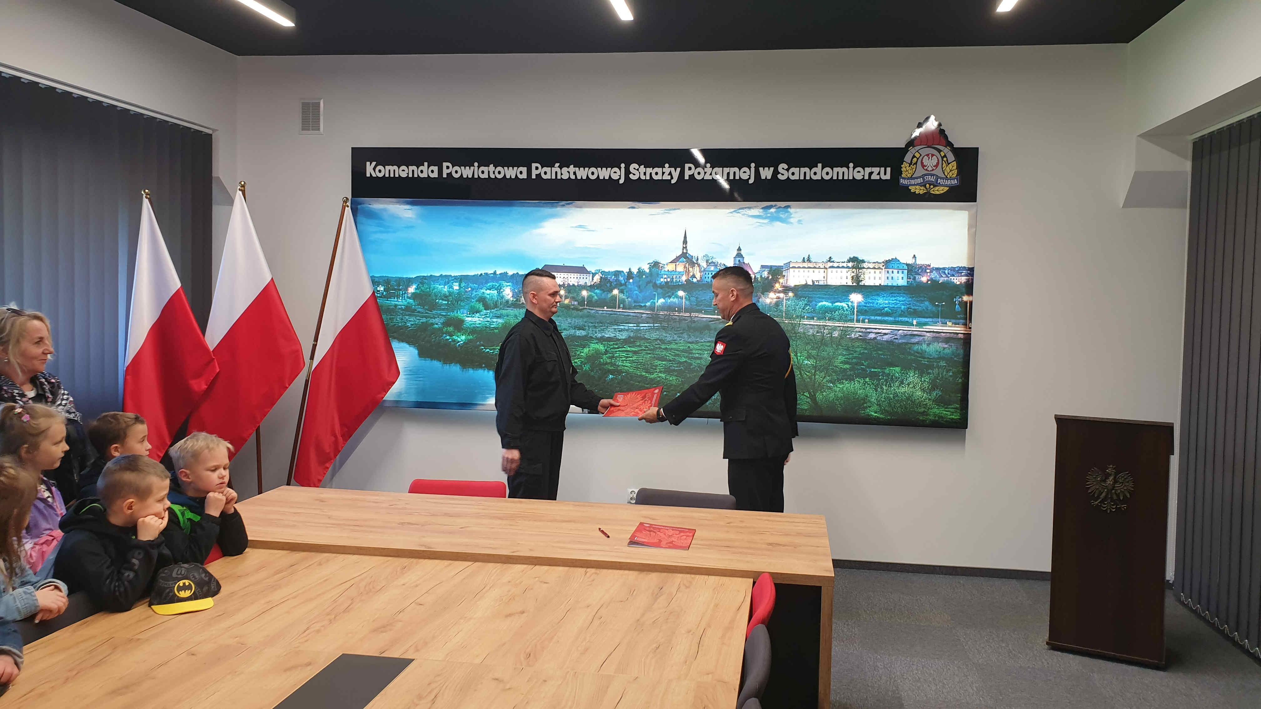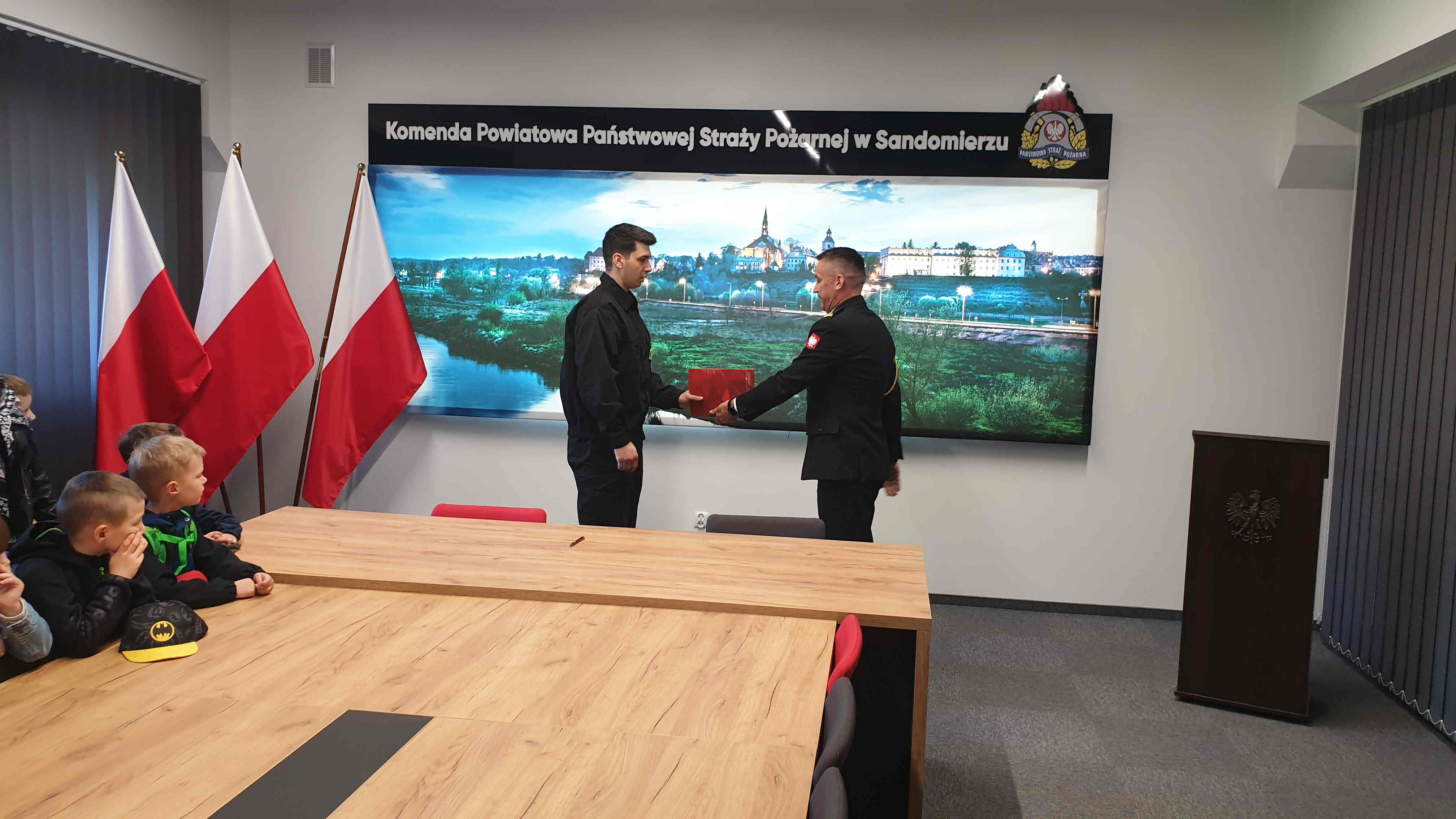 Specjalnymi gośćmi podczas uroczystości ślubowania były dzieci z Przedszkola Samorządowego nr 6 w Sandomierzu, które w tym czasie przebywały z wizytą w komendzie. Dzieci oprócz uroczystości ślubowania zapoznały się z zawodem strażaka i mogły z bliska oglądać wyposażenie, jakim dysponują podczas swojej pracy strażacy. Przez chwilę wszyscy uczestnicy wycieczki mogli poczuć się jak strażacy, przymierzając hełm strażacki i umundurowanie.