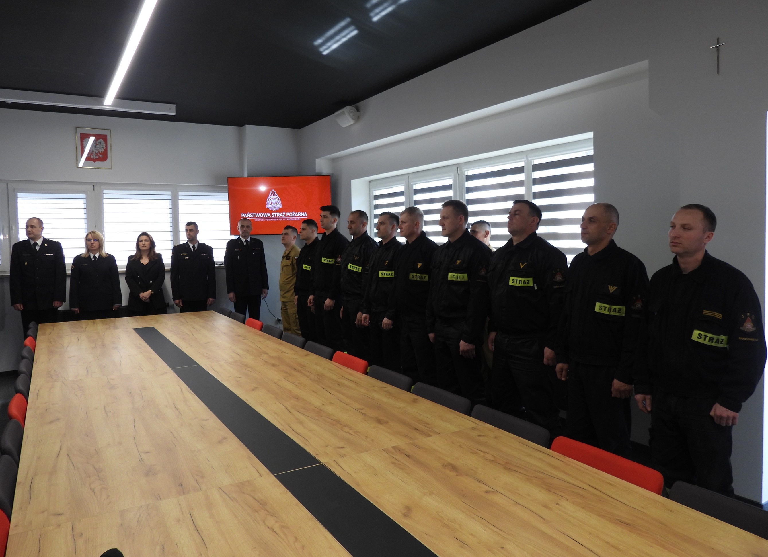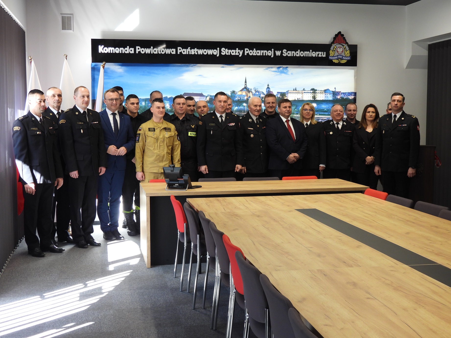 W uroczości udział wzięli: Wicewojewoda Świętokrzyski Michał Skotnicki, Starosta Sandomierski Marcin Piwnik, V-ce Prezes Zarządu Wojewódzkiego ZOSP RP dh. Bolesław Gradziński jednocześnie Członek Zarządu Głównego ZOSP RP, Prezes Zarządu Powiatowego Związku Ochotniczych Straży Pożarnych RP dh. Szymon Kołacz, Komendant Powiatowy PSP w Sandomierzu bryg. Piotr Krytusa wraz z zastępcą, funkcjonariusze oraz pracownicy Komendy Powiatowej PSP w Sandomierzu, media.