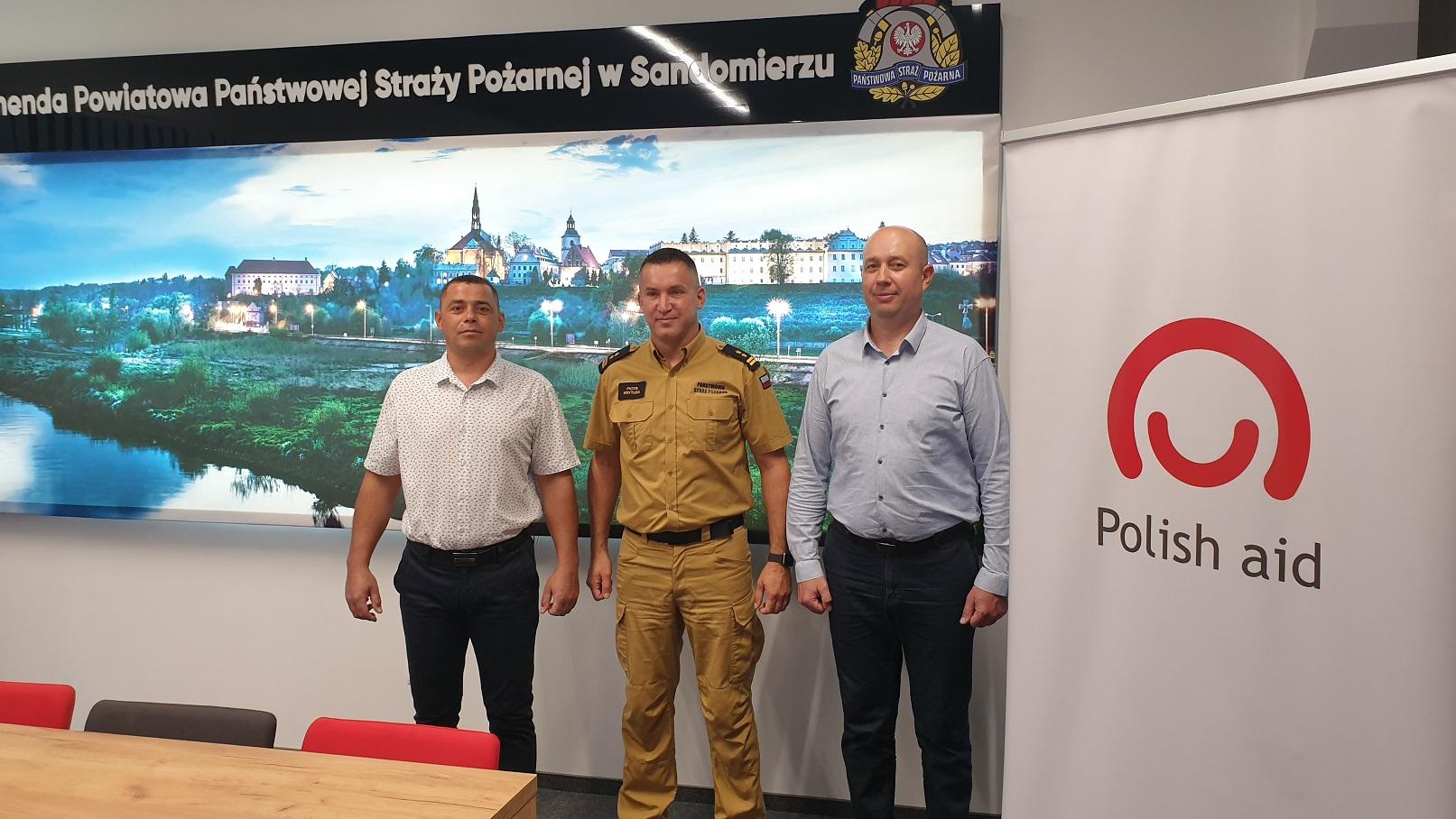 Sześcioosobowa delegacji służb ratunkowych i samorządu gościła na terenie powiatu sandomierskiego w ramach projektu pn. „Wisła-Nistru-Prut Samorządy wspierają międzysektorowe partnerstwa na rzecz bezpieczeństwa oraz służby ratunkowe działające w sąsiedztwie dużych rzek” w ramach programu „Polska pomoc rozwojowa 2023”.