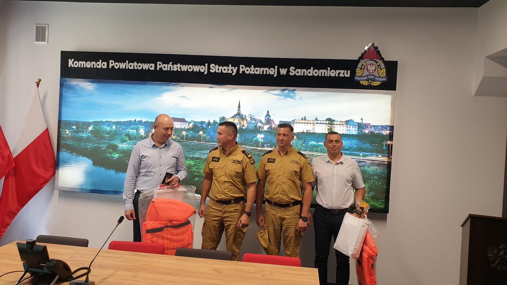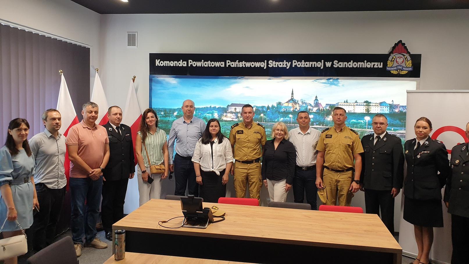 4 lipca 2024 r. Komenda Powiatowa Państwowej Straży Pożarnej w Sandomierzu gościła przedstawicieli władz samorządowych i służb ratunkowych regionu Stefan Voda i Glodenii z Mołdawii.
