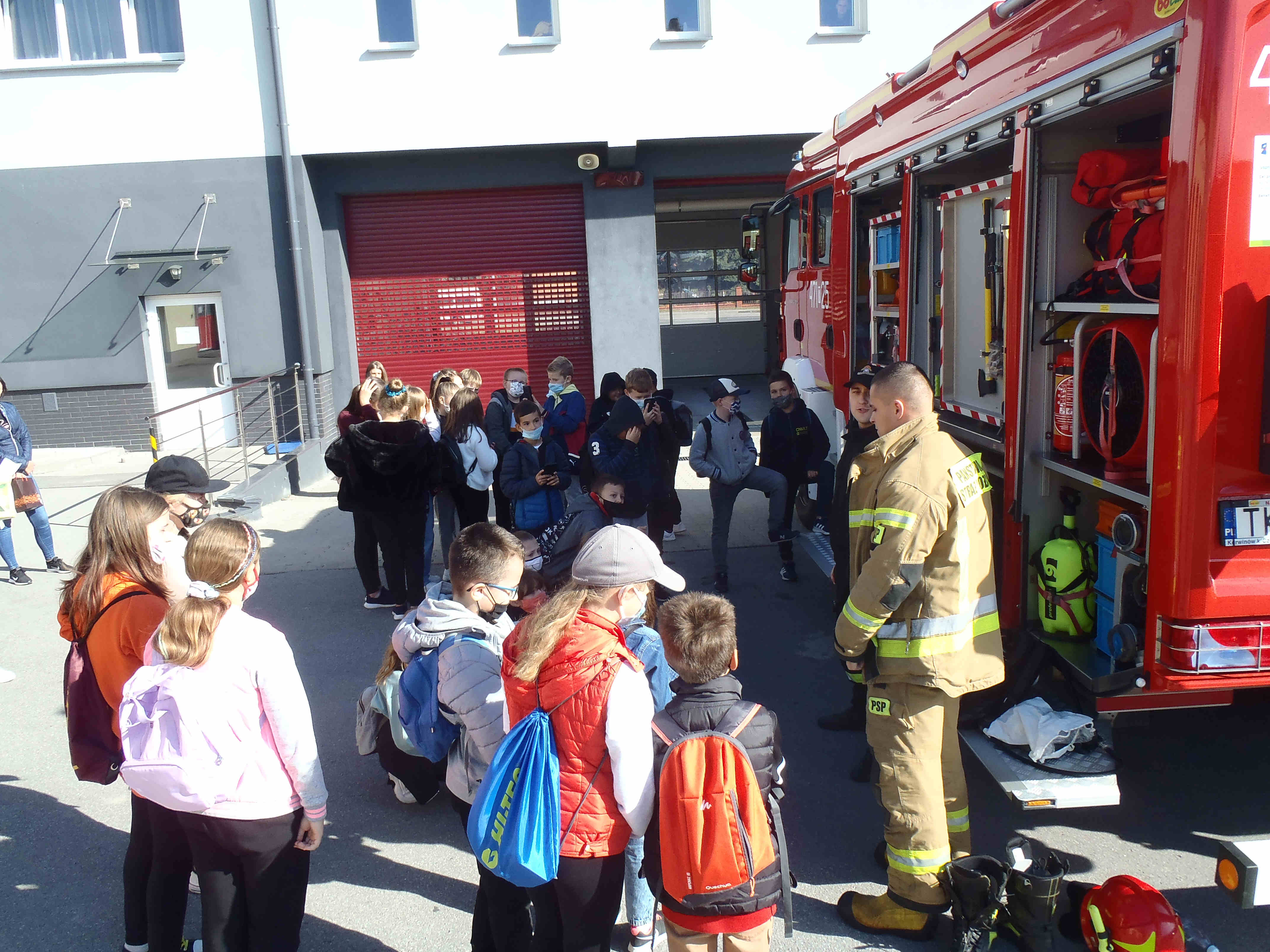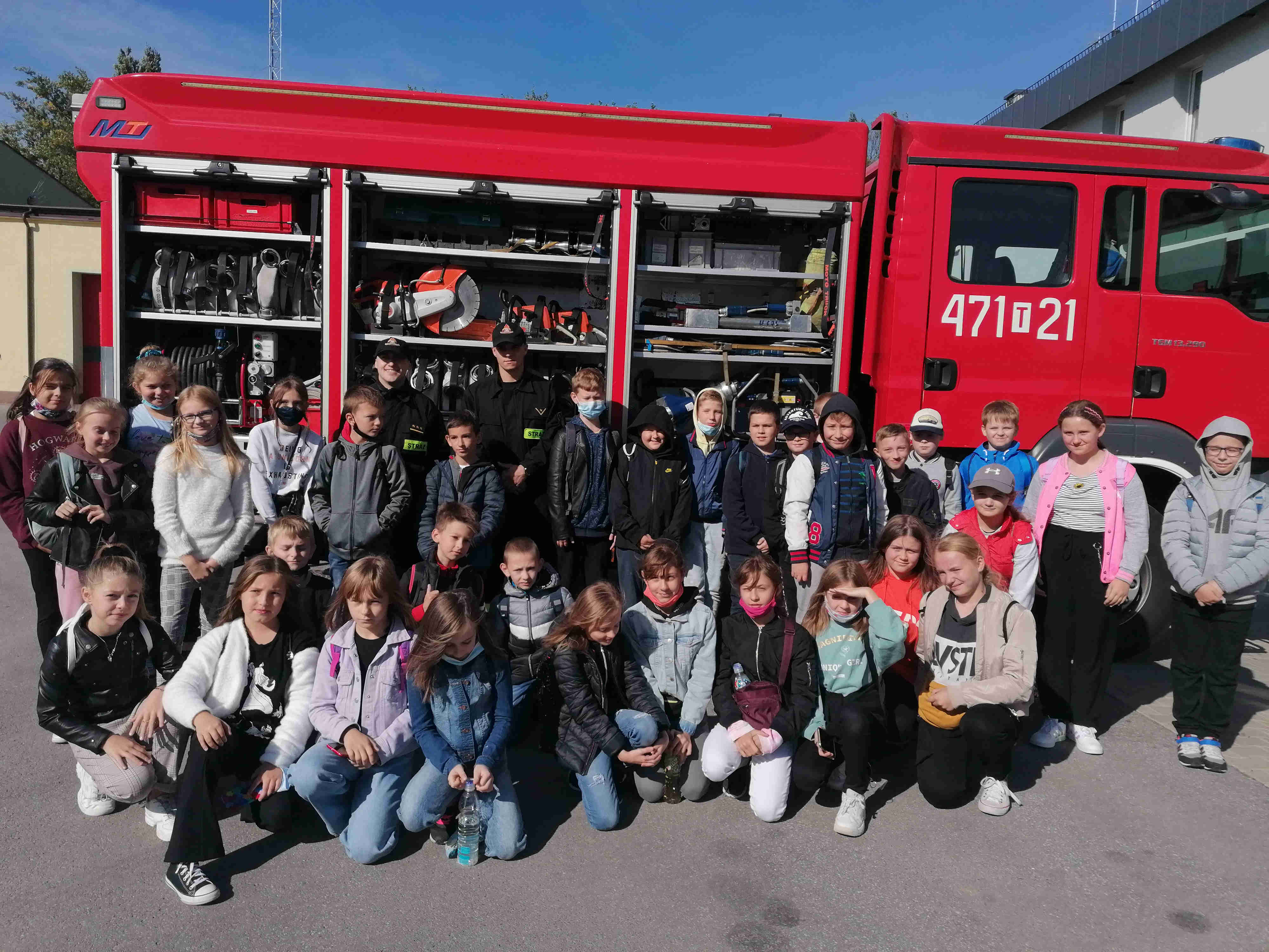 28 września 2021r. Komendę Powiatową Państwowej Straży Pożarnej w Sandomierzu odwiedziła grupa dzieci wraz z opiekunami ze Szkoły Podstawowej nr 3 im. Armii Krajowej w Sandomierzu. Jak zawsze największe zainteresowanie wzbudziły wozy strażackie. Dzieci mogły z bliska oglądać oraz zapoznać się z wyposażeniem, jakim dysponują podczas swojej pracy strażacy. Przez chwilę wszyscy uczestnicy wycieczki mogli poczuć się jak strażacy, zaprezentowano im jak wygląda alarmowanie oraz przygotowanie do wyjazdu alarmowego. Dzieci dowiedziały się w jakich okolicznościach wzywać straż pożarną. Wysłuchały prelekcji na temat niebezpieczeństw i zagrożeń pożarowych, oraz jak zachować się w czasie pożaru. Przy okazji utrwaliły sobie numer alarmowy - 112.