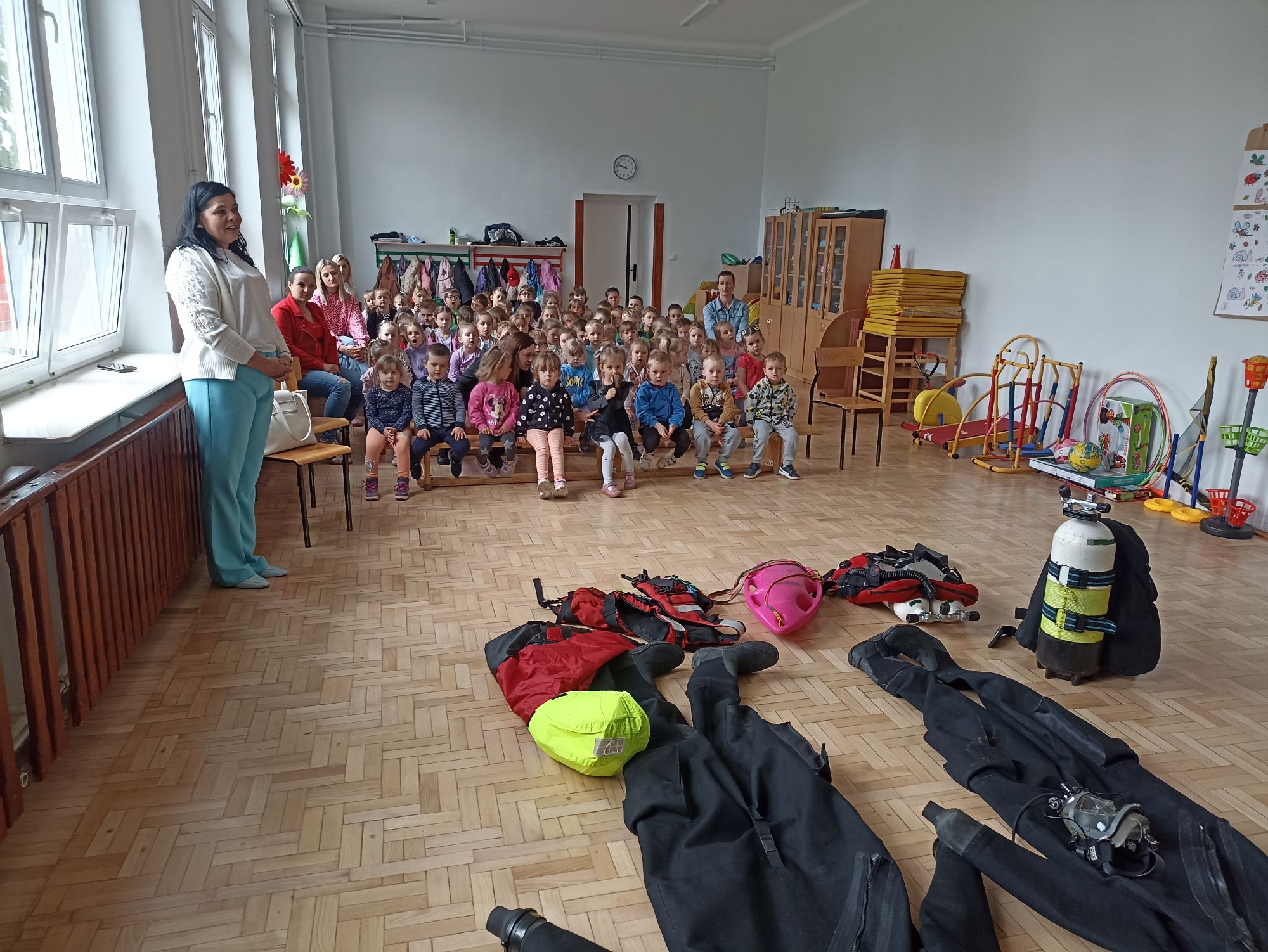 Wizyta Specjalistycznej Grupy Ratownictwa Wodno-Nurkowego z Sandomierza w przedszkolu Wesołe Jabłuszko w Samborcu