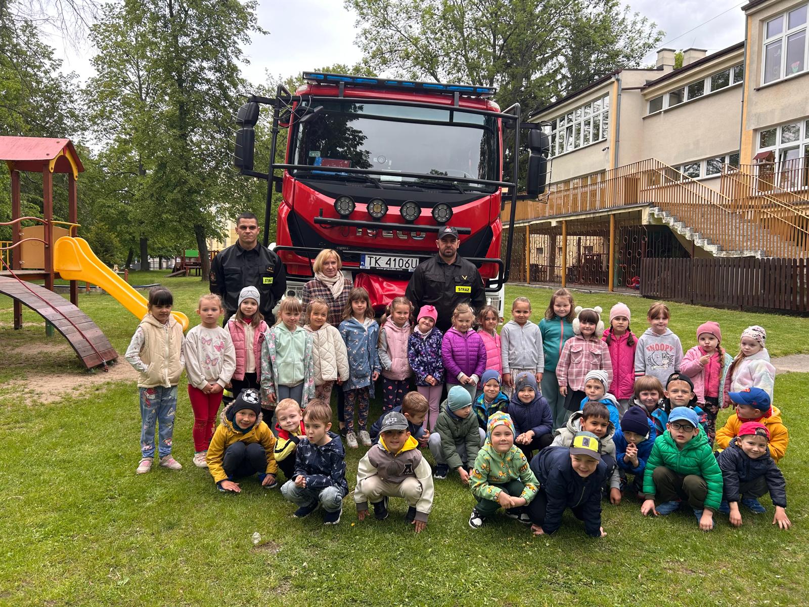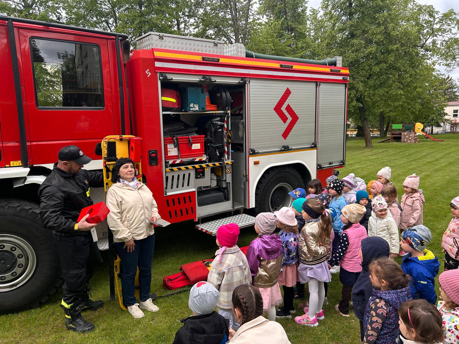 6 maja 2025 roku strażacy z Komendy Powiatowej Państwowej Straży Pożarnej w Sandomierzu odwiedzili Przedszkole Samorządowe nr 3 w Sandomierzu. Celem wizyty było przybliżenie dzieciom zawodu strażaka oraz omówienie podstawowych zasad wzywania pomocy. Dzieci miały możliwość zapoznania się ze sprzętem jakim dysponują strażacy jak również mogły przymierzyć hełm i ubranie strażackie. Spotkanie zakończyło się pamiątkowym zdjęciem.