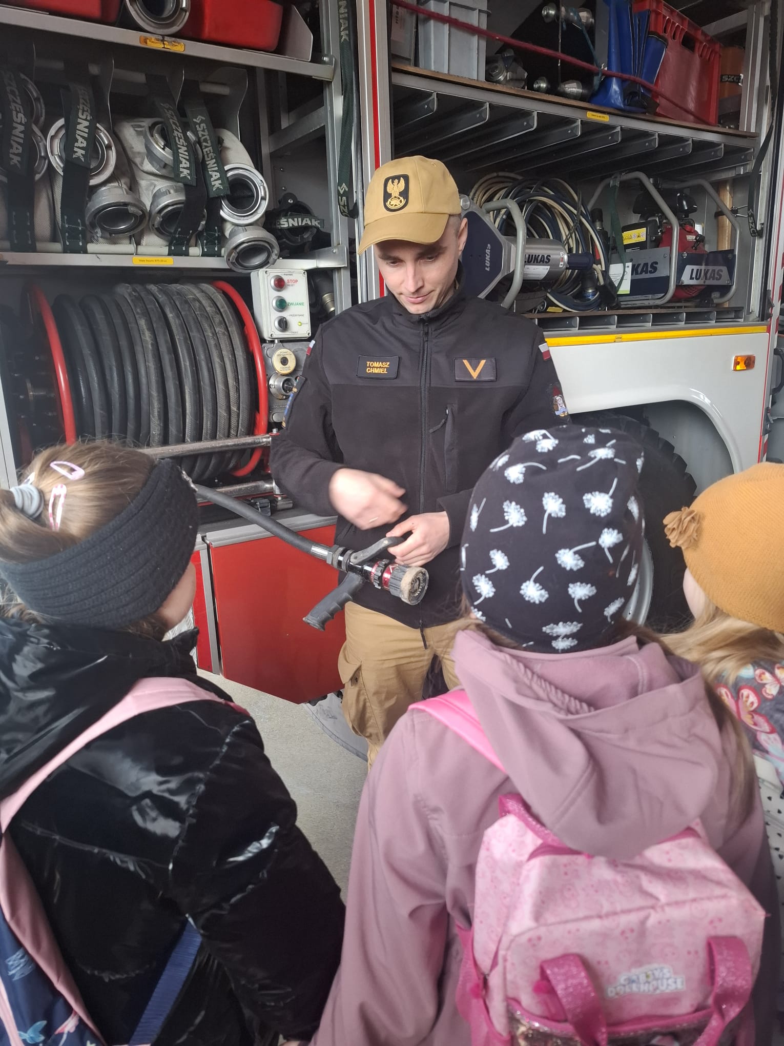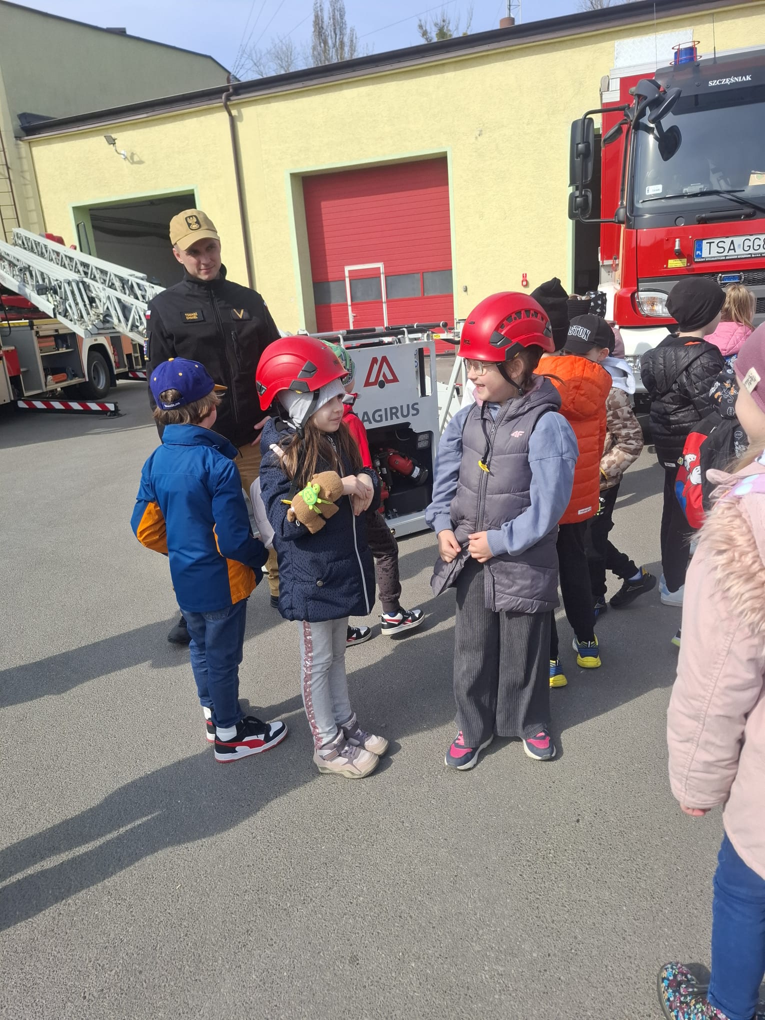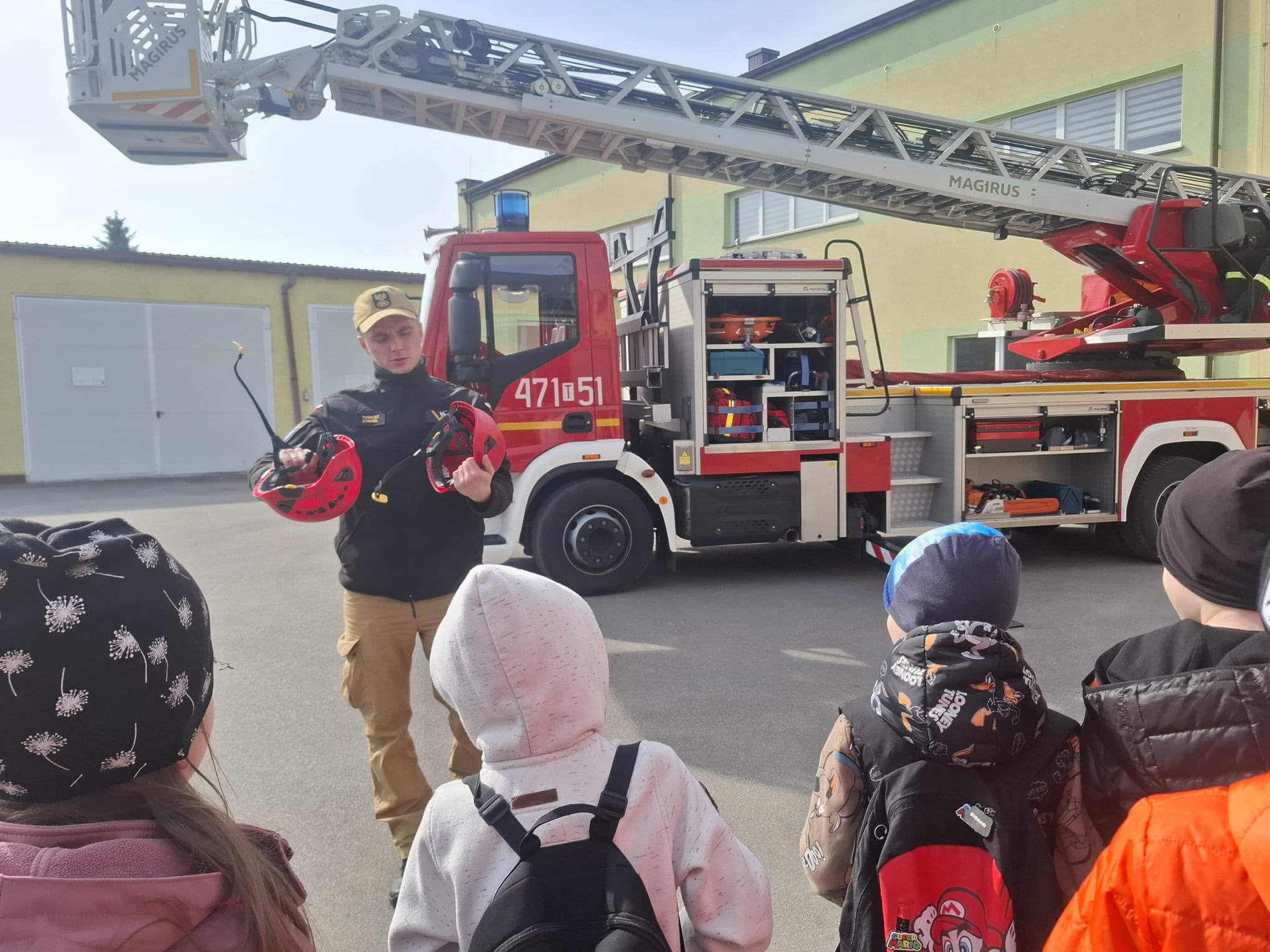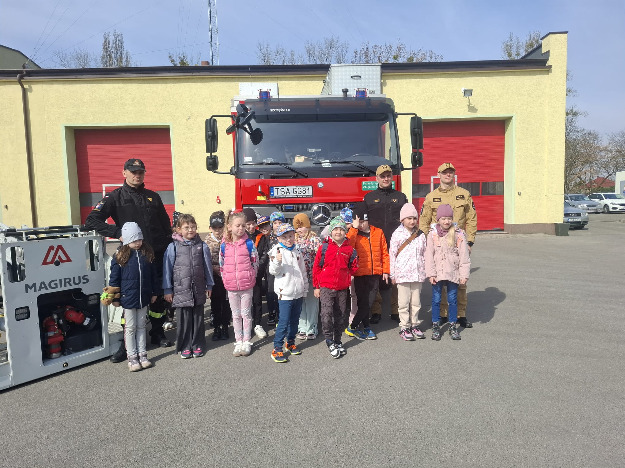 Spotkanie rozpoczęło się od serdecznego powitania uczestników przez strażaków, którzy przybliżyli dzieciom specyfikę swojej codziennej służby. Uczniowie mieli możliwość poznania zasad funkcjonowania jednostki, a także zobaczenia z bliska sprzętu wykorzystywanego podczas akcji ratowniczo-gaśniczych. Duże zainteresowanie wzbudziły wozy strażackie oraz specjalistyczne wyposażenie, które na co dzień pomaga ratować życie i mienie.