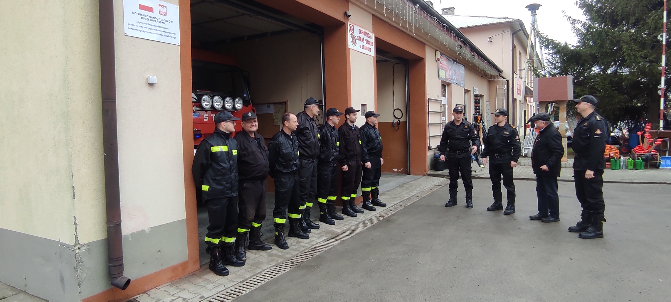 Wizytując jednostkę OSP Łoniów Komendanci spotkali się z Prezesem Zarządu Oddziału Powiatowego Związku Ochotniczych Straży Pożarnych RP w Sandomierzu, dh. Szymonem Kołaczem, składając na jego ręce podziękowania dla wszystkich strażaków ochotników powiatu sandomierskiego.