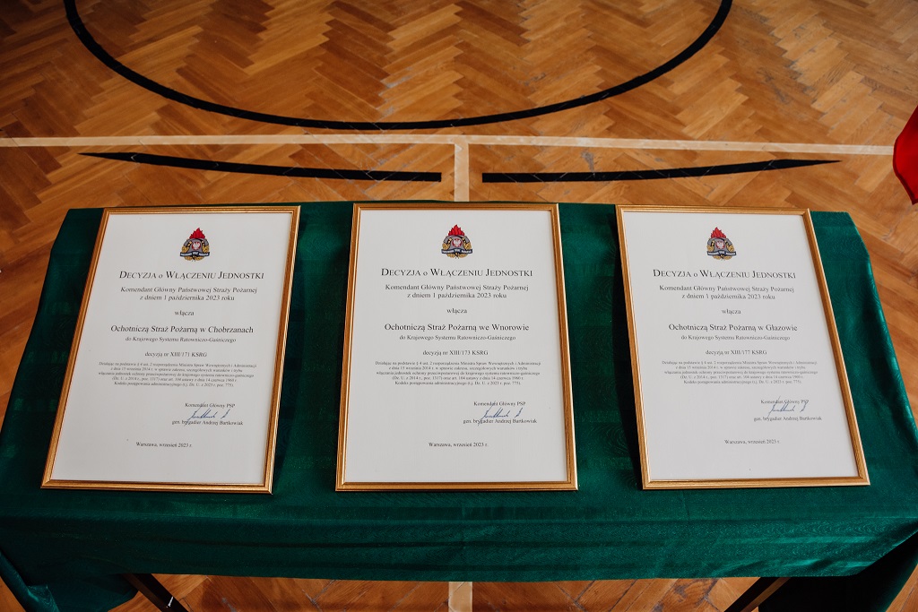 4 lutego 2024 roku w Zespole Publicznych Placówek Oświatowych w Samborcu odbył się uroczysty apel z okazji uroczystego wręczenia Decyzji Komendanta Głównego Państwowej Straży Pożarnej o włączeniu do krajowego systemu ratowniczo-gaśniczego trzech jednostek Ochotniczych Straży Pożarnych w Chobrzanach, Głazowie i Wnorowie.