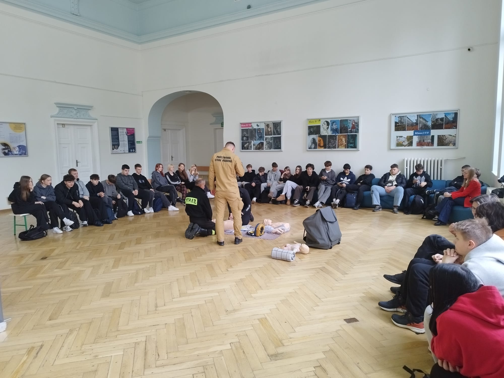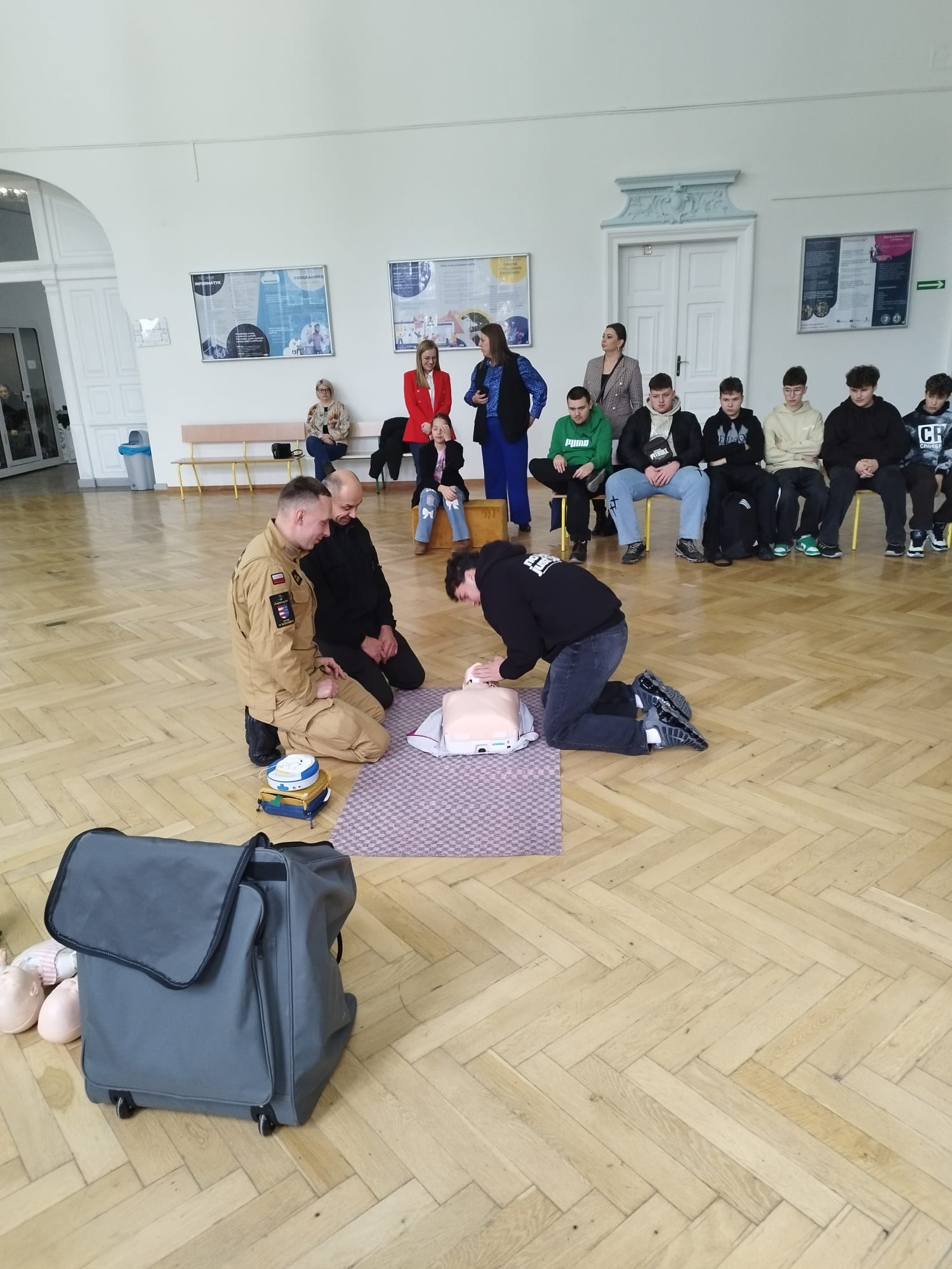 Wykłady z zakresu pierwszej pomocy w Zespole Szkół Ekonomicznych im. Eugeniusza Kwiatkowskiego w Sandomierzu