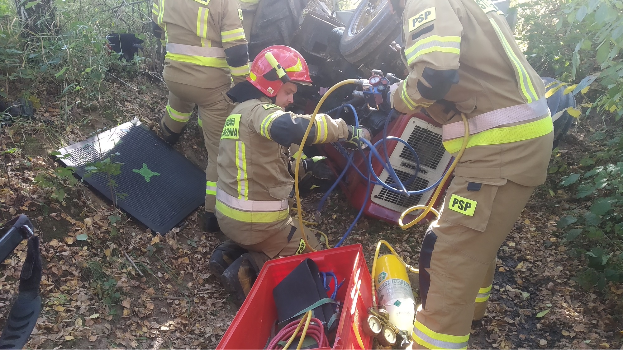 Do zdarzenia zostały zadysponowane trzy zastępy z Jednostki Ratowniczo-Gaśniczej w Sandomierzu. Na miejscu zdarzenia ratownicy ustabilizowali przewrócony pojazd, a następnie za pomocą poduszek pneumatycznych umożliwili wydobycie kierującego, który znajdował się pod pojazdem.