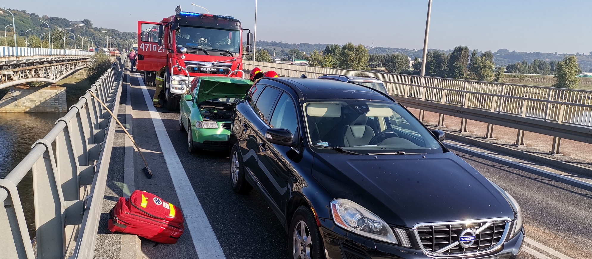 09 września 2021 roku do Stanowiska Kierowania Komendanta Powiatowego Państwowej Straży Pożarnej w Sandomierzu, wpłynęło zgłoszenie o wypadku drogowym w miejscowości Sandomierz na moście drogowym nad rzeką Wisłą. Do zdarzenia zadysponowano trzy zastępy strażaków z Jednostki Ratowniczo - Gaśniczej PSP w Sandomierzu. Po dojeździe na miejsce zdarzenia straży pożarnej stwierdzono, że na moście drogowym doszło do czołowego zderzenia dwóch samochodów osobowych. Działania ratowników polegały na zabezpieczeniu miejsca zdarzenia, odłączeniu akumulatorów w pojazdach oraz jednoczesnym udzieleniu KPP poszkodowanym uczestnikom zdarzenia. Wszystkich poszkodowanych przekazano przybyłemu na miejsce Zespołowi Ratownictwa Medycznego. Po czynnościach dochodzeniowych Policji jezdnia została uprzątnięta z rozbitych elementów karoserii oraz dokonano neutralizacji i sorpcji rozlanych płynów eksploatacyjnych. Podczas działań ruch na drodze w miarę możliwości odbywał się wahadłowo.