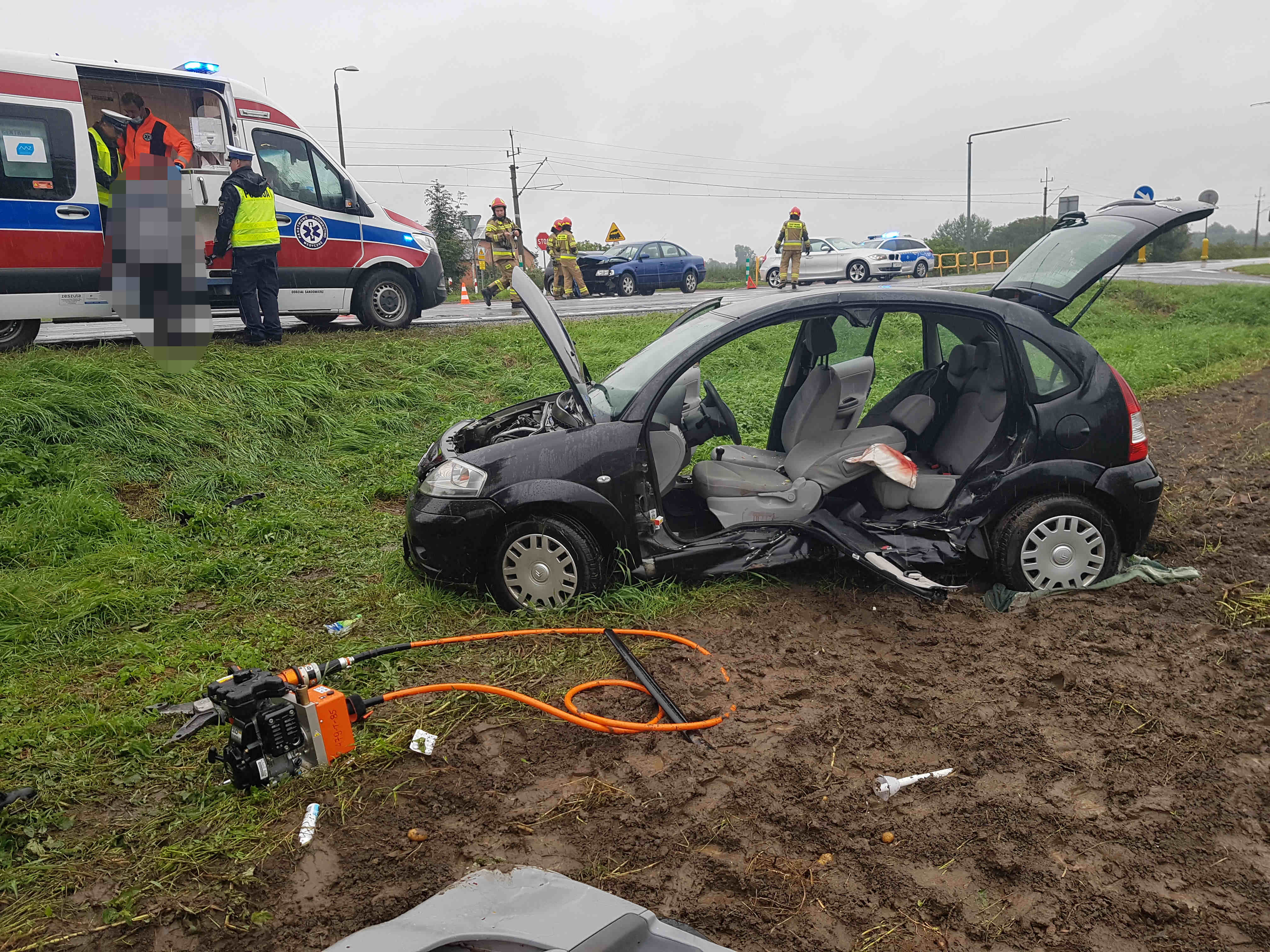 Wypadek drogowy w miejscowości Łążek powiat sandomierski
