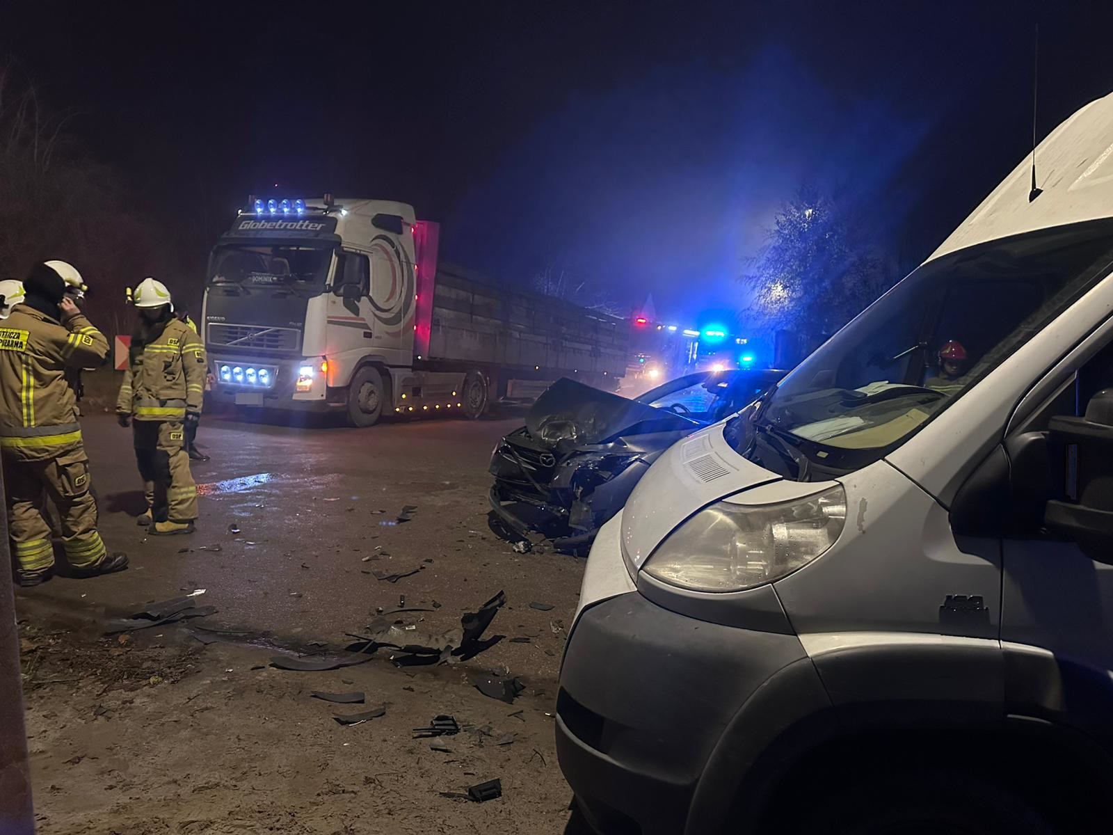 Do SK KP PSP w Sandomierzu o godz. 16:32 wpłynęło zgłoszenie o zderzeniu dwóch samochodów osobowych na drodze powiatowej w miejscowości Świątniki, gmina Obrazów. Do zdarzenia zadysponowano strażaków z JRG Sandomierz oraz OSP Świątniki. Po przyjeździe zastępów Straży Pożarnej na miejsce zdarzenia i przeprowadzonym rozpoznaniu stwierdzono, że doszło zderzenia samochodu marki Fiat Ducato oraz Mazda 6. Pojazdami podróżowało łącznie 6 osób. Działania strażaków polegały na udzieleniu KPP osobie poszkodowanej, odłączeniu akumulatorów w pojazdach i sorpcji rozlanych płynów eksploatacyjnych.