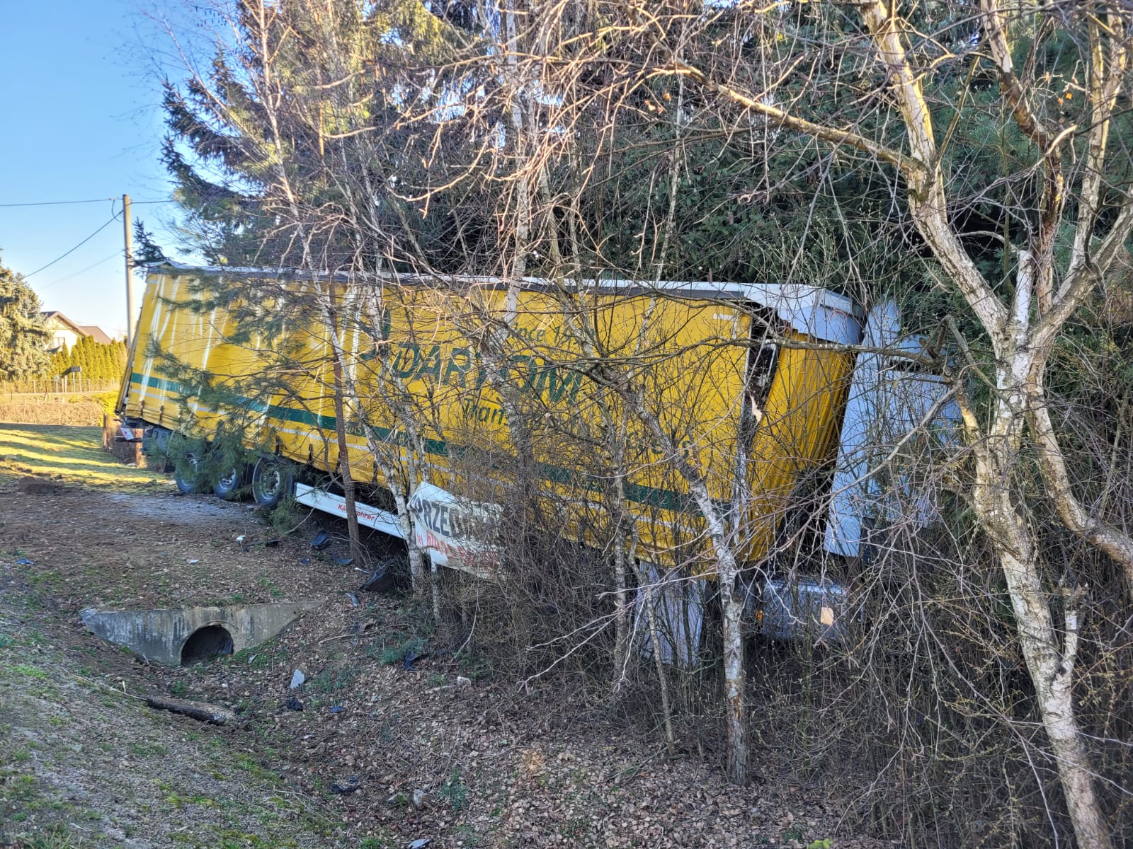 19.03.2025r. Do Stanowiska Kierowania Komendanta Powiatowego Państwowej Straży Pożarnej w Sandomierzu o godzinie 6:34 wpłynęło zgłoszenie, że w miejscowości Łukawa na Drodze Krajowej numer 79 samochód ciężarowy wjechał do przydrożnego rowu a kierowca jest uwięziony w środku.