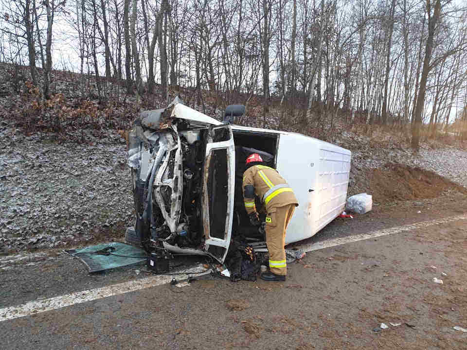 Wypadek samochodu dostawczego w Borku Klimontowskim
