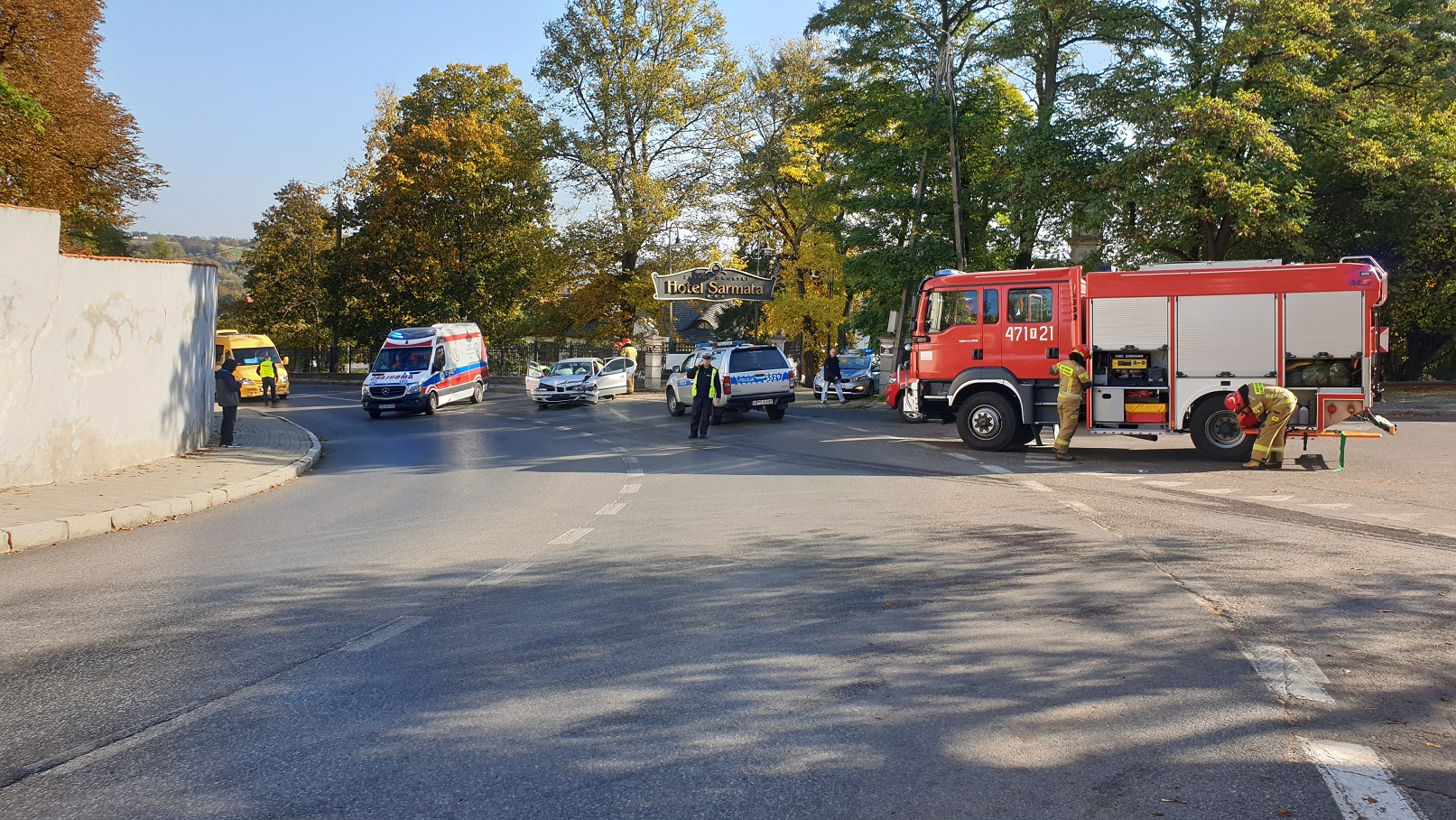 13 października 2022 roku do Stanowiska Kierowania wpłynęło zgłoszenie o wypadku samochodu osobowego. Do zdarzenia zadysponowano strażaków z Jednostki Ratowniczo-Gaśniczej w Sandomierzu. Po przyjeździe na miejsce zdarzenia zastępów straży pożarnej, stwierdzono, że samochód osobowy uderzył w mur oporowy a następnie w ogrodzenie posesji. W wyniku zdarzenia poszkodowana została 1 osoba. Działania zastępów straży pożarnej polegały na zabezpieczeniu miejsca zdarzenia, udzielaniu kwalifikowanej pierwszej pomocy poszkodowanej osobie oraz odłączeniu instalacji elektrycznej w pojeździe. Poszkodowana osoba została przetransportowana przez zespoł ratownictwa medycznego do szpitala na dalsze badania. Następnie przeprowadzono neutralizację i sorpcję płynów eksploatacyjnych z jezdni.