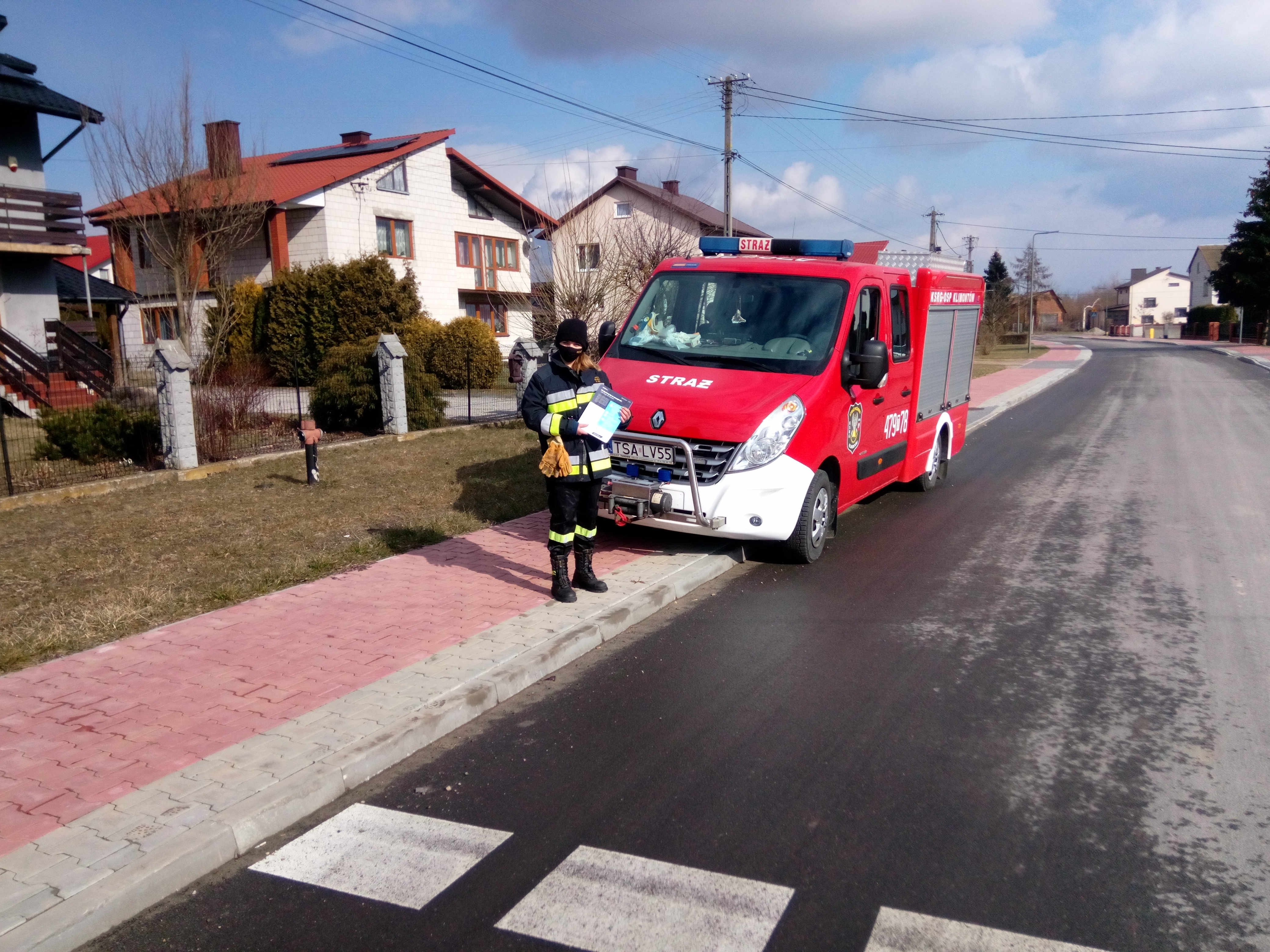Strażacy z jednostek Ochotniczych Straży Pożarnej aktywnie uczestniczyli w dostarczeniu ulotek informacyjnych, które zawierały istotne informacje na temat możliwości rejestracji na szczepienie a także o możliwości pomocy w dotarciu do punktu szczepień.