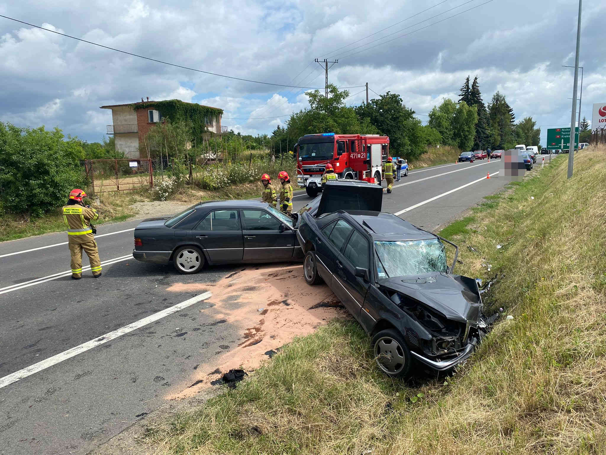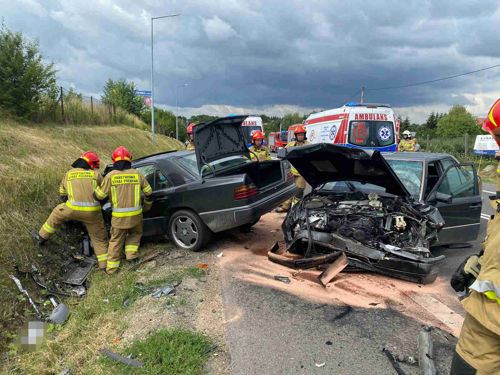 09 lipca 2022 roku do Stanowiska Kierowania Komendanta Powiatowego Państwowej Straży Pożarnej w Sandomierzu wpłynęło zgłoszenie o zderzeniu dwóch pojazdów osobowych ulicy Eugeniusza Kwiatkowskiego w Sandomierzu. Do zdarzenia zostali zadysponowani strażacy z Jednostki Ratowniczo - Gaśniczej PSP w Sandomierzu i strażacy z OSP Obrazów. Po dojeździe na miejsce zdarzenia zastępów straży pożarnej stwierdzono zderzenie czołowe dwóch samochodów osobowych. W pojazdach podróżowało łącznie 4 osoby. Działania ratowników polegały na zabezpieczeniu miejsca zdarzenia, udzieleniu kwalifikowanej pierwszej pomocy poszkodowanym osobom i odłączeniu instalacji elektrycznej w pojazdach. Poszkodowane osoby zostały zabrane do szpitala na dalsze badania. Po czynnościach przeprowadzonych przez Policję ratownicy dokonali sorpcji i neutralizacji rozlanych płynów eksploatacyjnych.