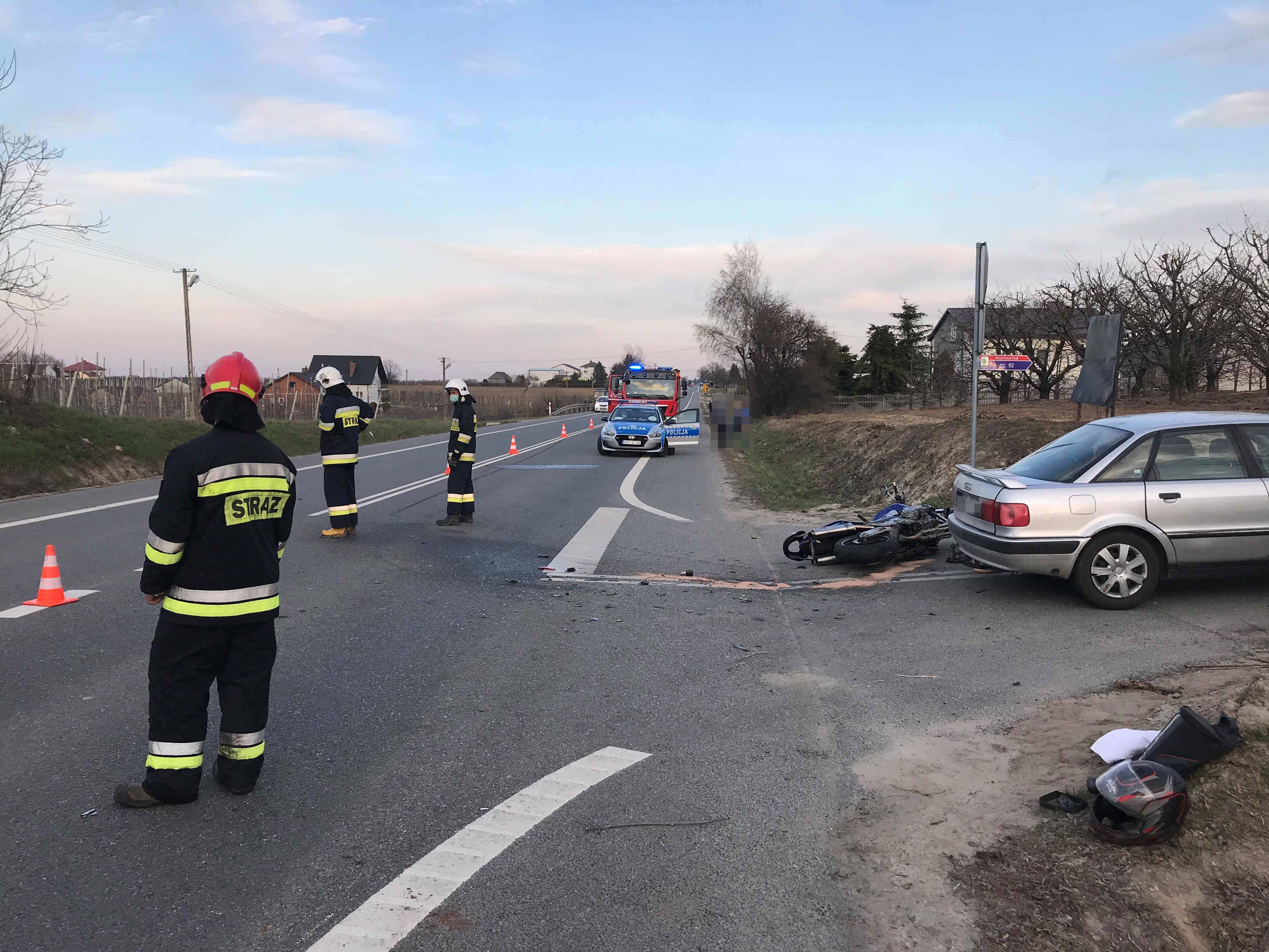 Zderzenie motocyklisty z samochodem osobowym w miejscowości Komorna powiat sandomierski
