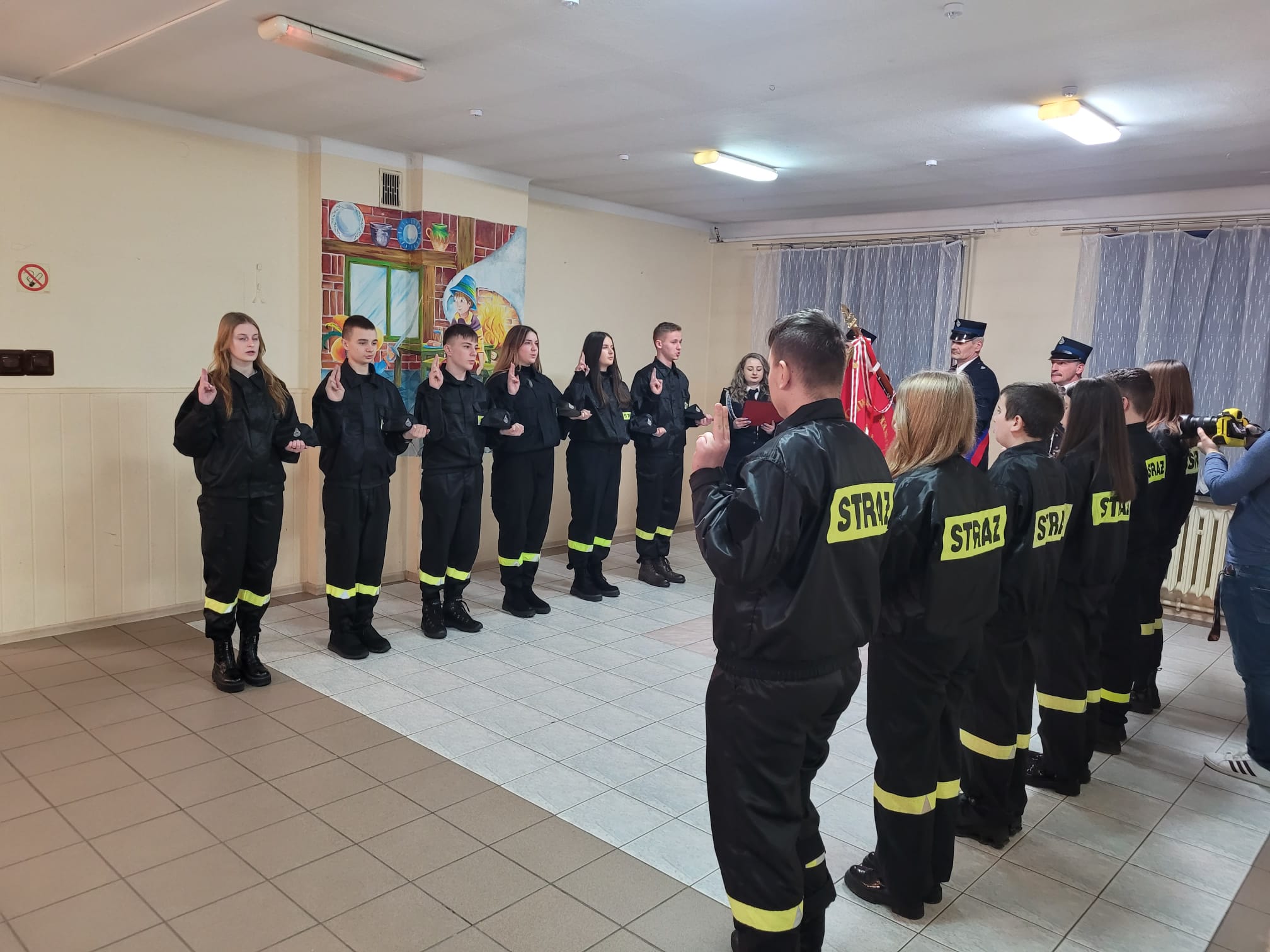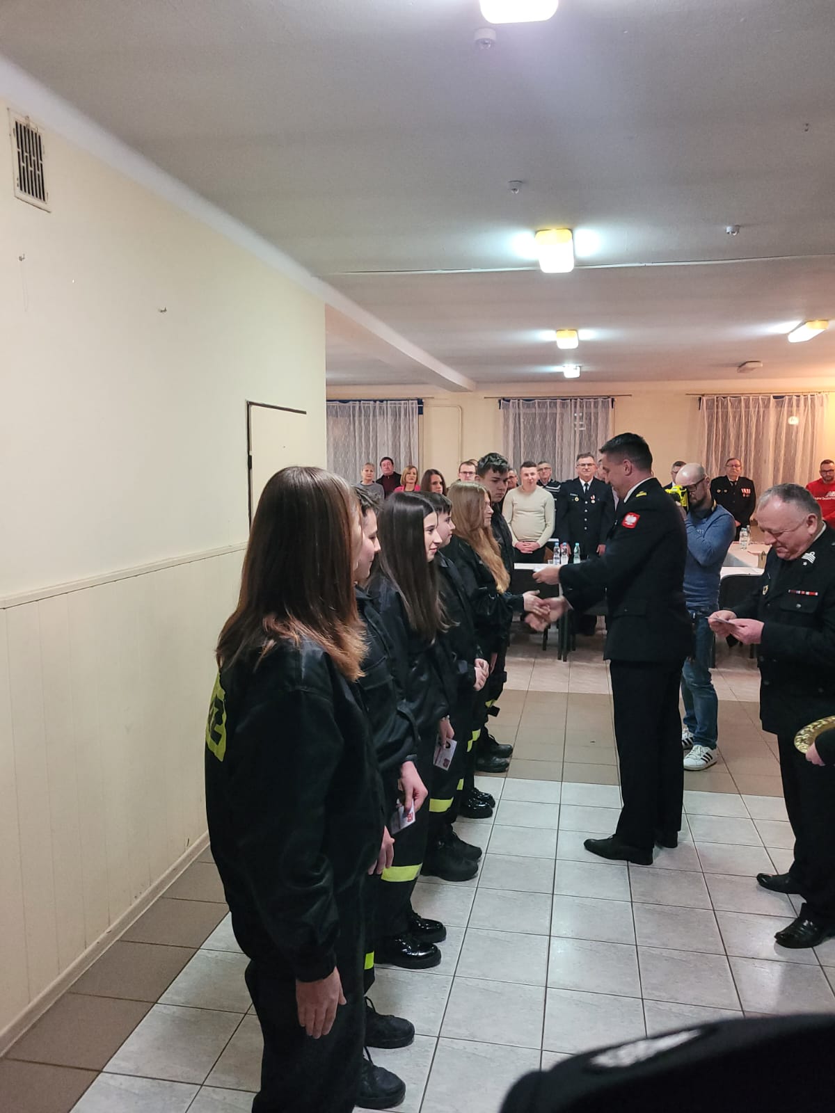 Miłym akcentem spotkania było uroczyste ślubowanie nowych członków Młodzieżowej Drużyny Pożarniczej. W ślubowaniu udział wzięło 12 młodych adeptów sztuki pożarniczej, zarówno dziewcząt jak i chłopców. Było to wyjątkowe wydarzenie dla młodych druhów, którzy już w tak młodym wieku chcą pomagać innym w potrzebie. W trakcie uroczystości Prezes Zarządu Oddziału Powiatowego ZOSP RP Szymon Kołacz wspólnie z Komendantem Powiatowym PSP w Sandomierzu mł. bryg. Piotrem Krytusa wręczyli druhom i druhnom Statuetki za Zasługi dla Jednostki oraz Odznaki „Wzorowego Strażaka”.