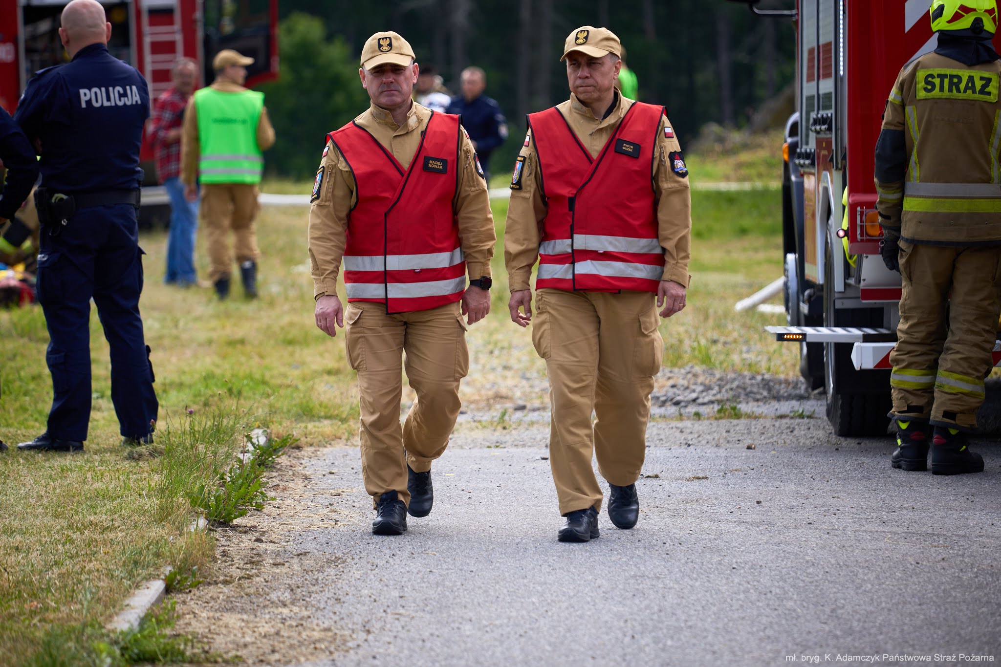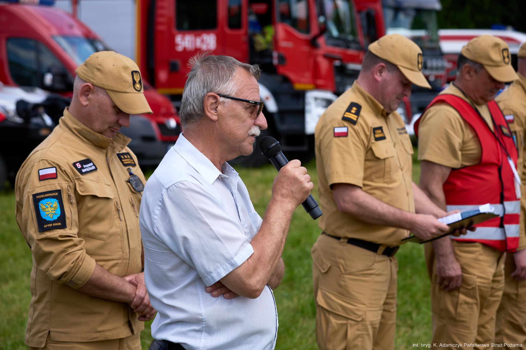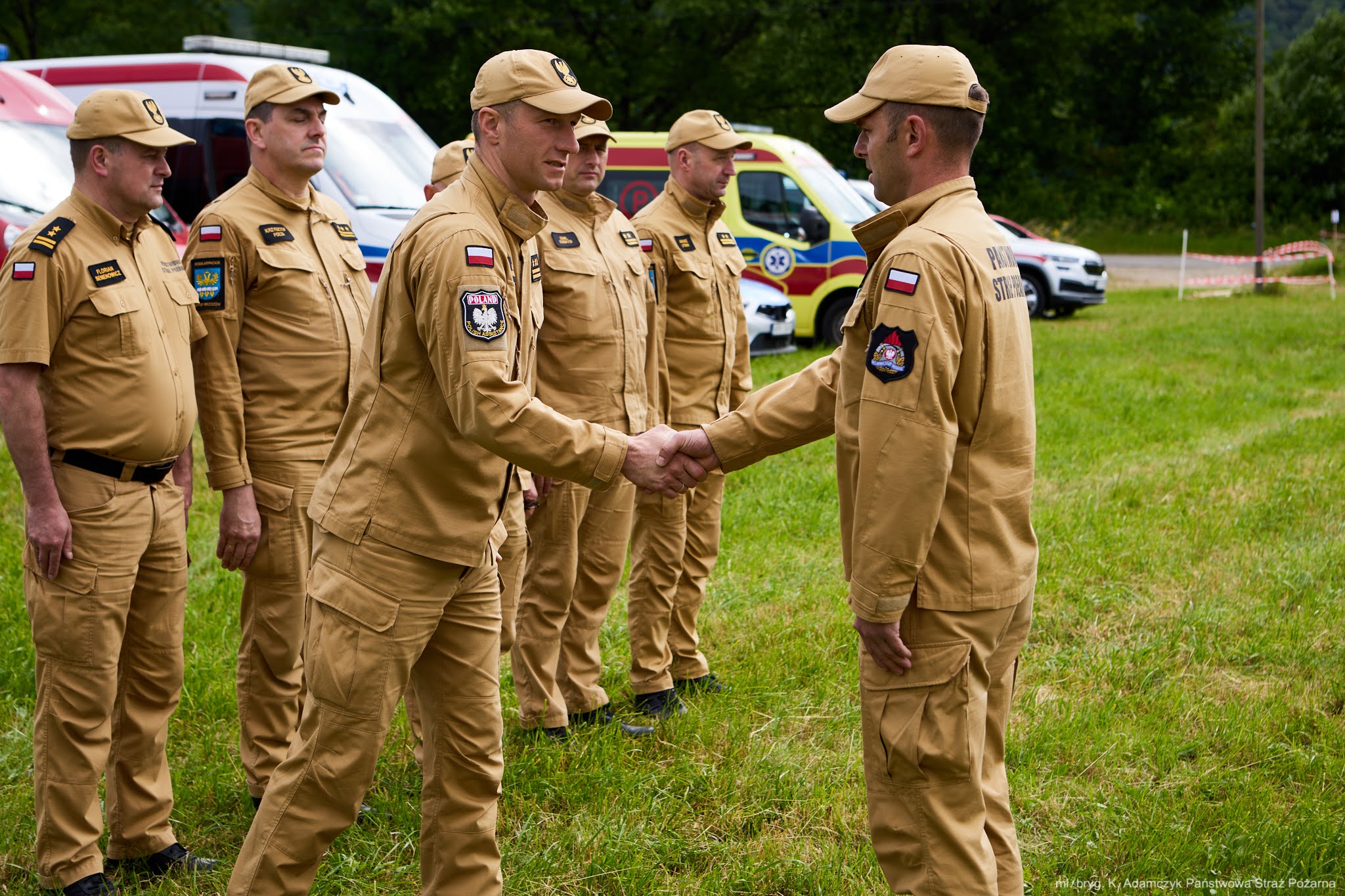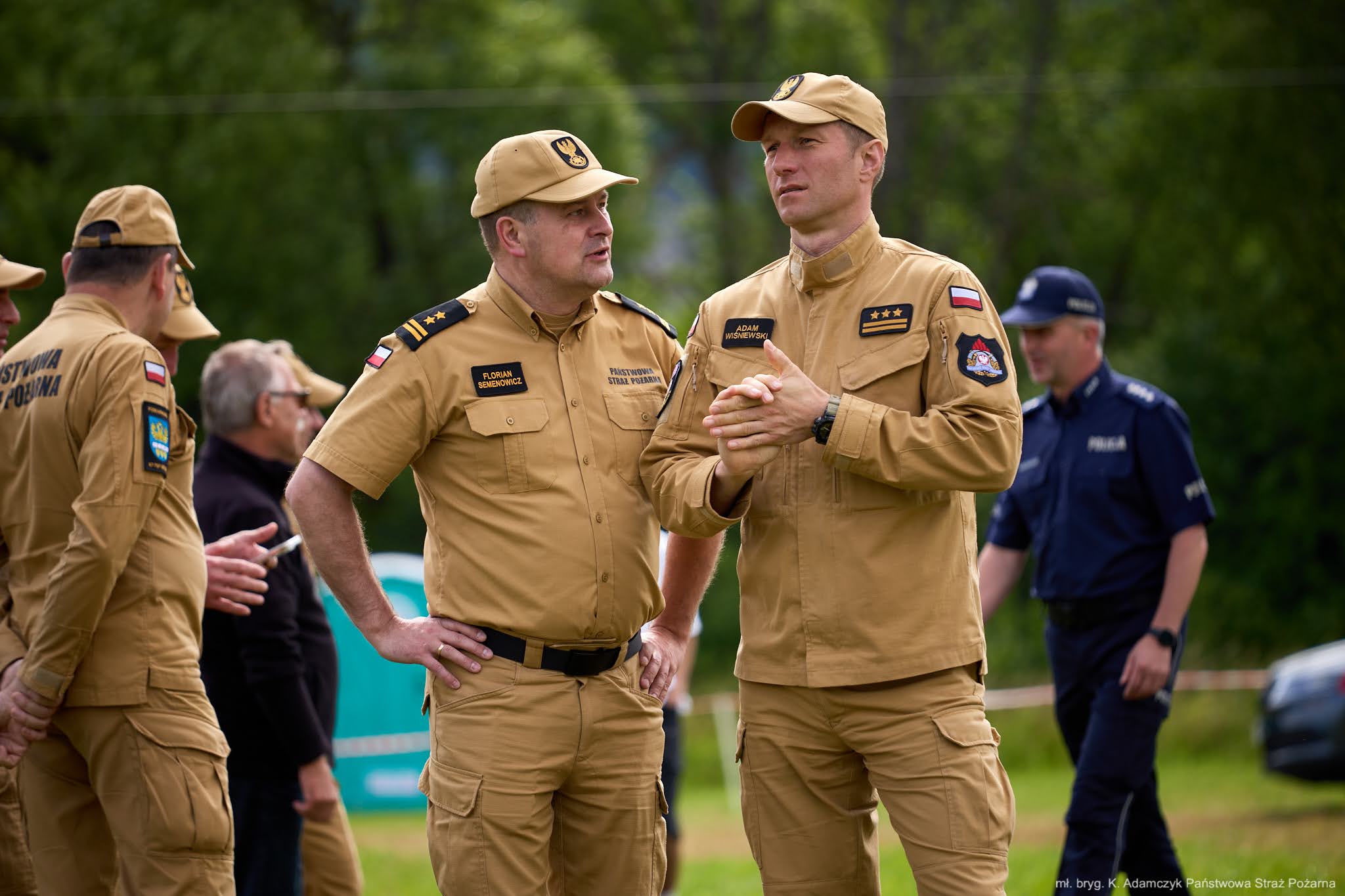 Przebieg ćwiczeń nadzorował Zastępca Podkarpackiego Komendanta Wojewódzkiego st. bryg. Adam Wiśniewski wraz z zespołem oceniającym z Komendy Wojewódzkiej Państwowej Straży Pożarnej w Rzeszowie oraz Komendantem Powiatowym Państwowej Straży Pożarnej w Sanoku bryg. Florianem Semenowiczem.