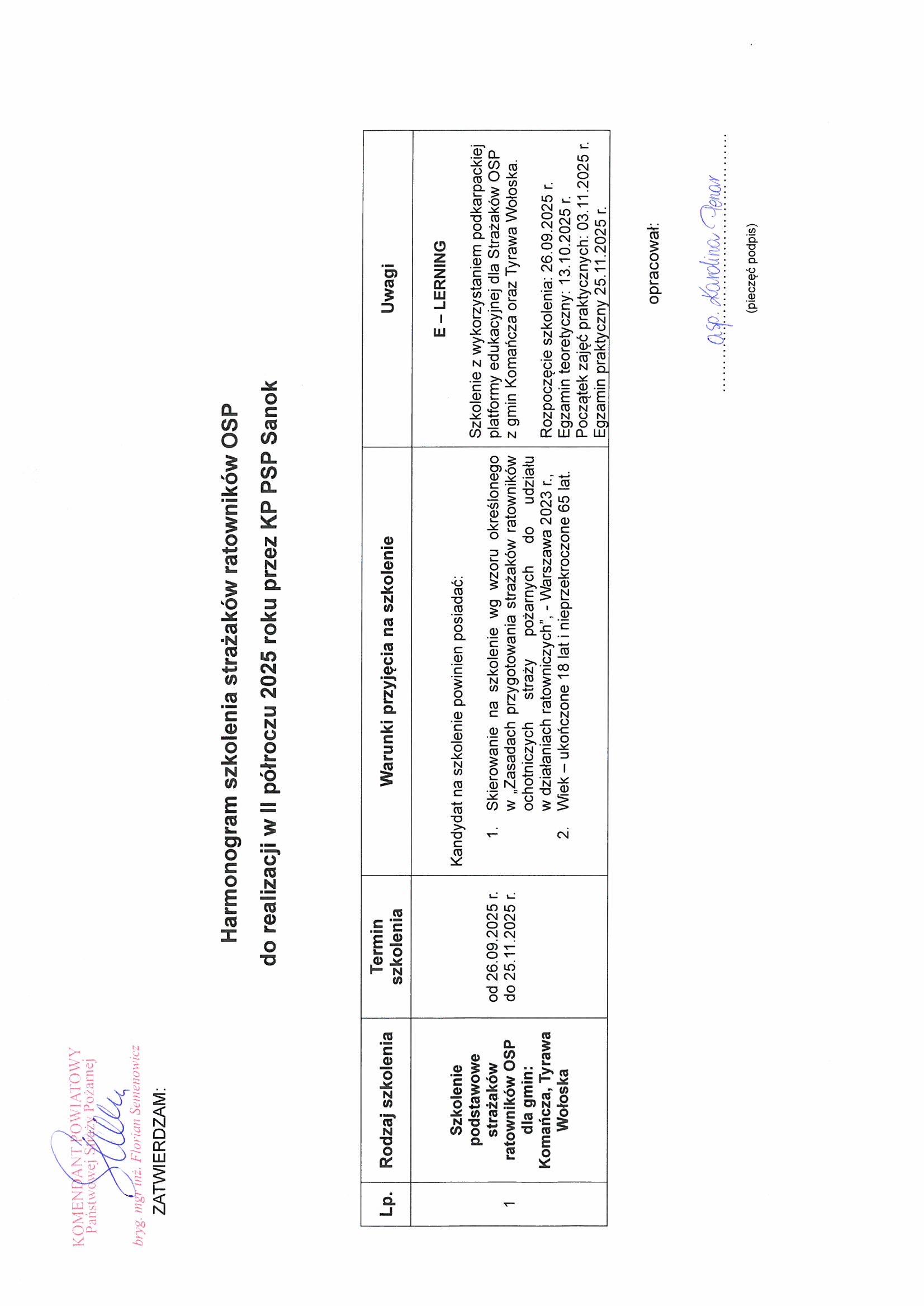 Harmonogram szkoleń OSP w II półroczu 2025 r.