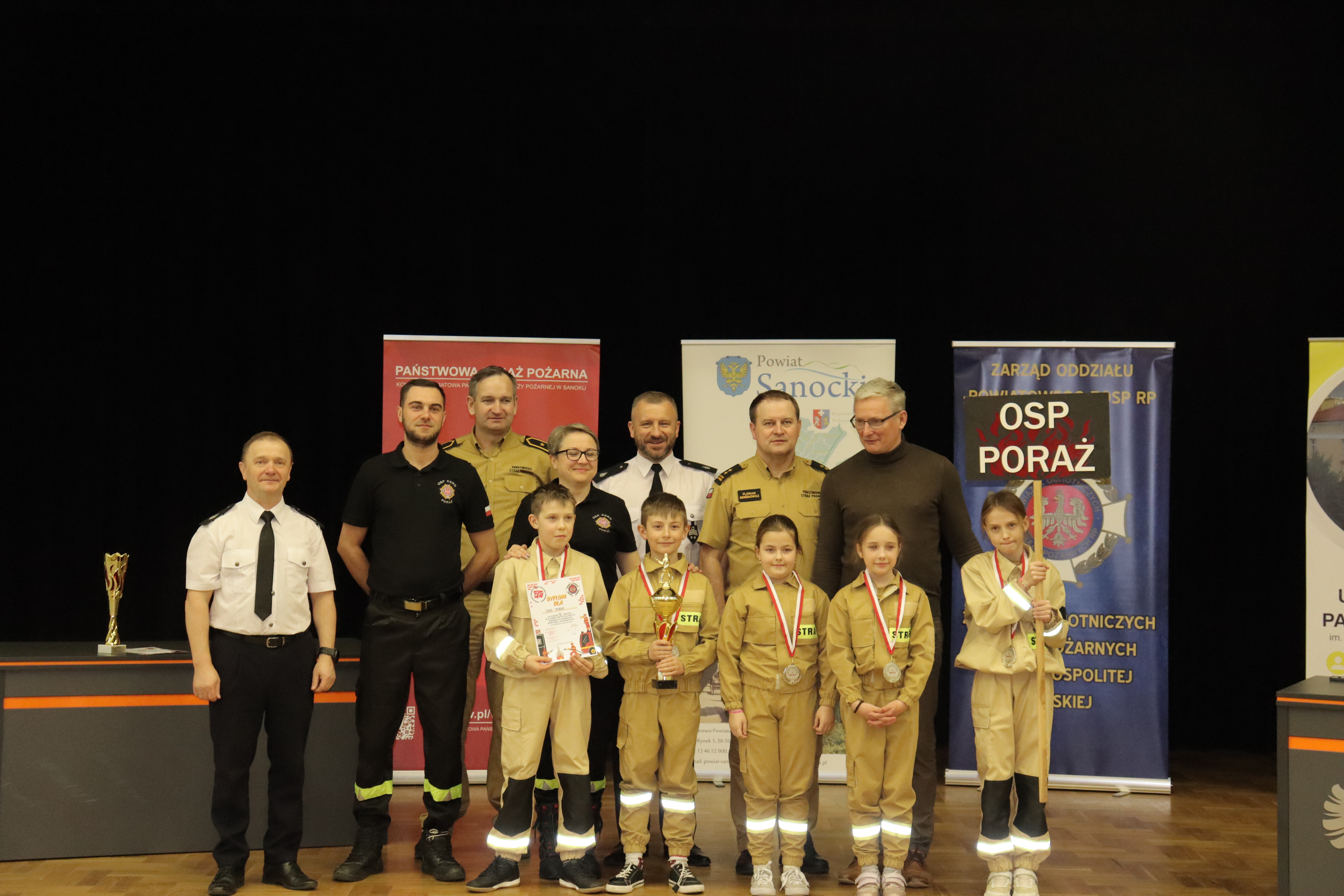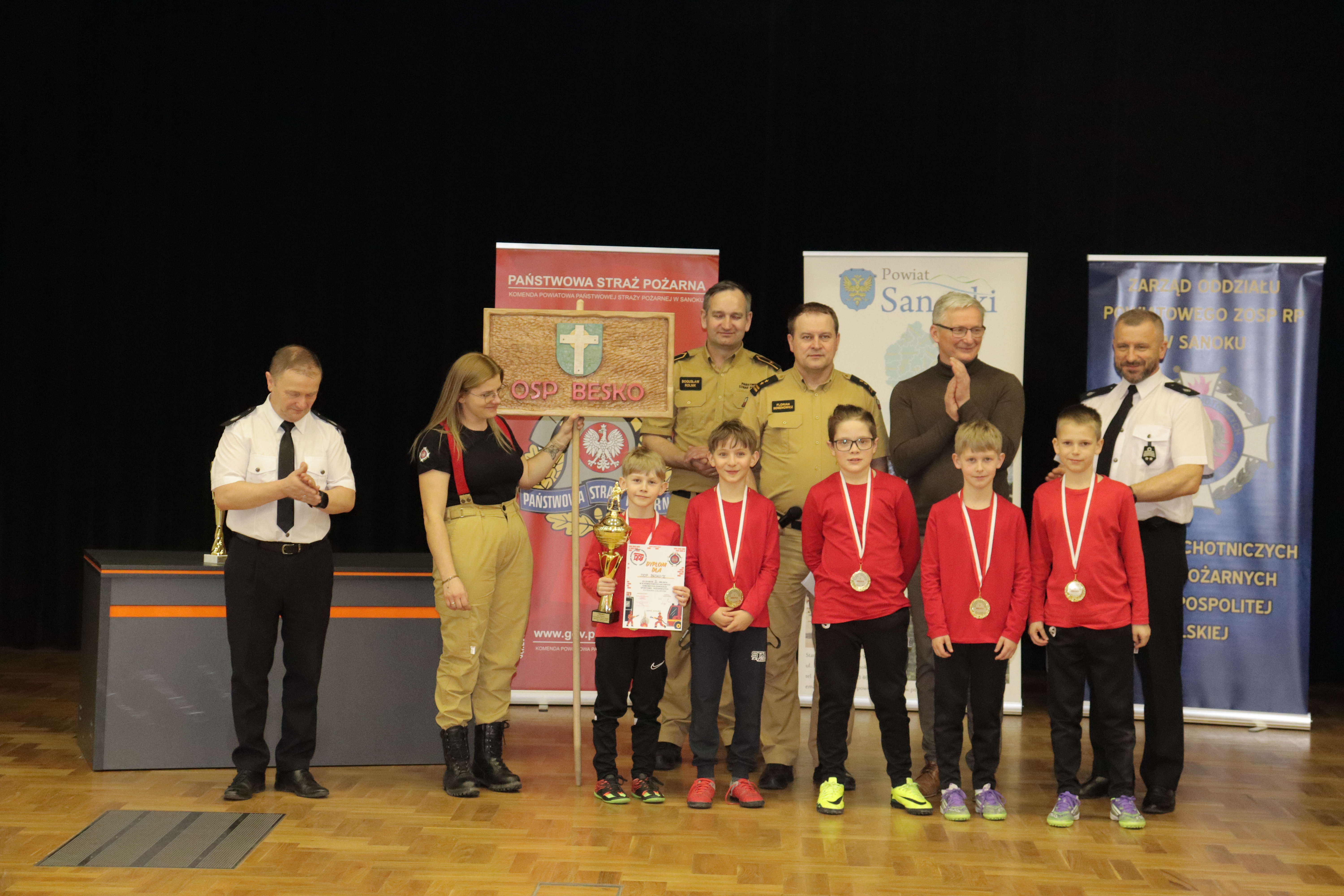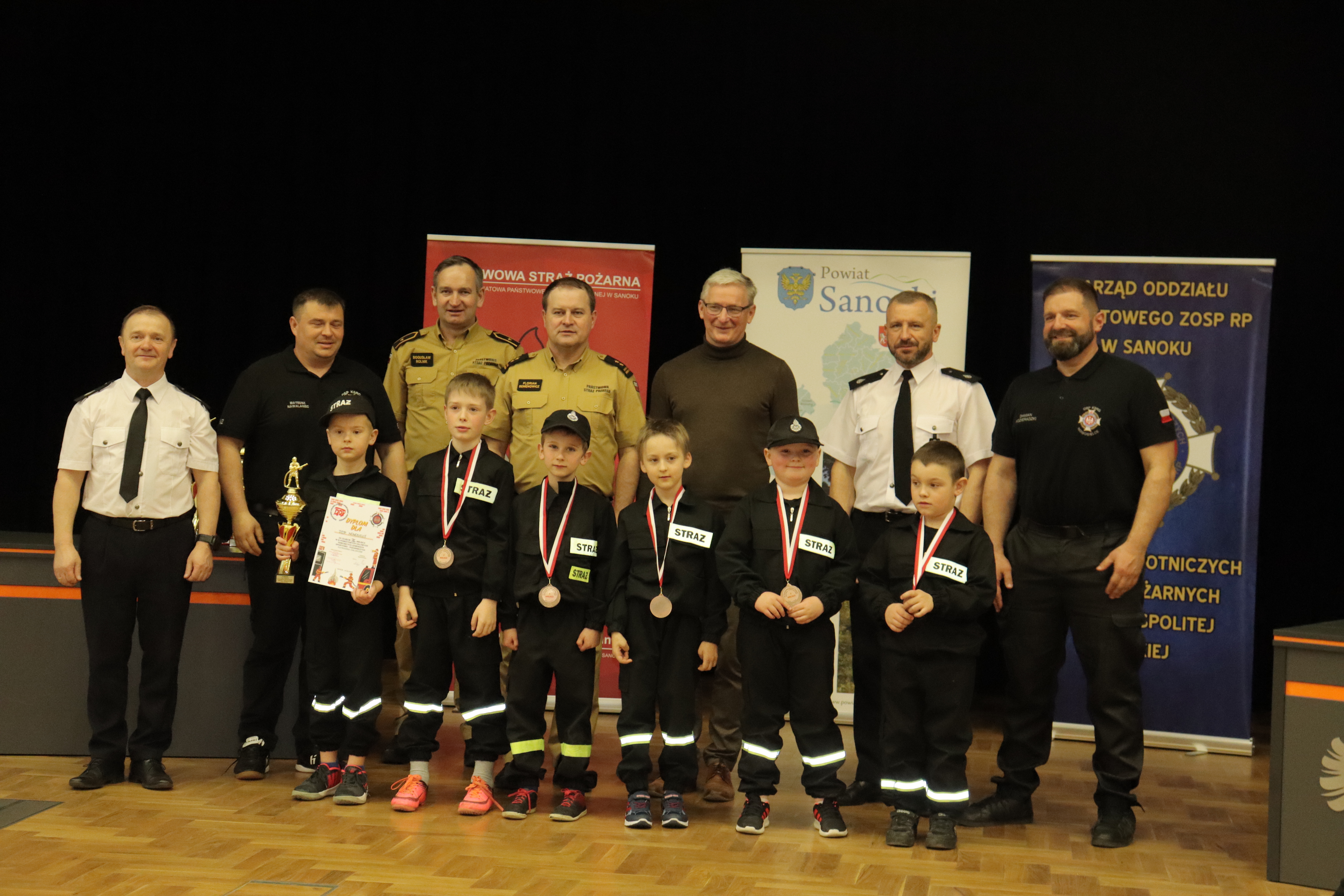 Nagrody wręczyli Starosta Sanocki Robert Pieszczoch, Komendant Powiatowy PSP w Sanoku bryg. Florian Semenowicz, Przewodniczący Prezydium Wojewódzkiego Kolegium Sędziów mł. bryg. Maciej Wielgos oraz Prezes Zarządu Powiatowego ZOSP RP w Sanoku dh Grzegorz Klecha.
