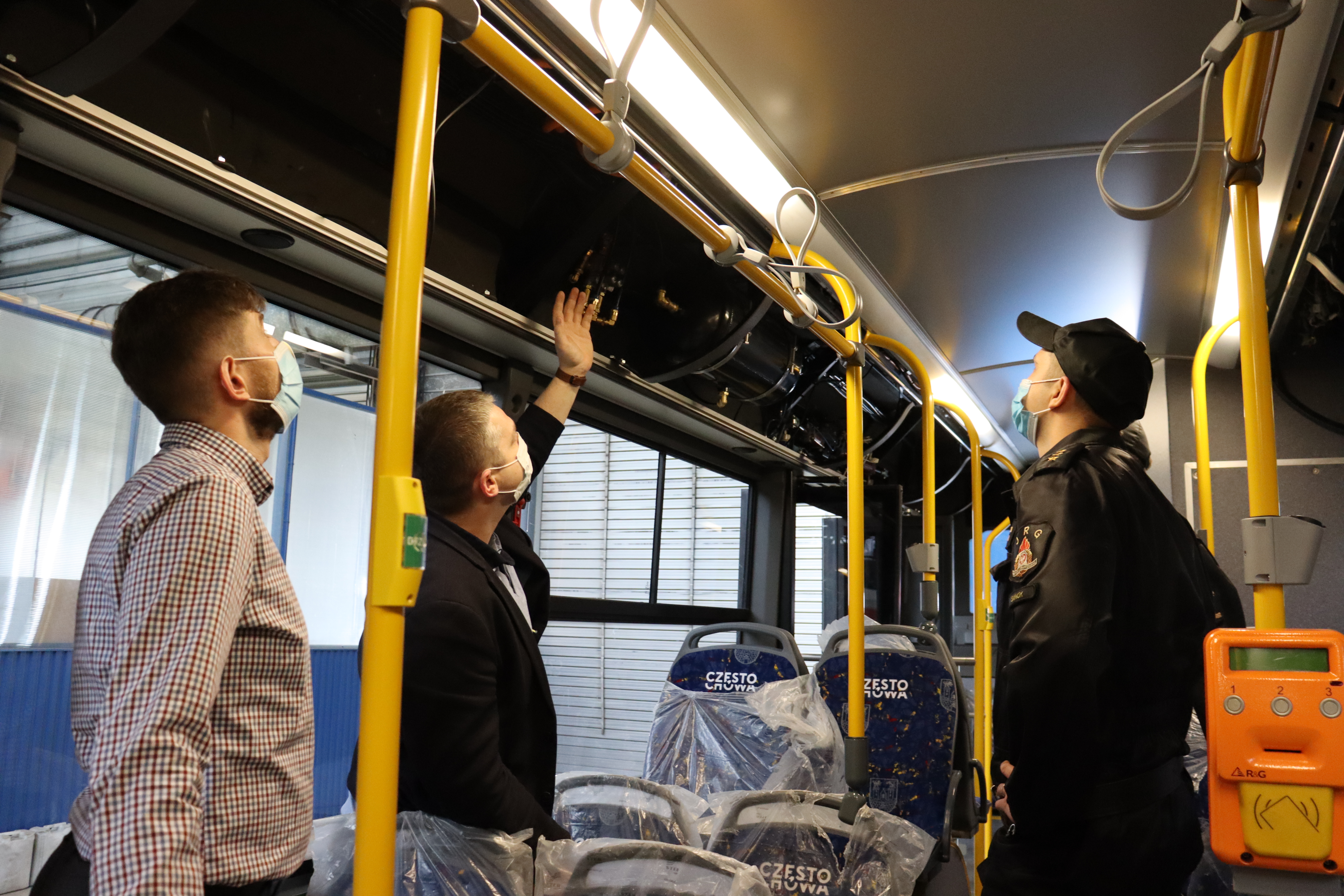 Wspólne omawianie spraw bezpieczeństwa w nowym autobusie elektrycznym Autosan