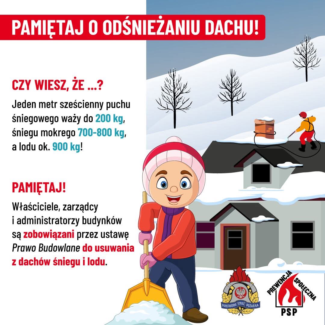 Strażacy przypominają właścicielom i zarządcom nieruchomości o obowiązku odśnieżania dachów i usuwania sopli lodowych, szczególnie w obiektach wielkopowierzchniowych, takich jak hale sportowe, magazyny czy centra handlowe.