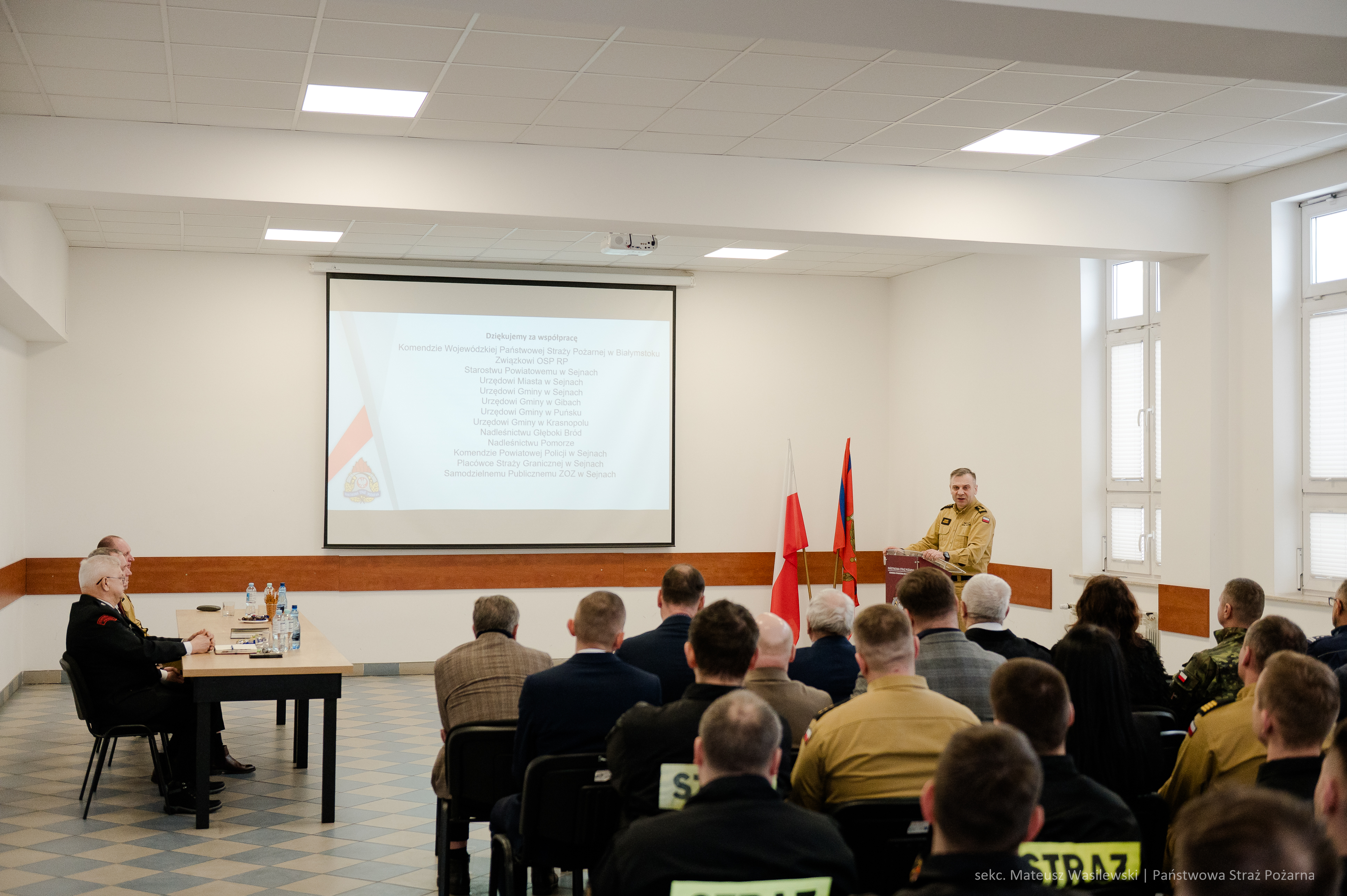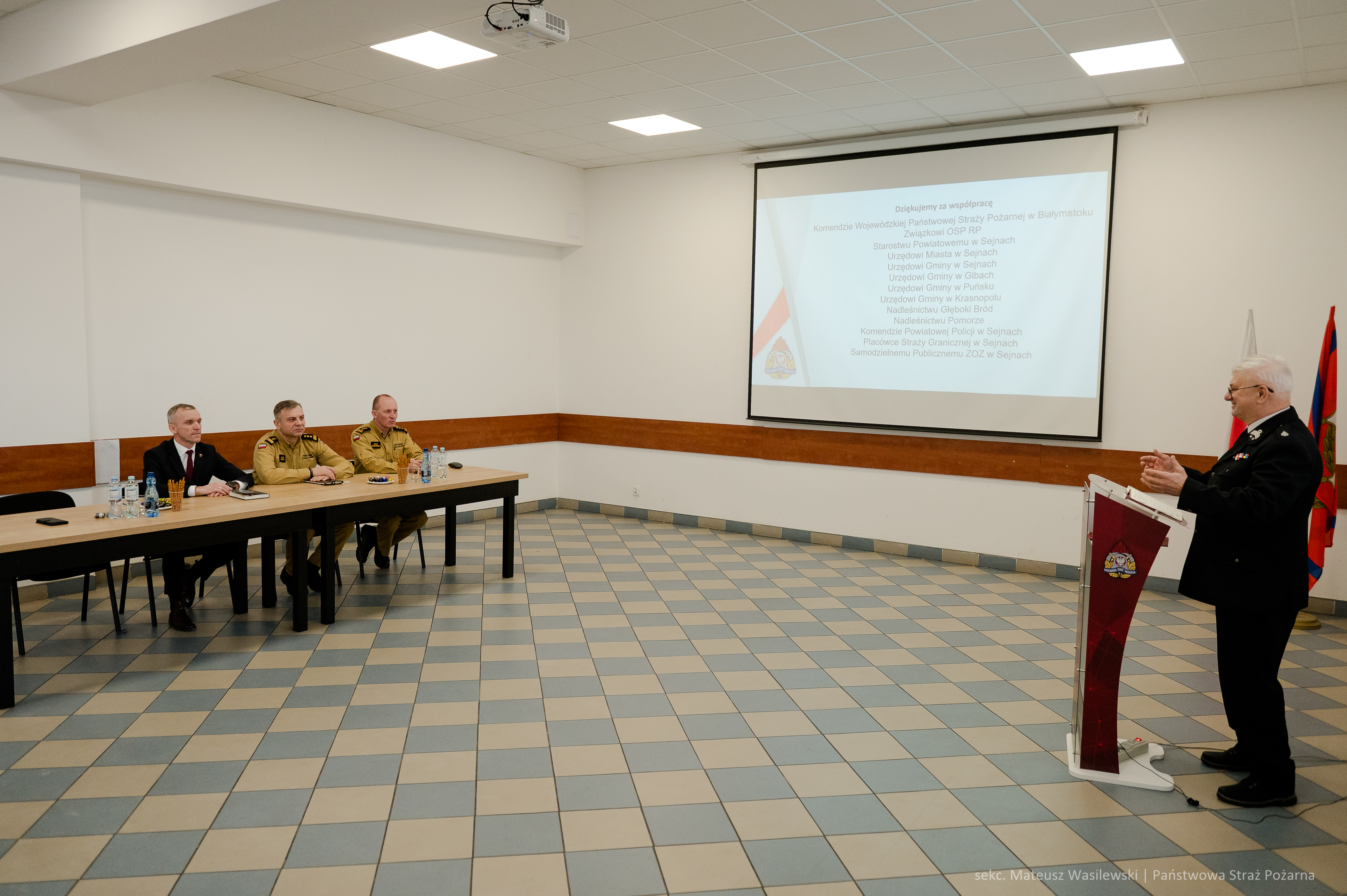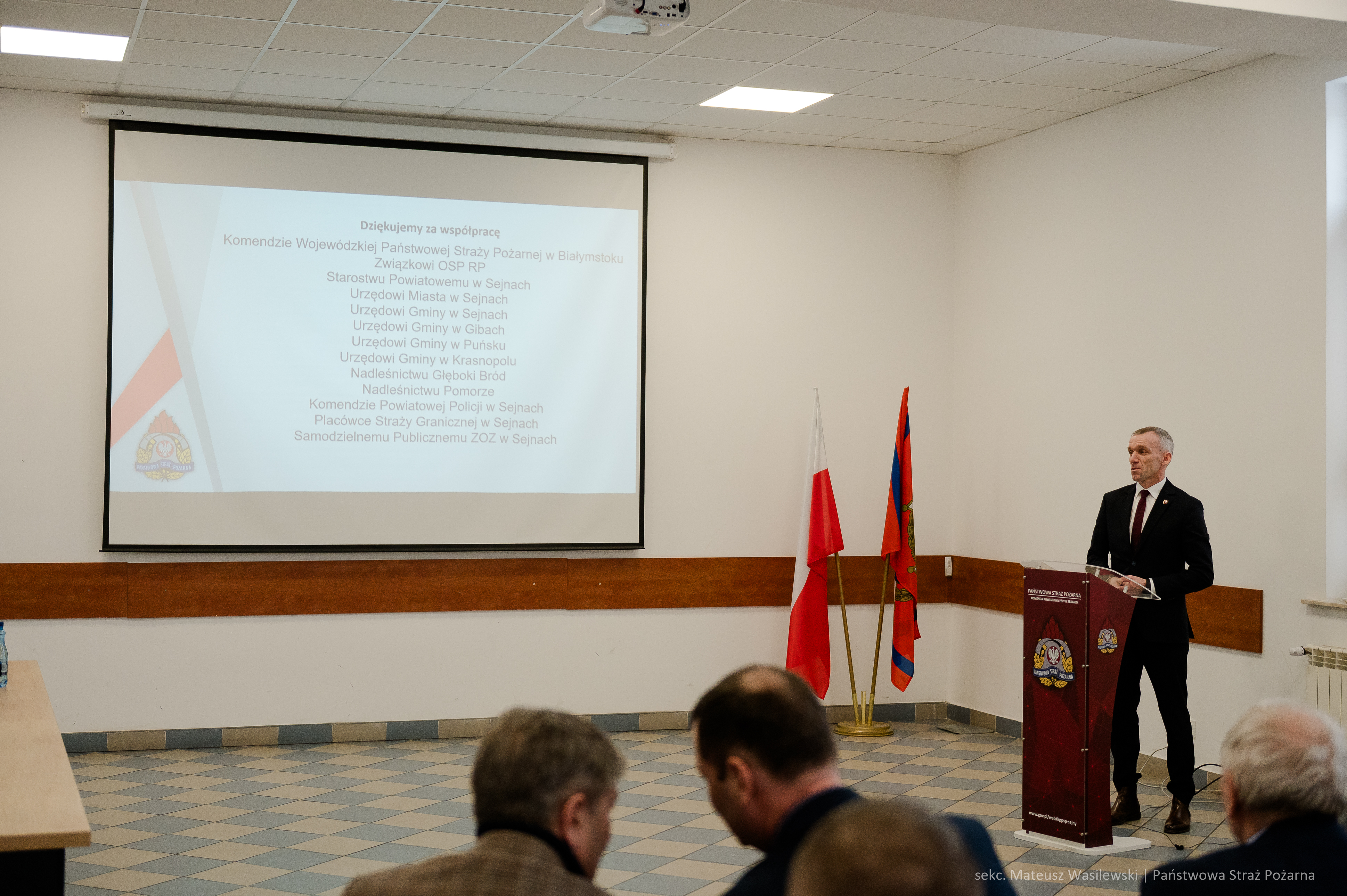 W dalszej części narady przemawiali zaproszeni goście dziękując strażakom z Komendy Powiatowej Państwowej Straży Pożarnej w Sejnach za działanie na rzecz ochrony przeciwpożarowej.