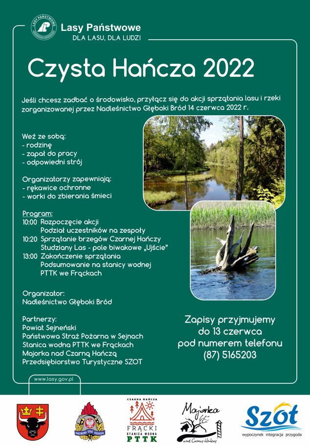 14 czerwca odbyła się już 10 edycja akcji pt. "Czysta Hańcza" organizowana przez Nadleśnictwo Głęboki Bród, podczas której czynnie uczestniczyła KP PSP w Sejnach. Trasa tegorocznej edycji biegła od mostu w miejscowości Sarnetki do Stanicy Wodnej we Frąckach. Uczestnicy przeczesywali odcinek Czarnej Hańczy zarówno linią brzegową, jak i samą rzeką, pieszo lub przy pomocy kajaków. W "Czystej Hańczy 2022" brało udział łącznie ponad 35 osób oraz zebrano wiele śmieci - głównie pozostałości kajakarzy z lat ubiegłych. Na zakończenie wszystkich uczestników akcji czekała zbiórka podsumuwująca, a także ciepły posiłek i ognisko zapenione przez organizatora Nadleśnictwo Głęboki Bród.