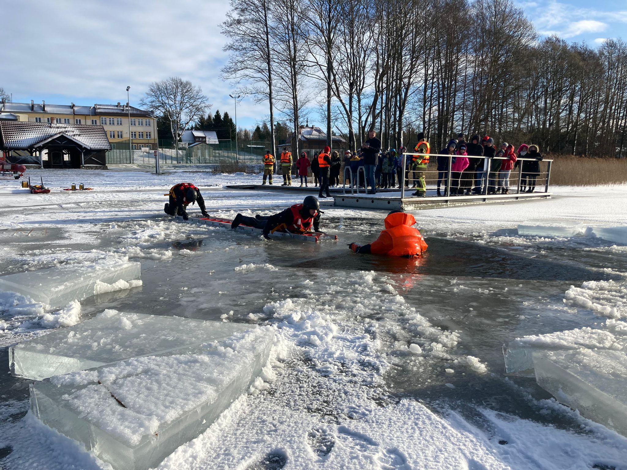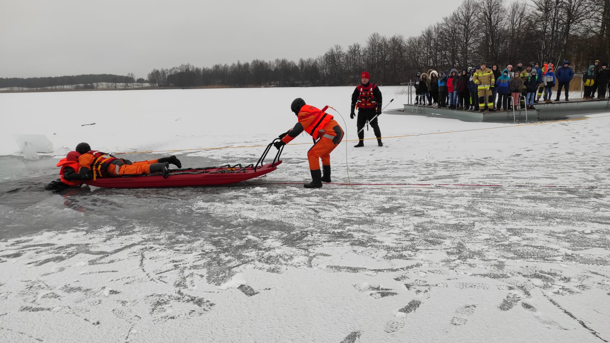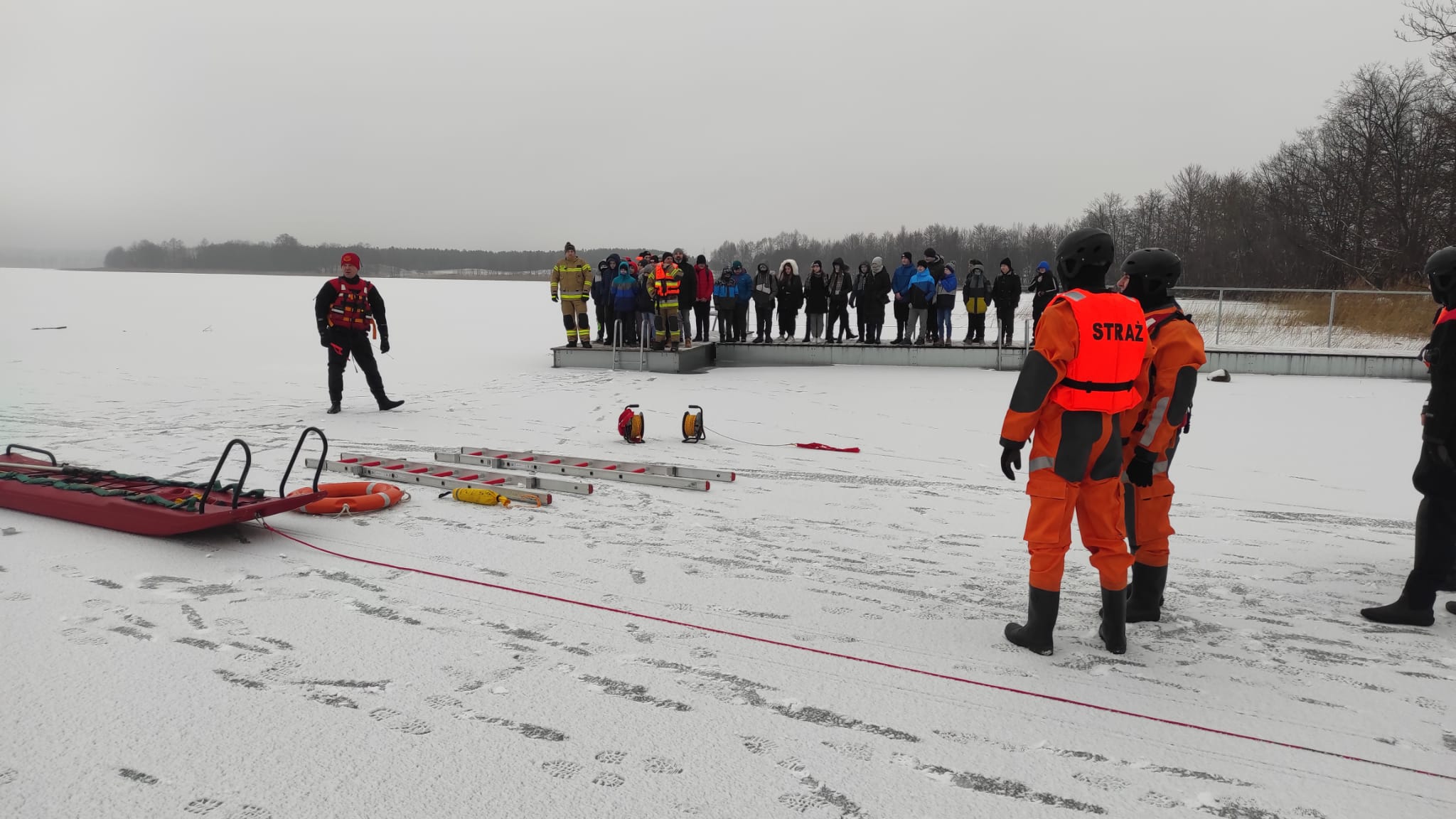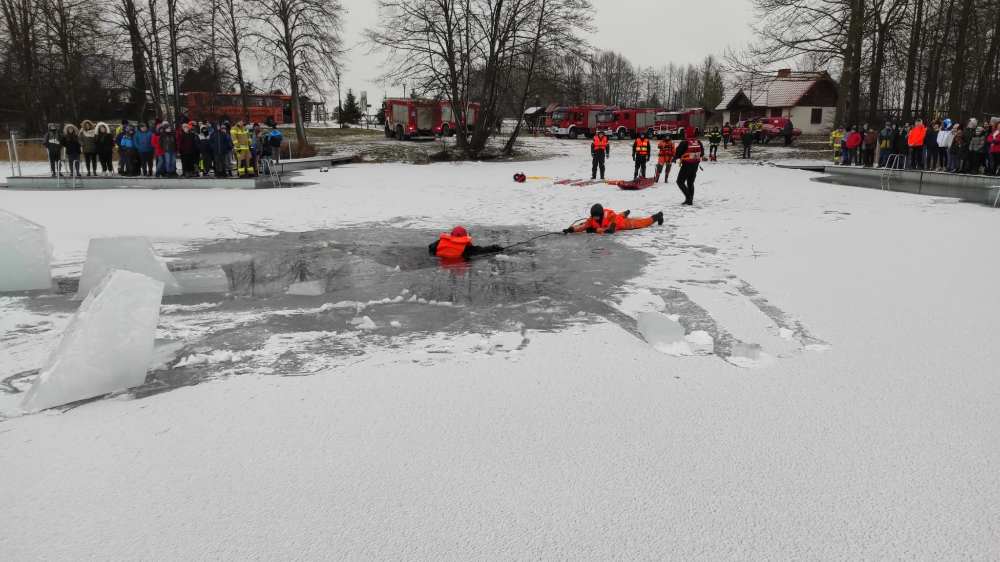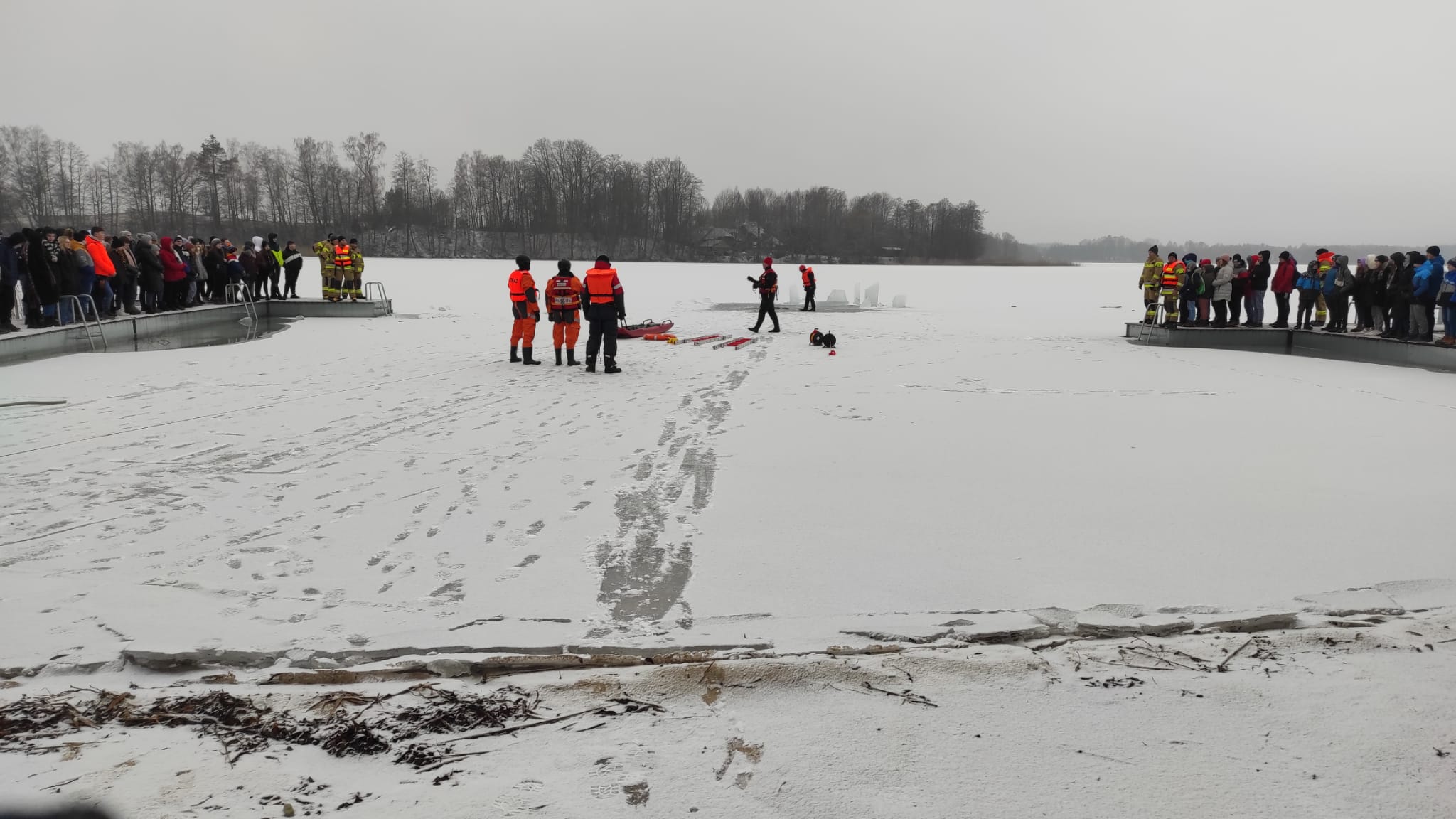 z zakresu ratownictwa lodowego (18-21.01). Inscenizacje akcji ratowniczej zostały skierowane głównie do uczniów szkół powiatu sejneńskiego w ramach akcji "Bezpieczne Ferie". Pokazy miały na celu przypomnienie młodzieży o zagrożeniu związanych z przebywaniem na zamarzniętych akwenach wodnych oraz przekazaniu podstawowych zasad postępowania w razie pojawienia się niebezpieczeństwa. Ćwiczenia rozpoczęto we wtorek na plaży miejskiej w Sejnach. Następnie w środę kontynuowano na plaży gminnej w Krasnopolu, a w czwartek na plaży gminnej w Gibach. W piątek odbyło się ostatnie spotkanie, na plaży gminnej w Puńsku. W serii spotkań uczestnikami była również m. in. kadra kierownicza KP PSP w Sejnach, pracownicy samorządowi powiatu sejneńskiego, pracownicy szkół z powiatu sejneńskiego, podopieczni i wychowawcy Warsztatów Terapii Zajęciowej