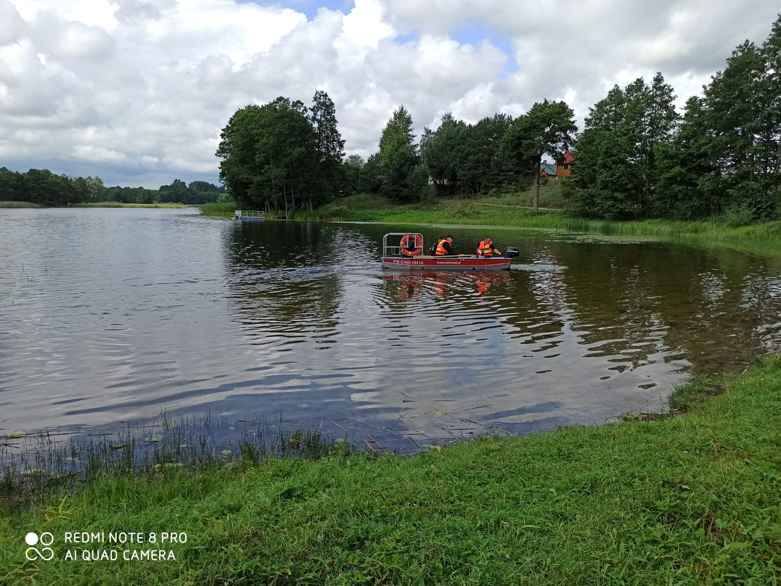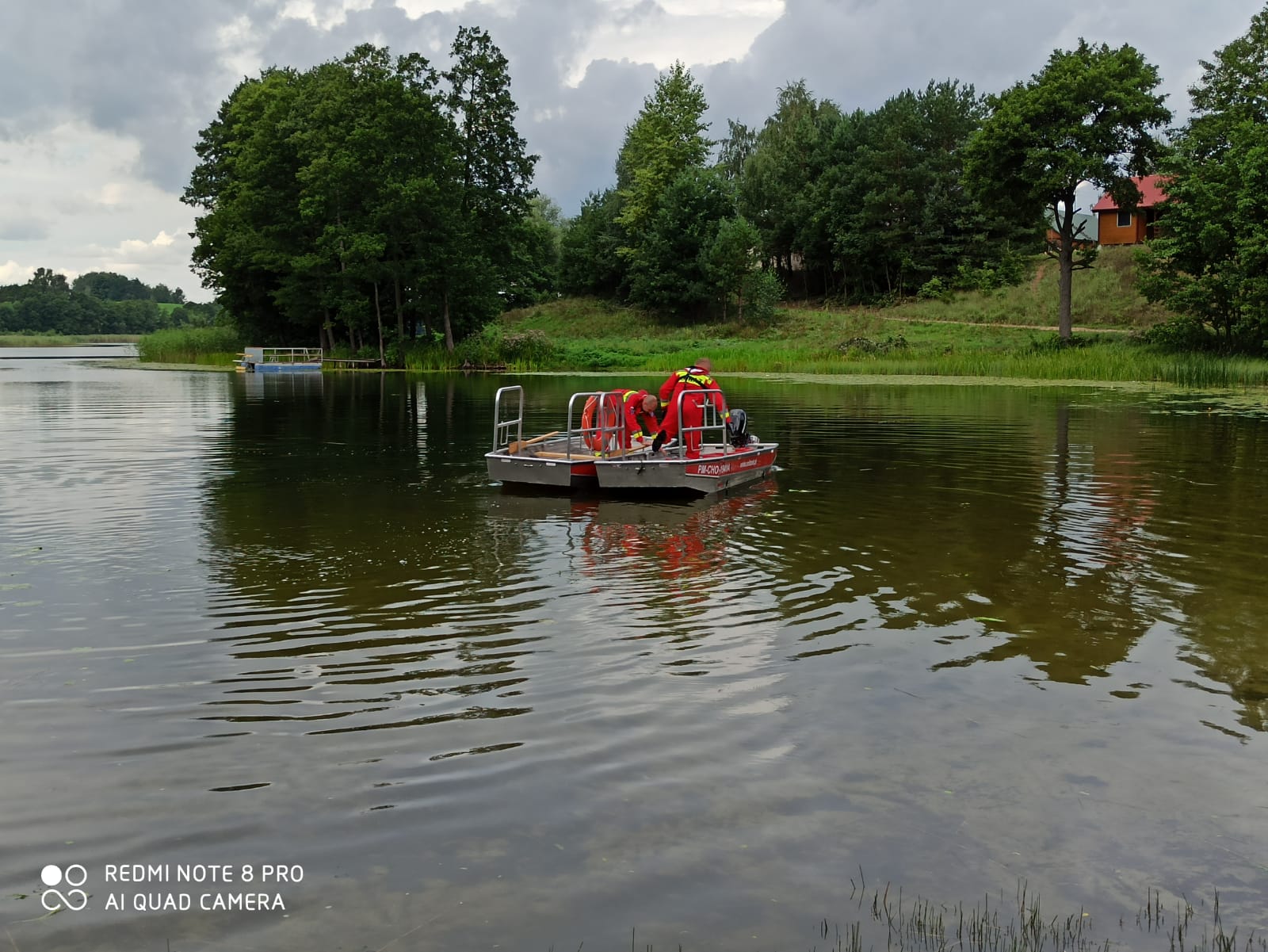 Pokaz łodzi ratowniczej na jeziorze Boksze