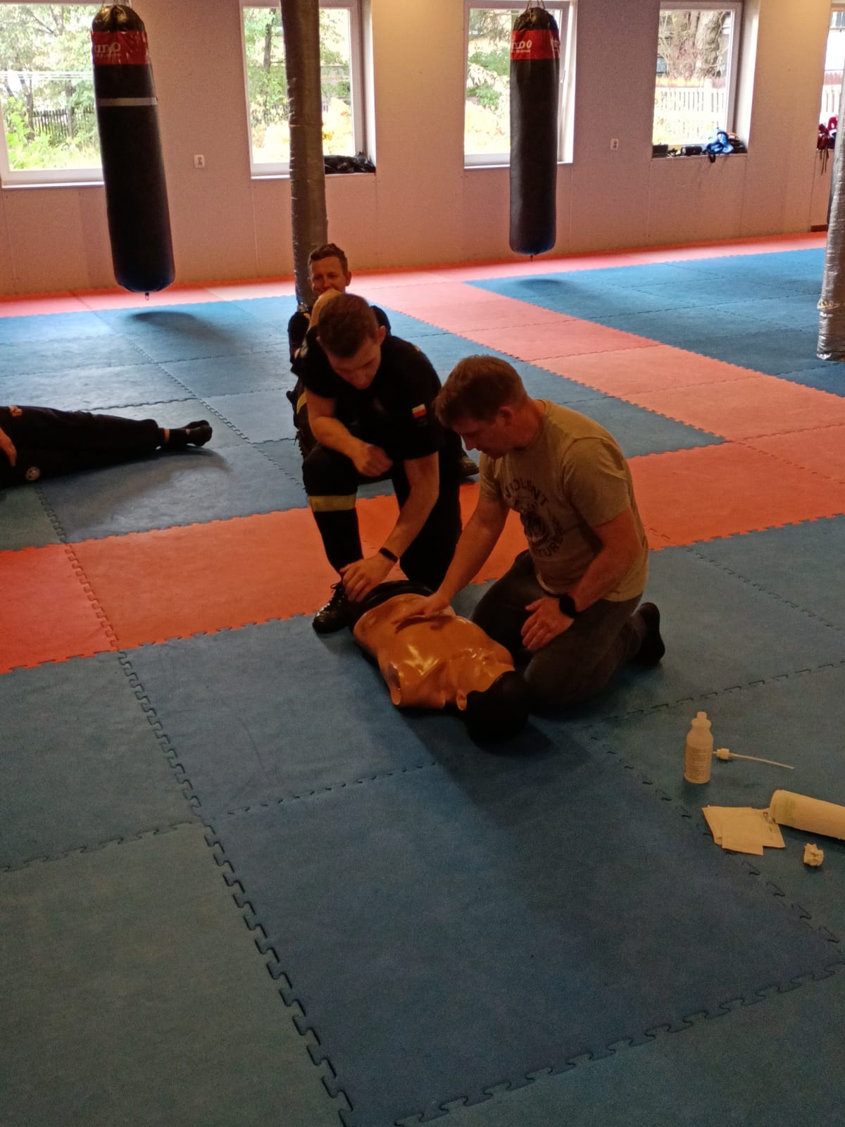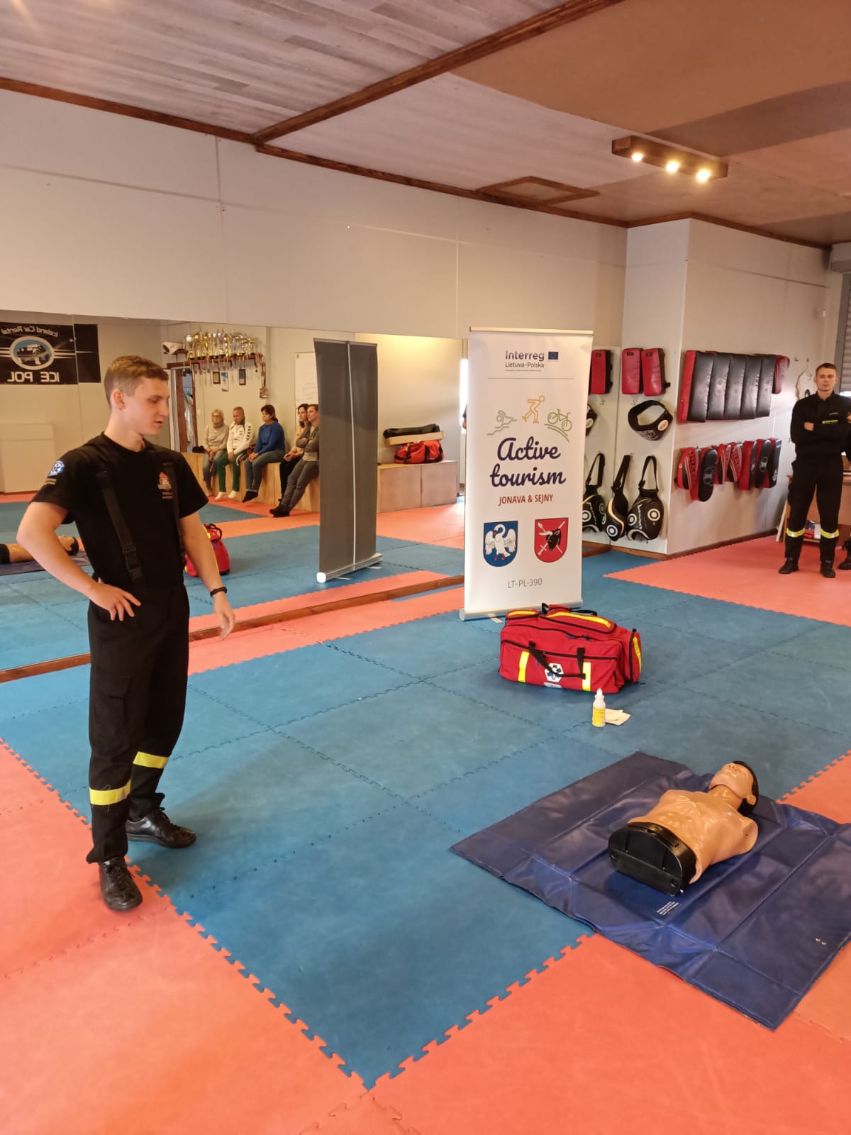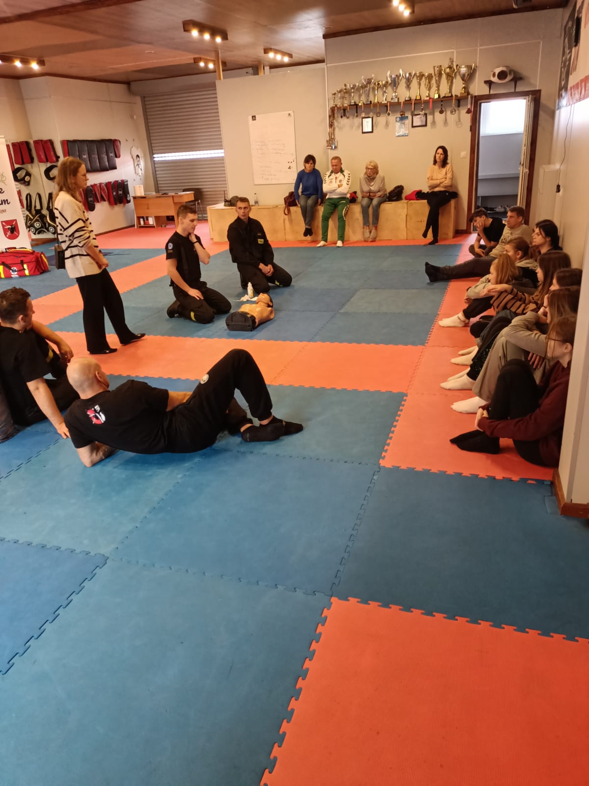 05.10.2022r. ratownicy z JRG Sejny przeprowadzili pokaz sprzętu ratowniczo-gaśniczego oraz przekazali podstawową wiedzę dotyczącą udzielania pierwszej pomocy medycznej dla młodzieży z Litwy. Szkolenie dla uczestników z Litwy odbyło się w ramach programu prowadzonego przez klub Kickboxing Team Sejny.