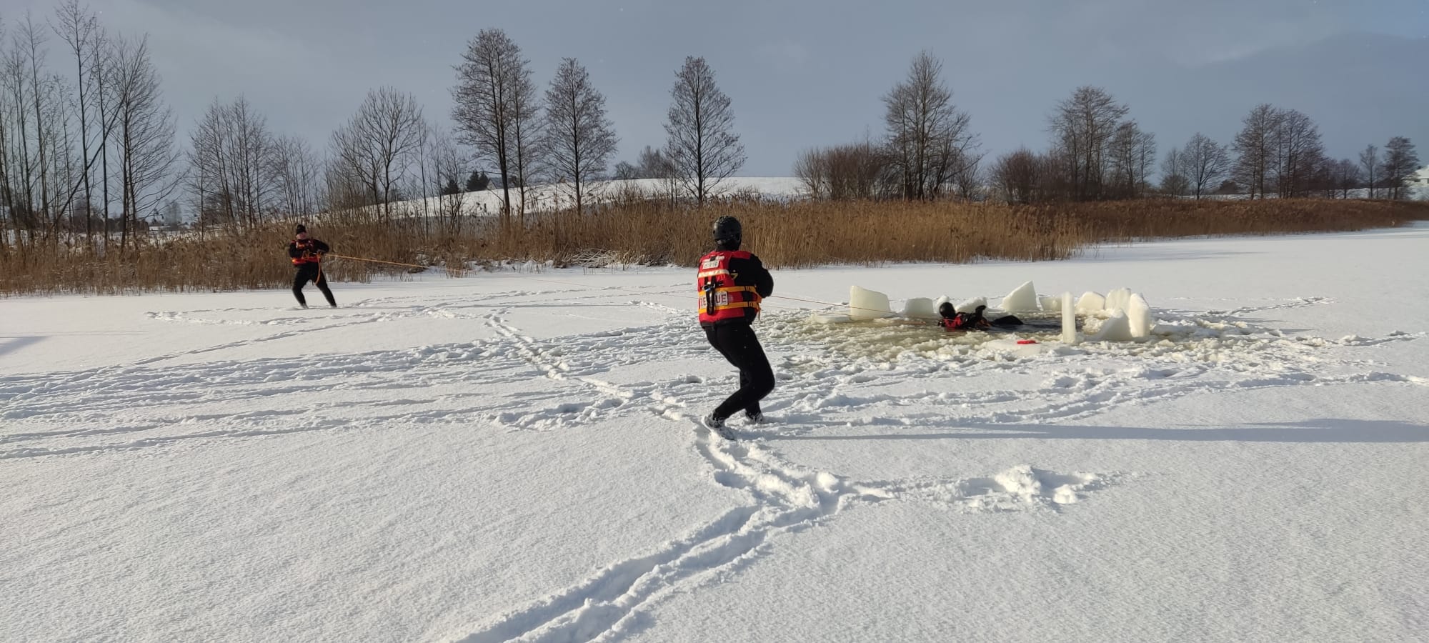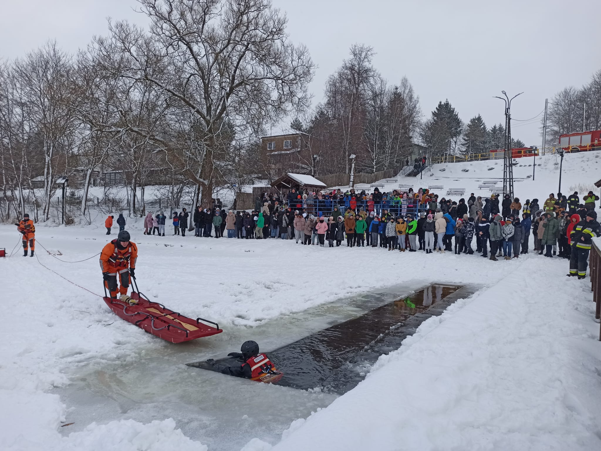 Funkcjonariusze z Komendy Powiatowej Państwowej Straży Pożarnej w Sejnach oraz druhowie OSP powiatu sejneńskiego w okresie 15 -17 stycznia b.r. przeprowadzili cykl ćwiczeń połączonych z pokazem ratownictwa lodowego i ratownictwa medycznego. Uczniowie szkół oraz druhowie OSP mieli okazje przypomnieć sobie o zagrożeniach związanych z przebywaniem na zamarzniętych akwenach wodnych. Strażacy przekazali podstawowe zasady postępowania podczas wystąpienia niebezpiecznych sytuacji na zamarzniętych zbiornikach wodnych.