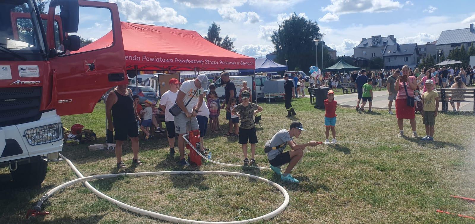 Pokaz sprzętu przeciwpożarowego podczas obchodu dni Sejn