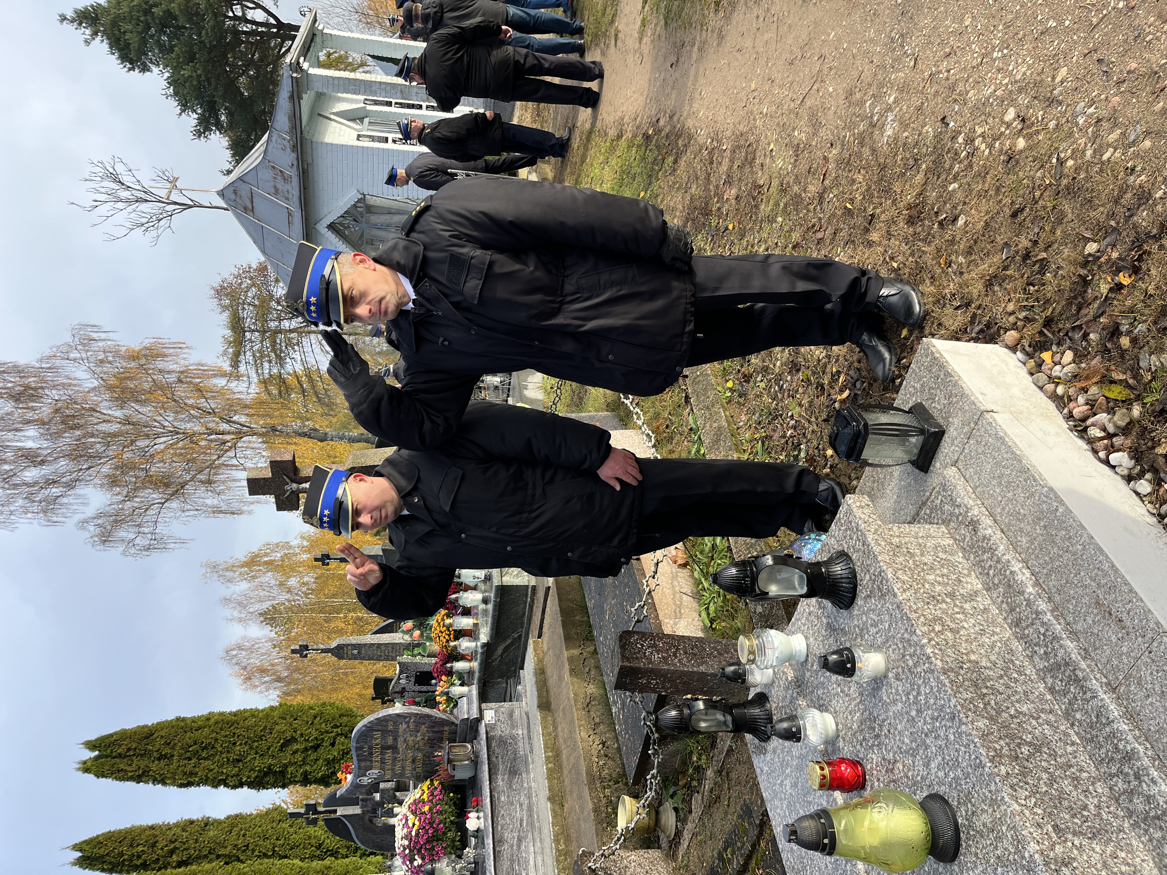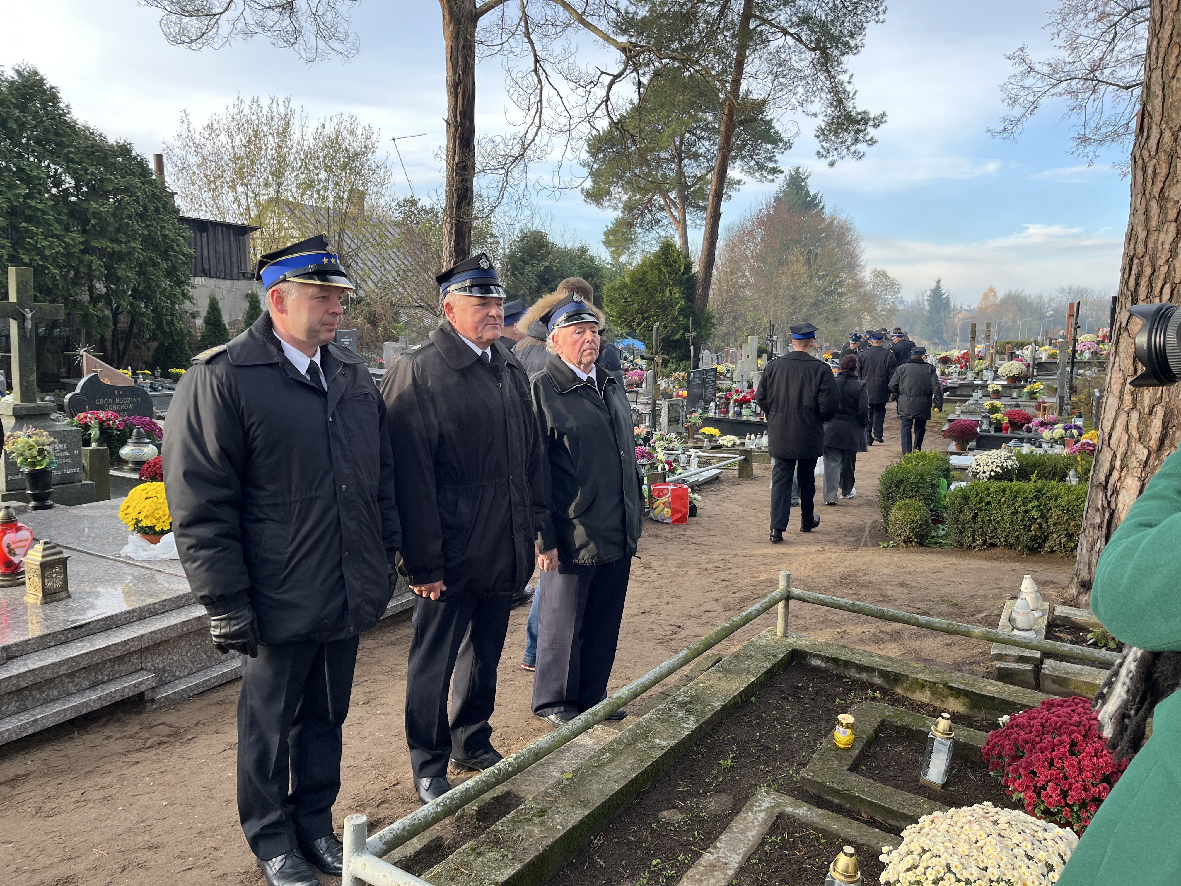 Pracownicy, emeryci KP PSP w Sejnach oraz druhowie OSP w dniu Wszystkich Świętych