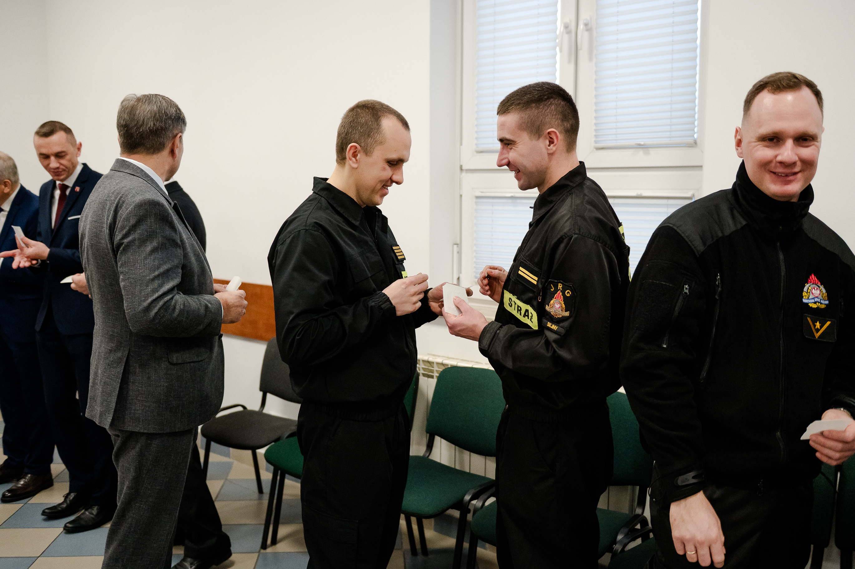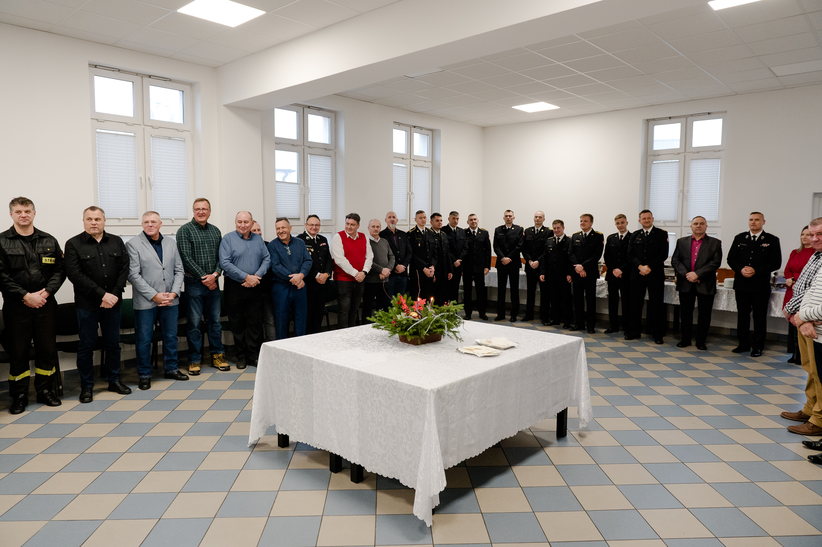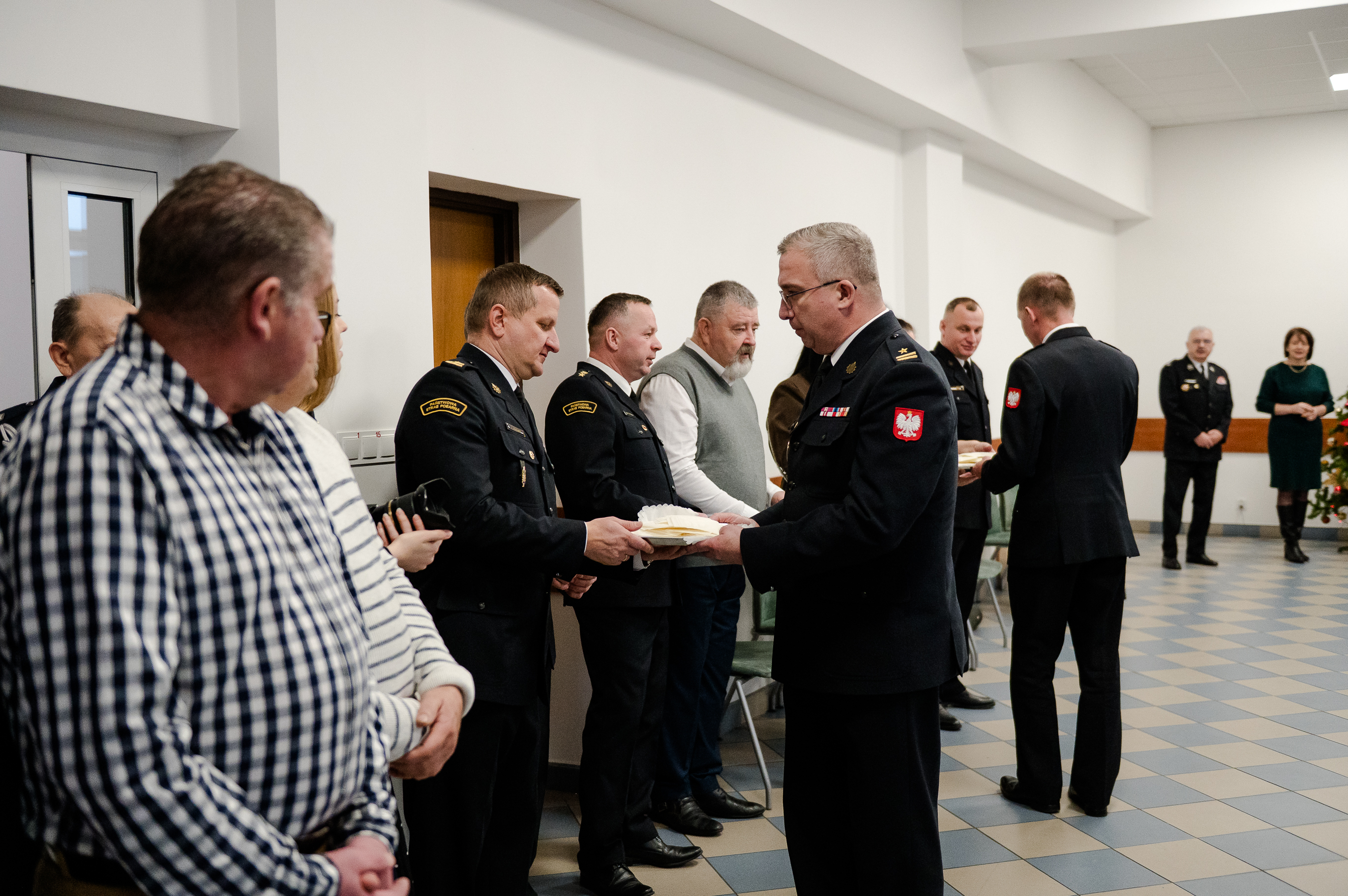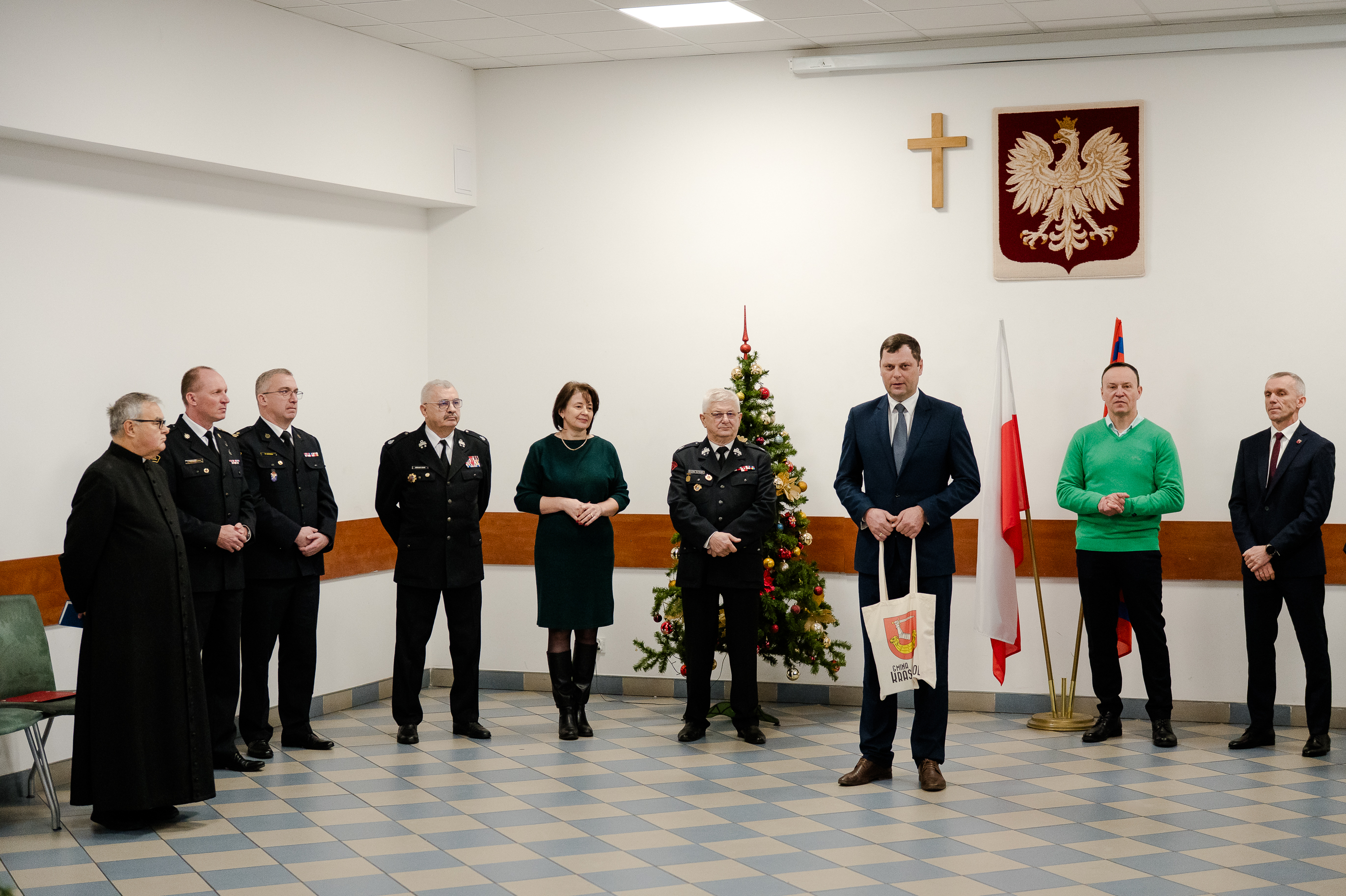 Nie zabrakło tradycyjnego dzielenia się opłatkiem oraz chwili refleksji nad istotą Świąt Bożego Narodzenia. Spotkanie wigilijne było również okazją do podziękowań za zaangażowanie, profesjonalizm oraz trud włożony w codzienną służbę na rzecz ochrony życia, zdrowia i mienia.