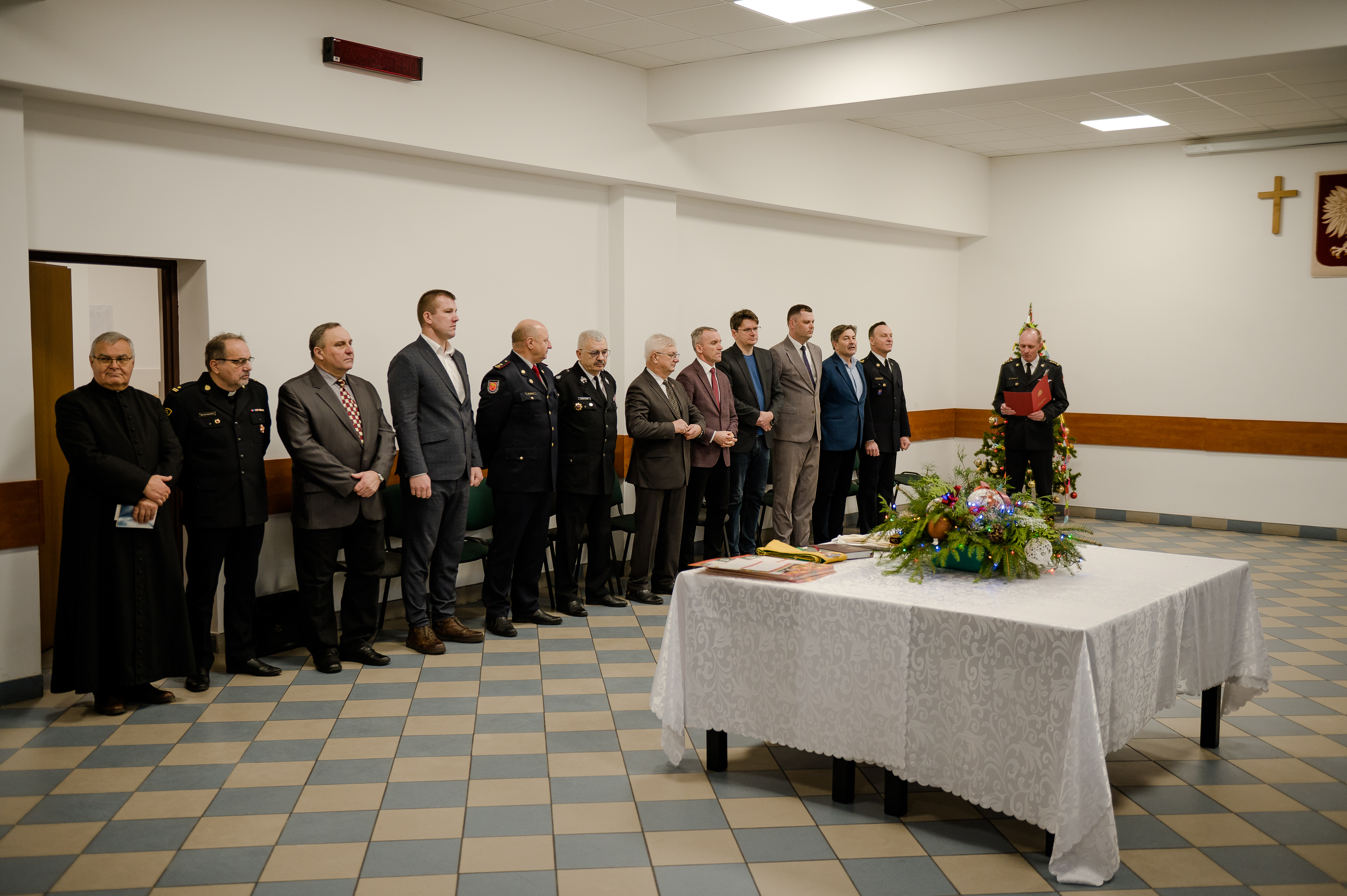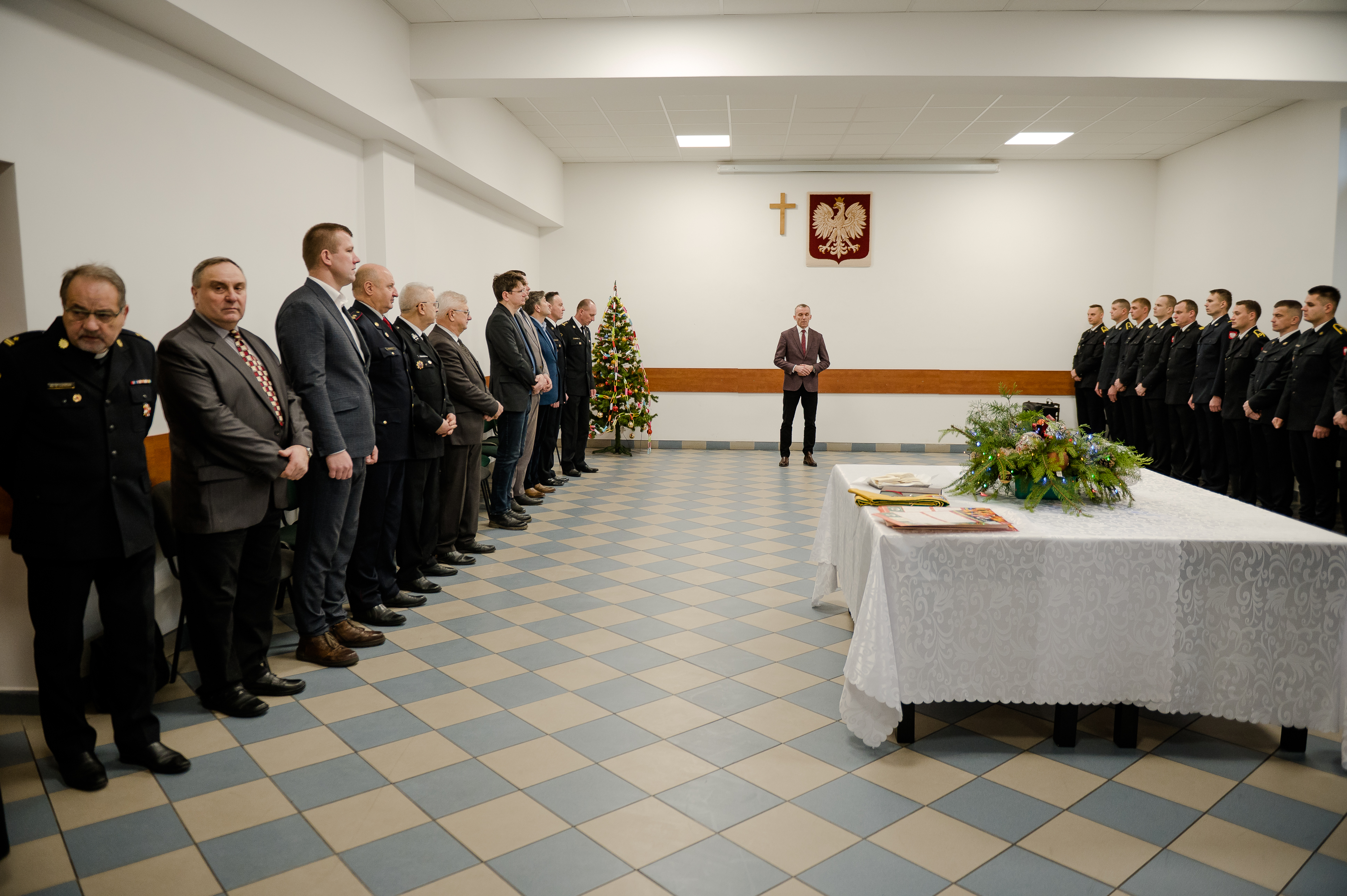 Funkcjonariusze i pracownicy cywilni KP PSP w Sejnach, emeryci, ochotnicy i samorządowcy uczestniczyli 21 grudnia 2023 roku we wspólnym wigilijnych spotkaniu opłatkowym z okazji nadchodzących Świąt Bożego Narodzenia oraz Nowego Roku.