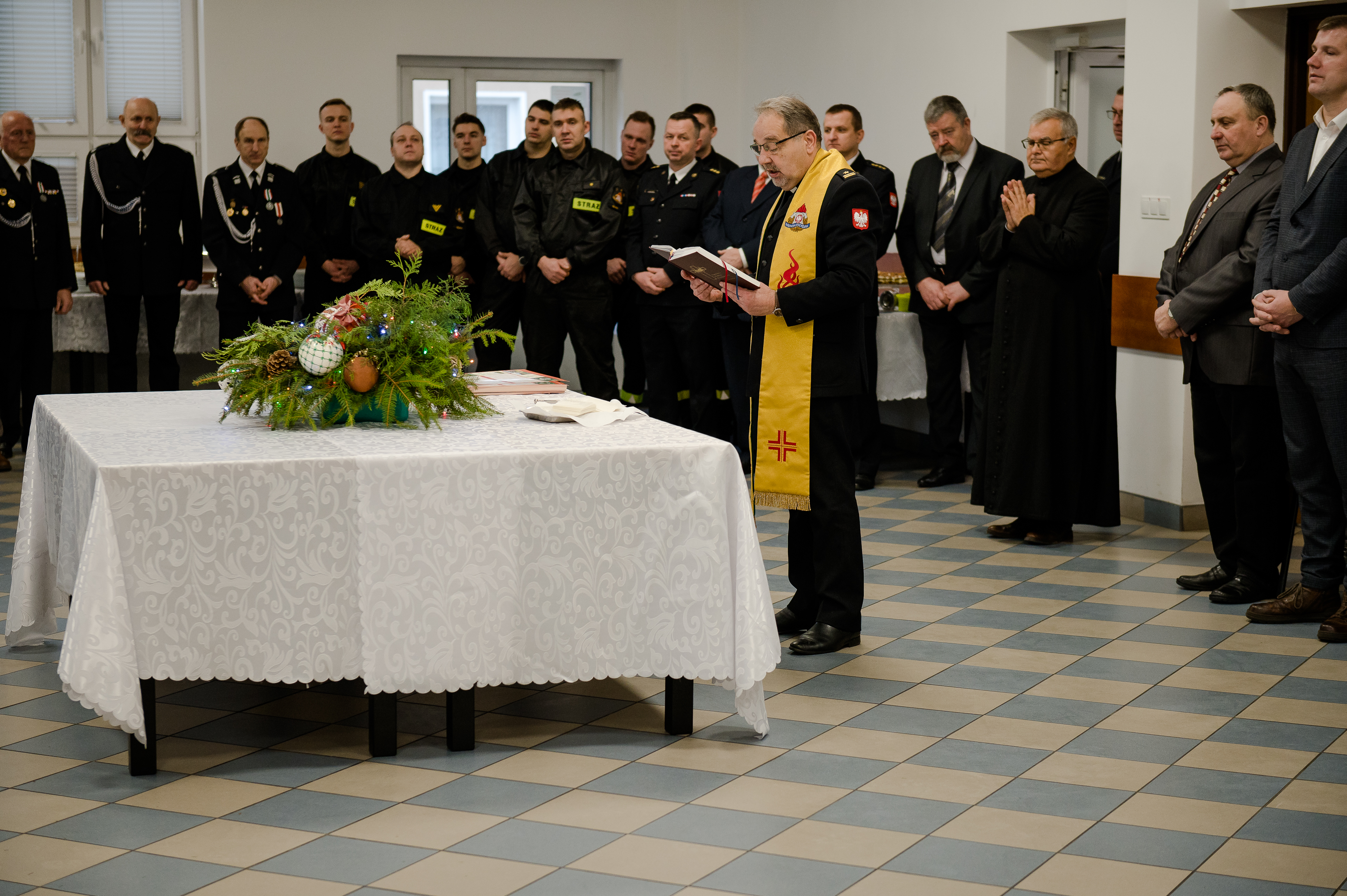 Komendant Powiatowy PSP w Sejnach st. bryg. Artur Przeborowski złożył życzenia świateczne wszystkim uczestnikom spotkania. Do życzeń dołączyli również zebrani goście. Po błogosławieństwie odśpiewano wspólnie kolęde, a następnie wszyscy zebrani przełamali się opłatkiem i złożyli sobie serdeczne życzenia.