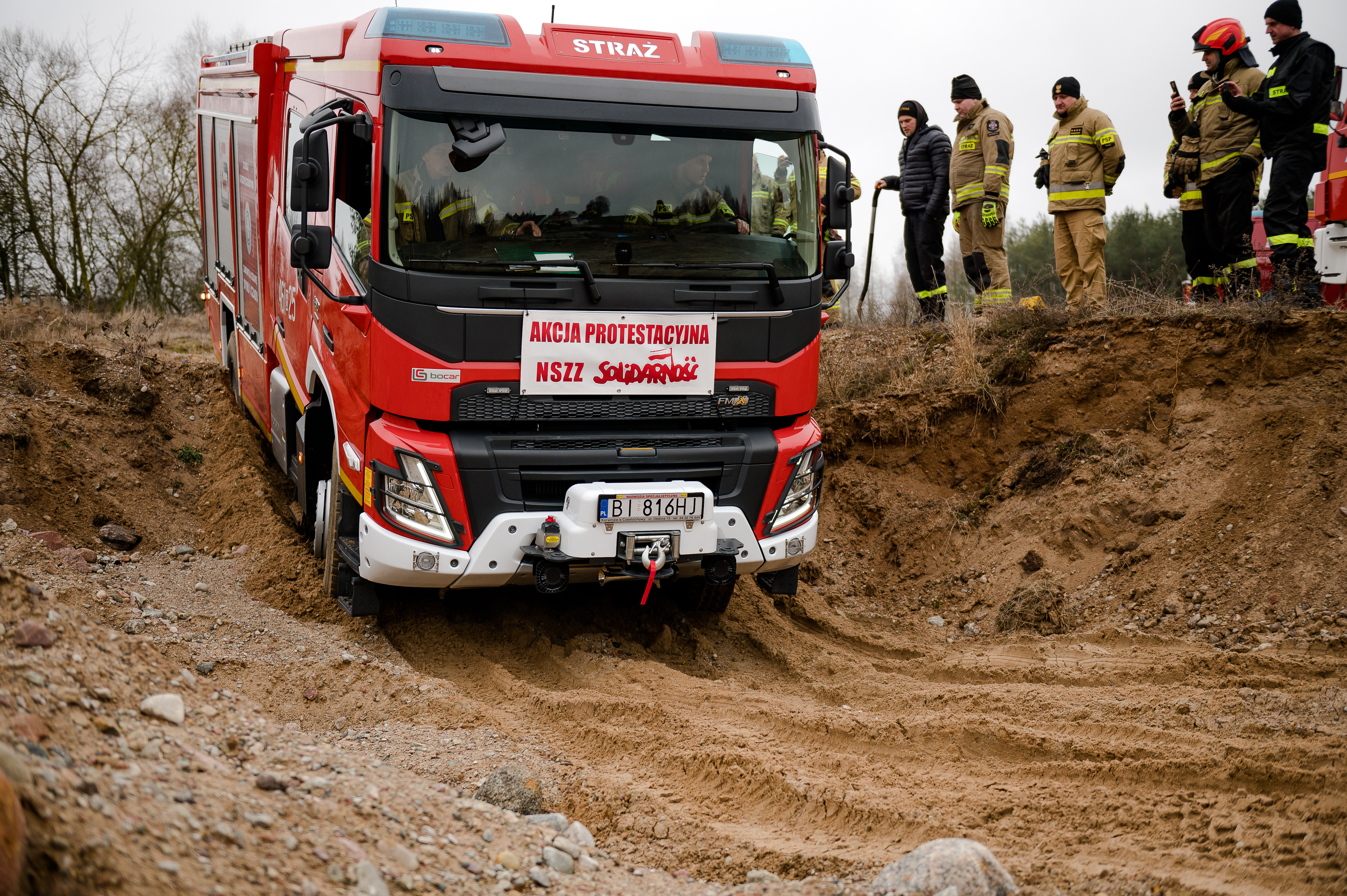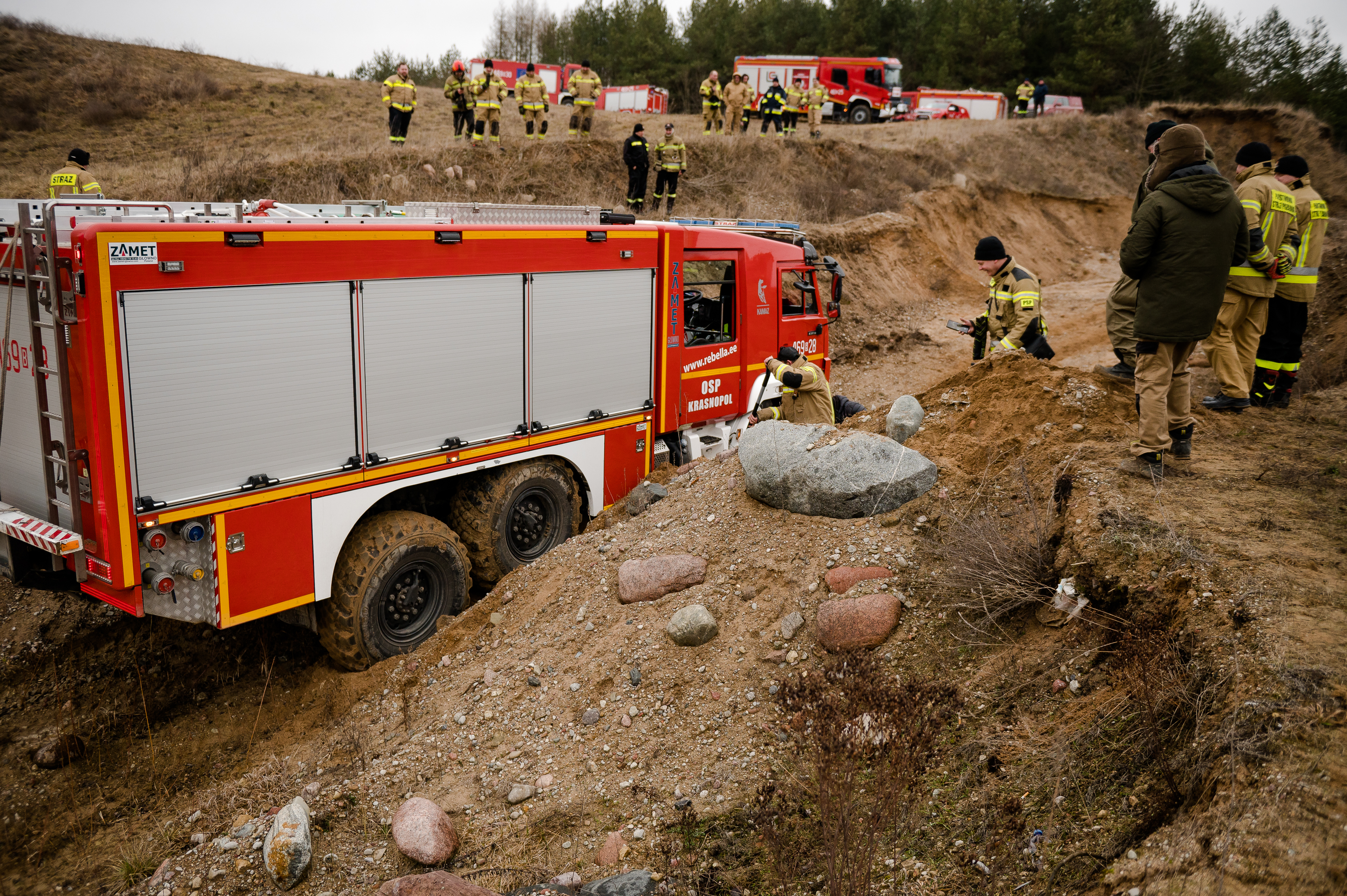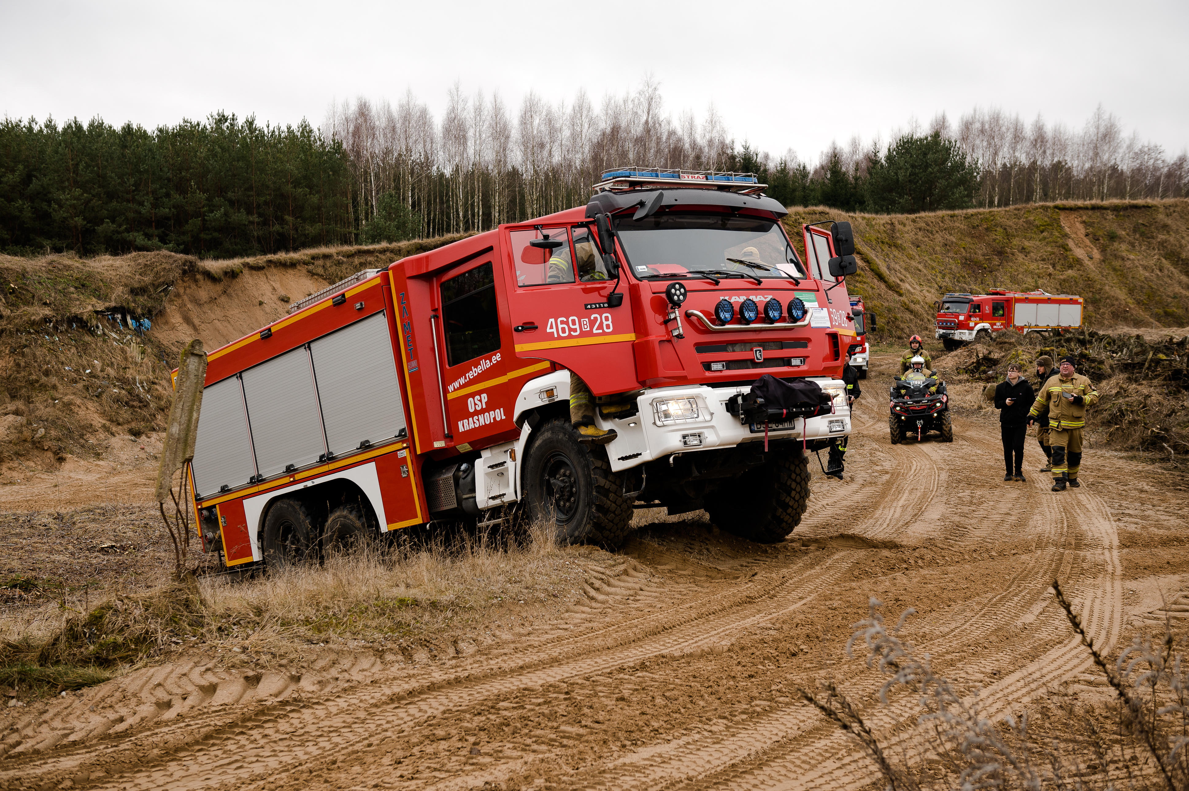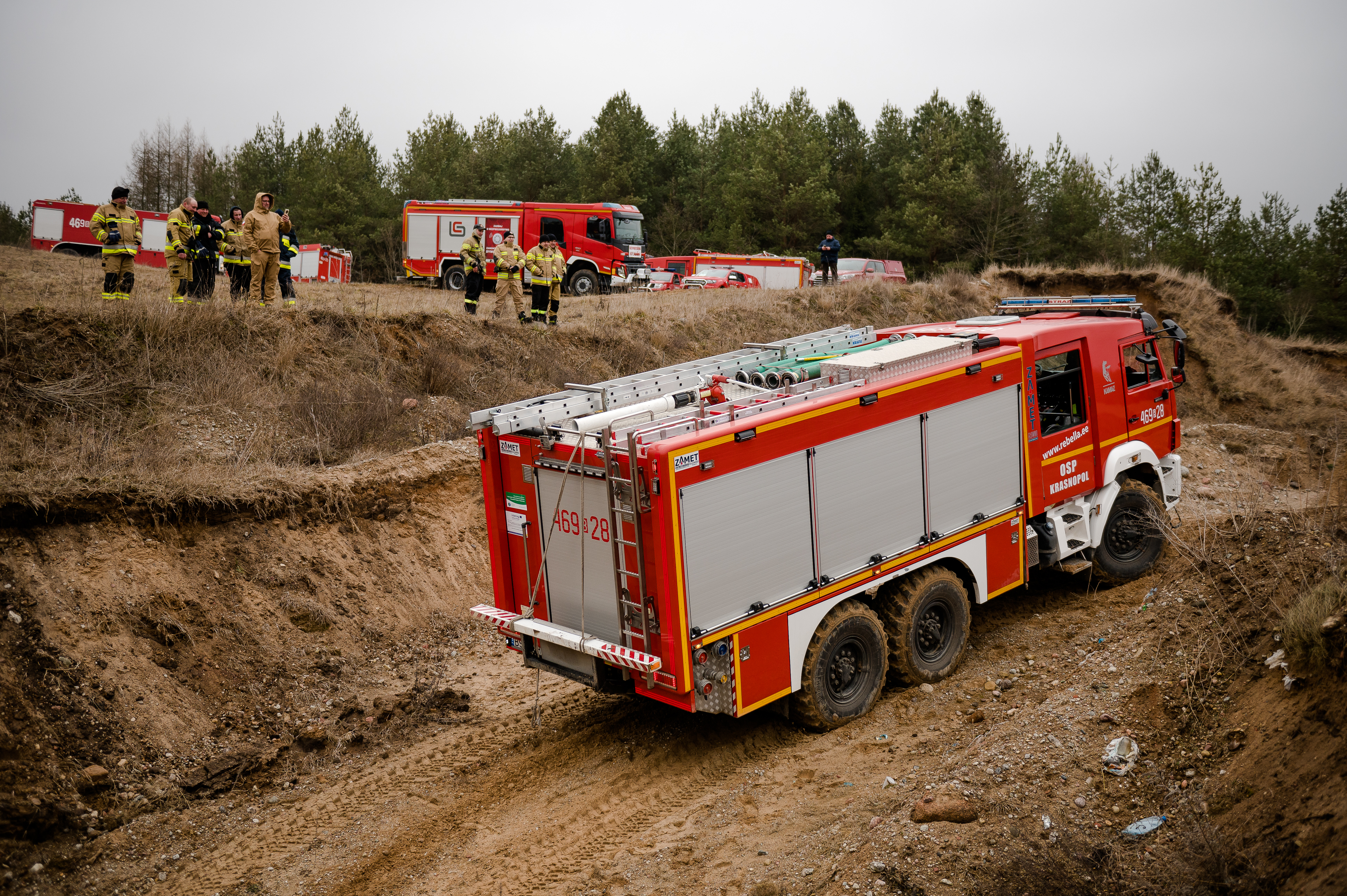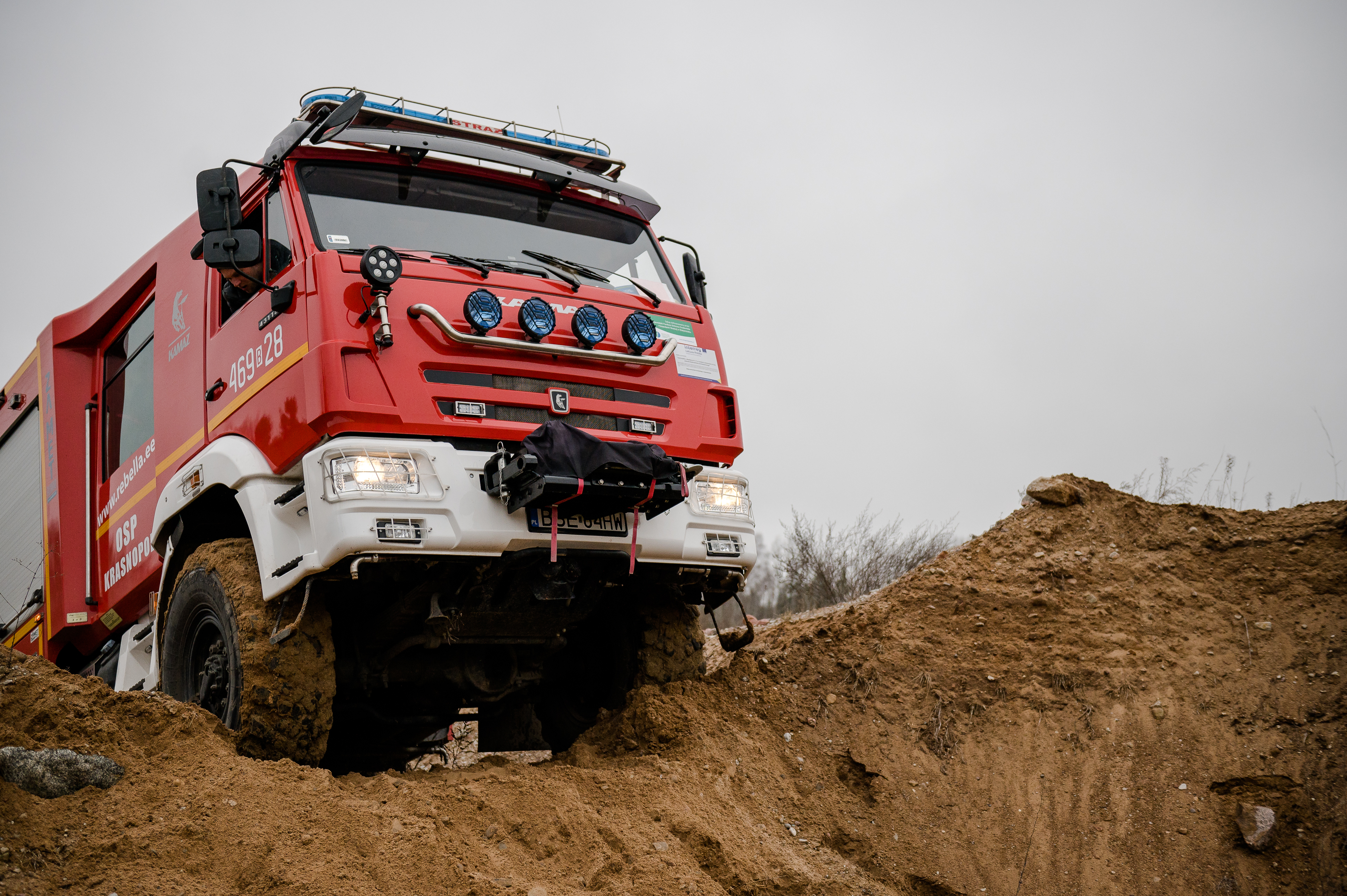 Szkolenie kierowców straży pożarnej powiatu sejneńskiego z jazdy w trudnym terenie
